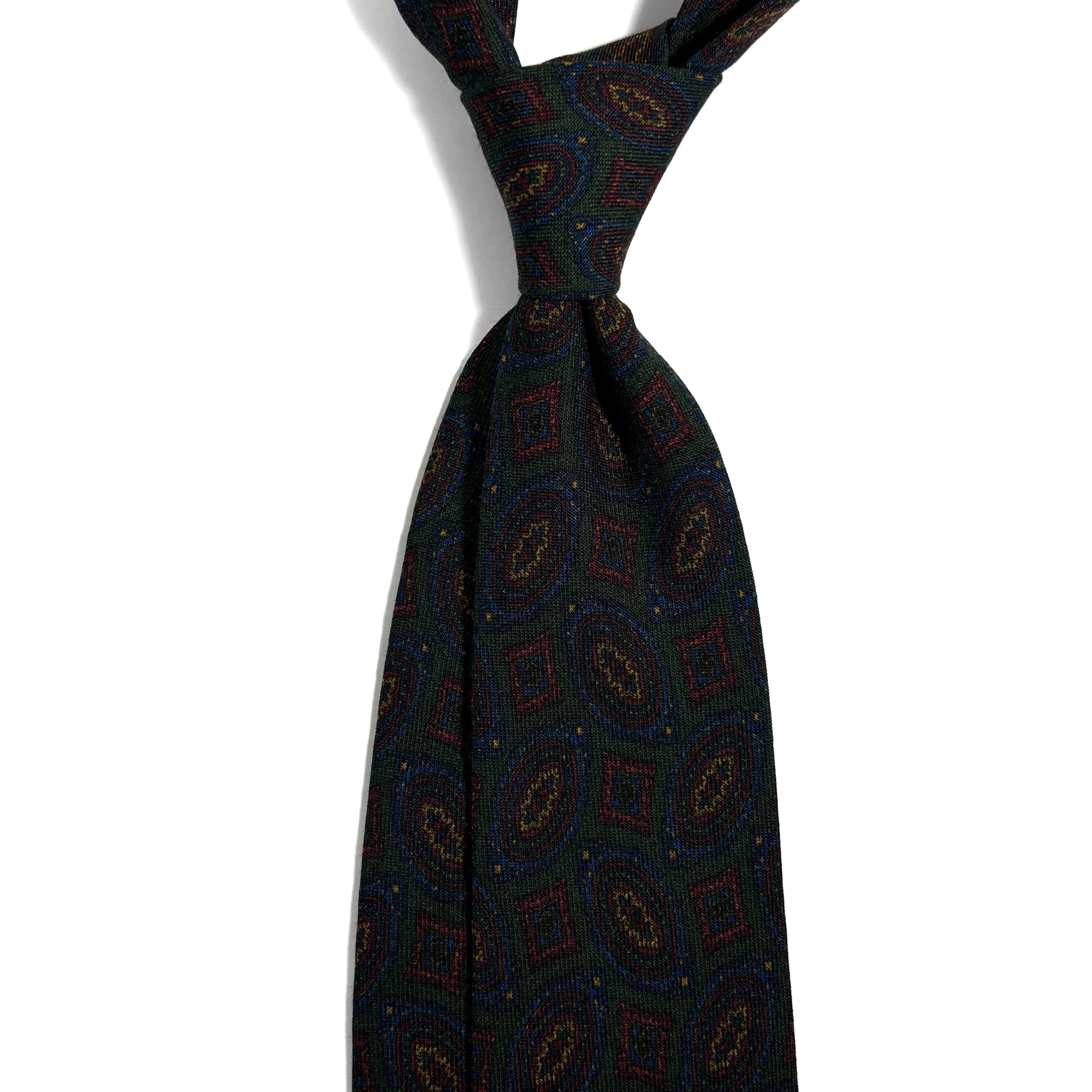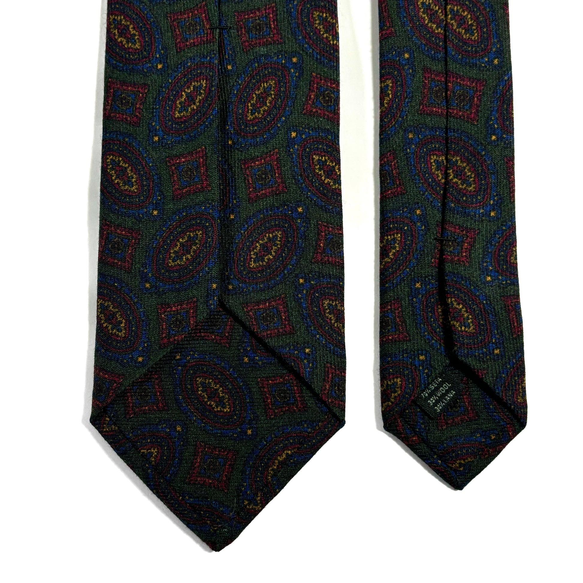 This tie is crafted from a luxurious 70% Wool / 30% Silk cloth woven in Como, Italy, a region celebrated for producing some of the world’s finest printed textiles. The blend offers a naturally soft hand, a muted color palette, and richly detailed patterns that are ideal for the colder months.