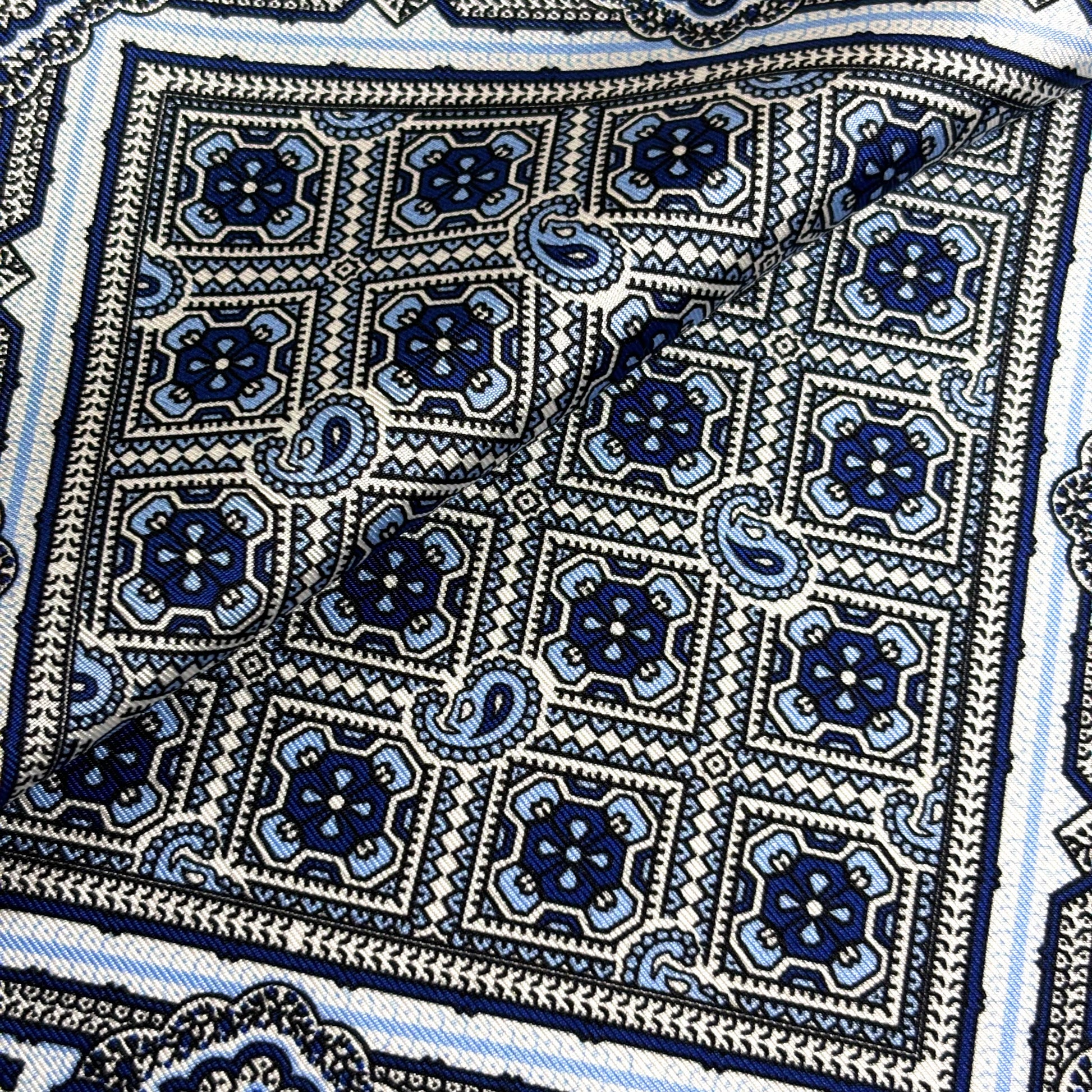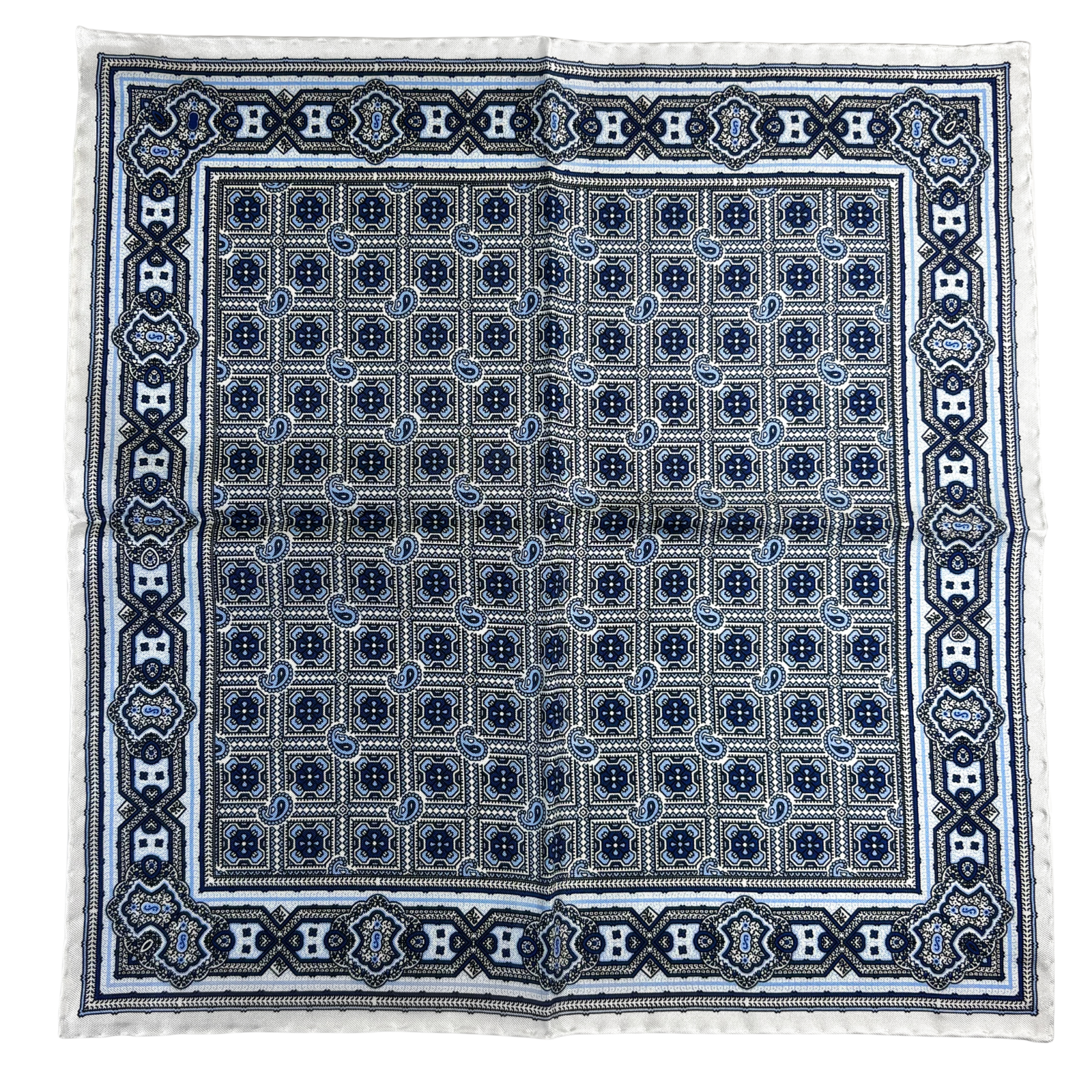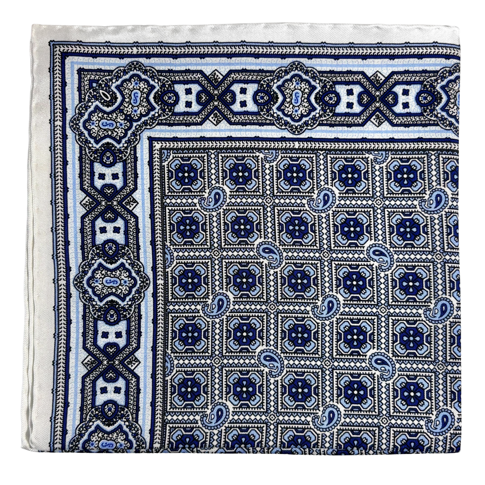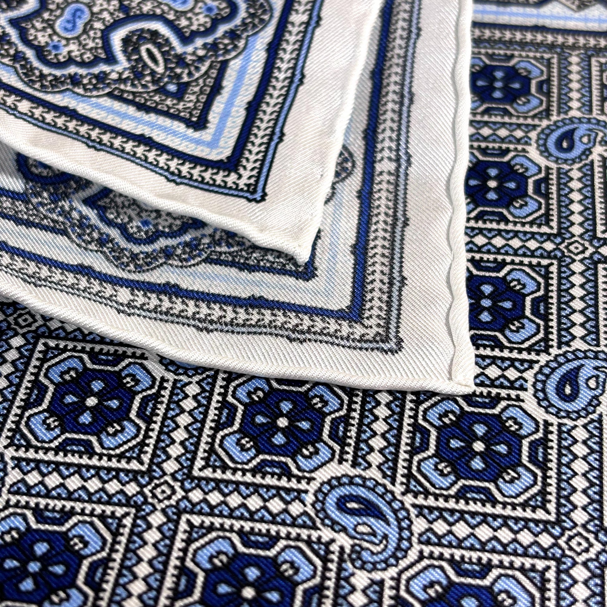 Crafted from 100% silk twill and handmade in England, this pocket square reflects the enduring legacy of British textile excellence. Produced in the historic town of Macclesfield—renowned for centuries of silk craftsmanship—each piece is hand-sewn with hand-rolled edges, offering refined structure and depth in every fold. Silk twill remains the gold standard for pocket squares, prized for its lightweight feel, rich dye absorption, and elegant sheen. The fabric is printed using a modern, eco-conscious method that delivers vibrant, double-sided color while minimizing waste. Measuring 16 inches across, this square is carefully sized to stay in place throughout the day, no matter how it's folded. An understated staple of timeless menswear, made with precision and purpose. |