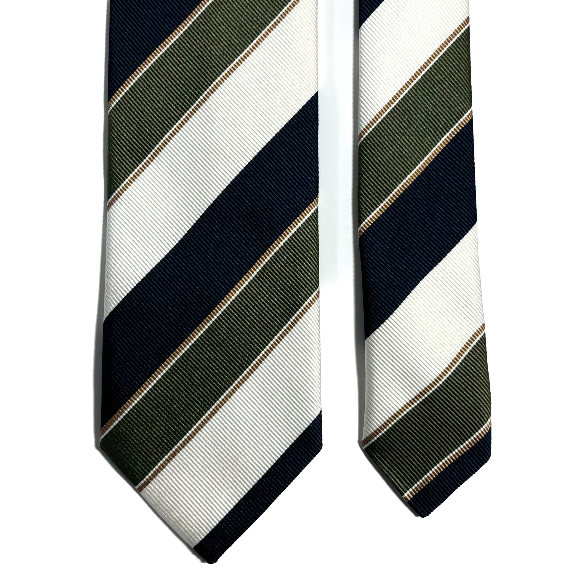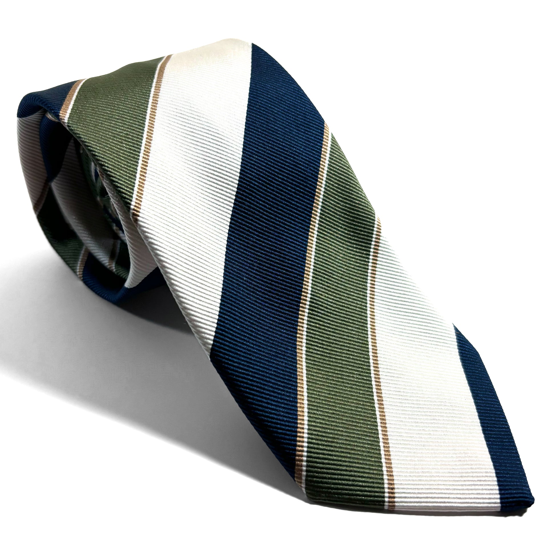Discover the perfect blend of depth, texture, and timeless style with our Striped Silk Jacquard Tie. Handmade in Italy using the finest woven silk, this tie showcases a meticulously crafted jacquard weave that adds a rich, tactile dimension to its bold yet refined stripe pattern.