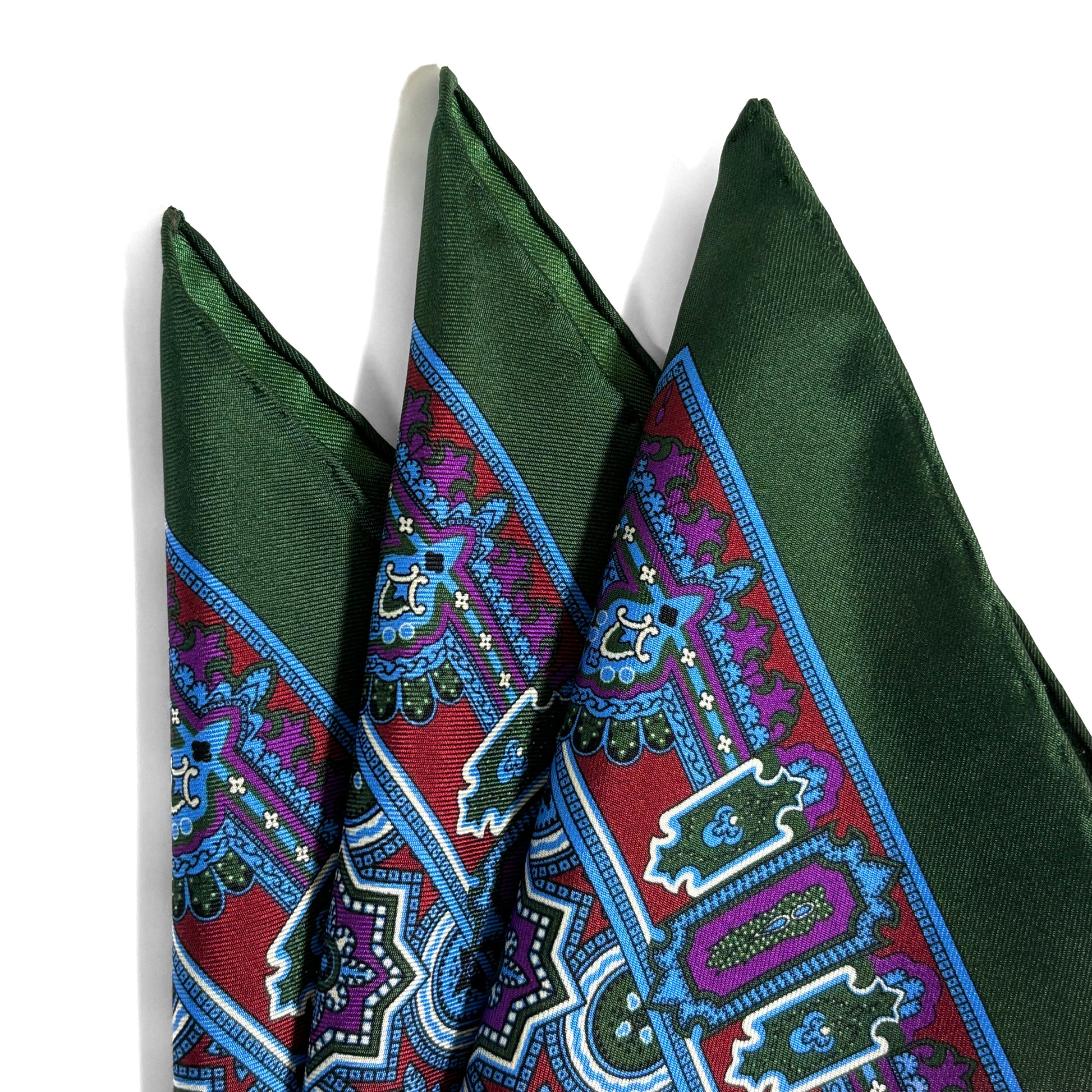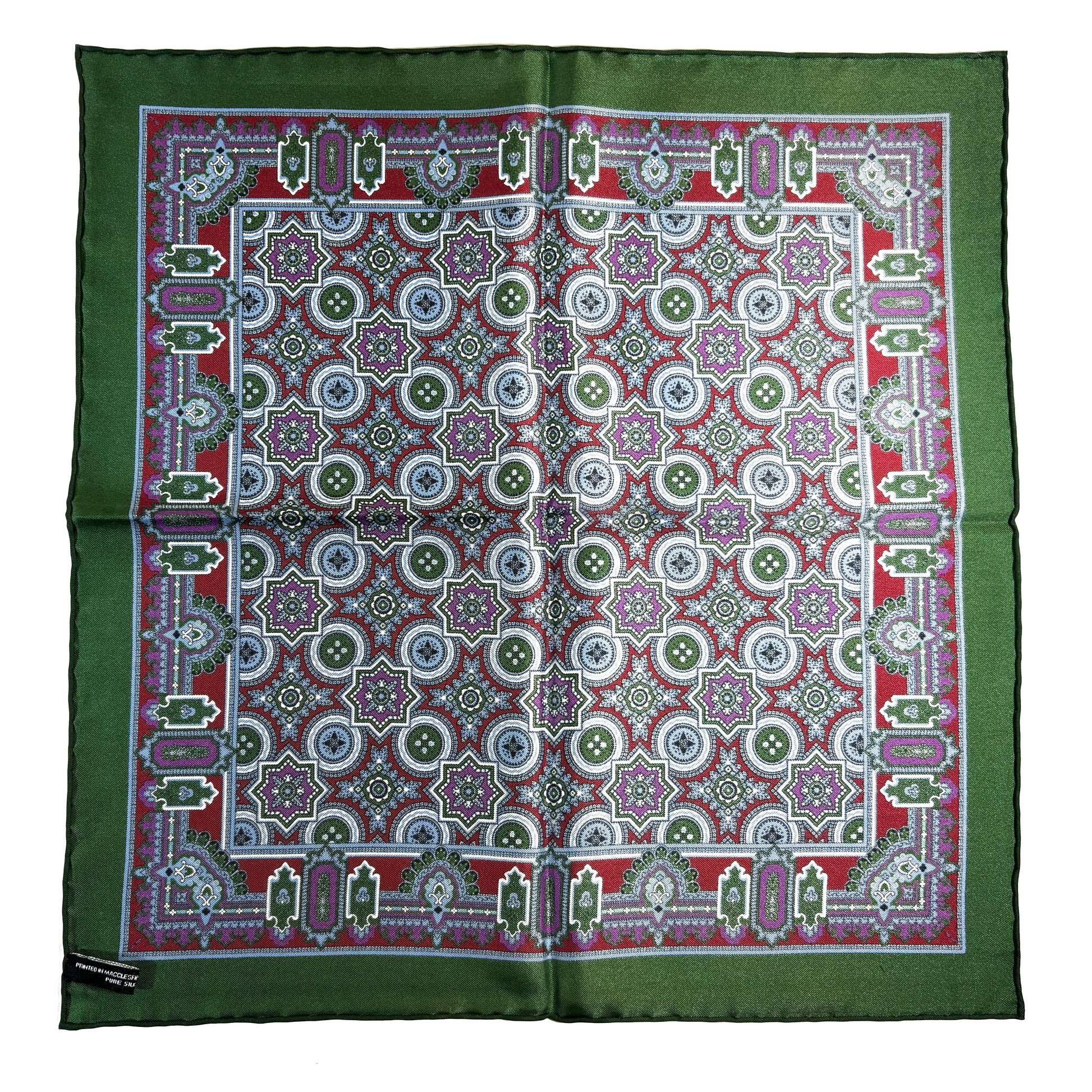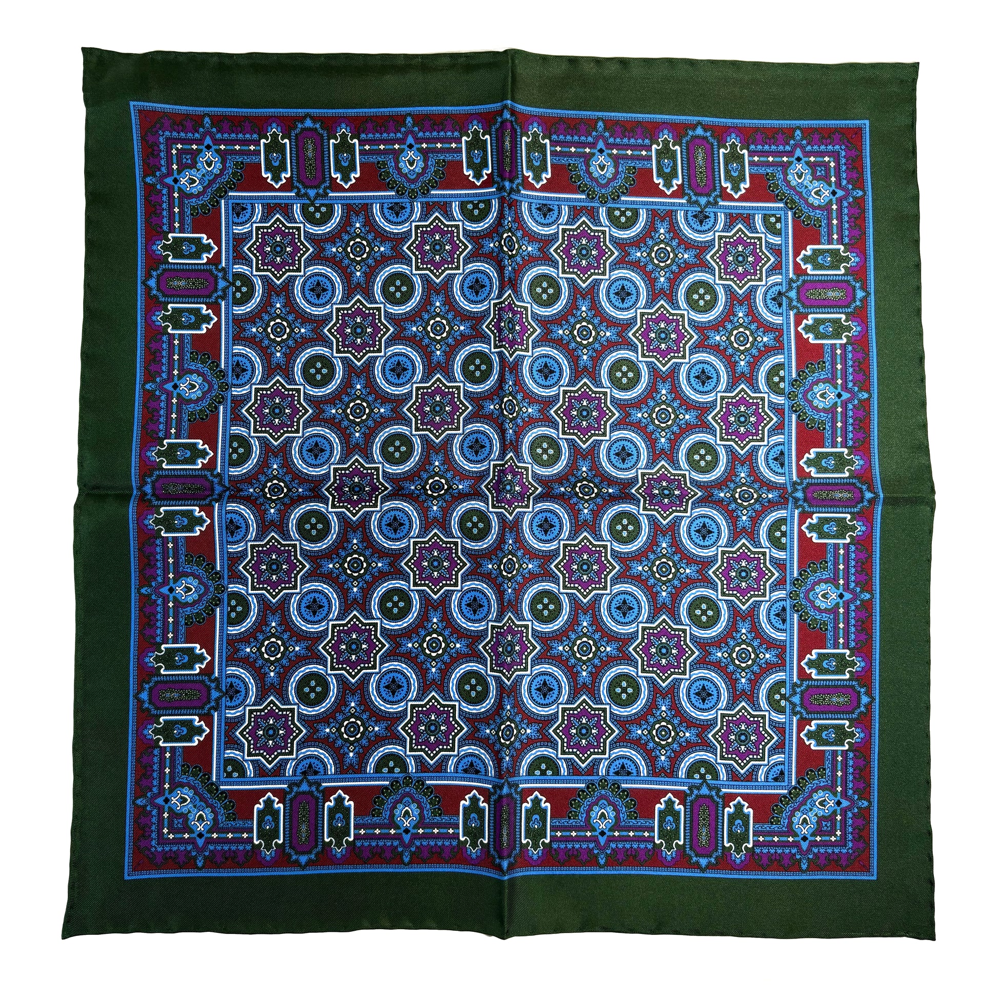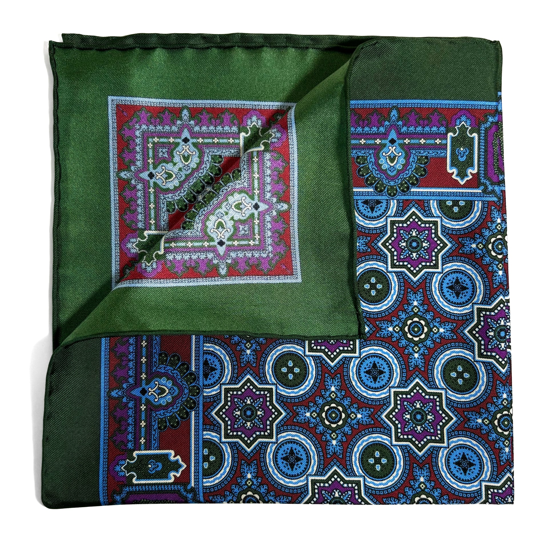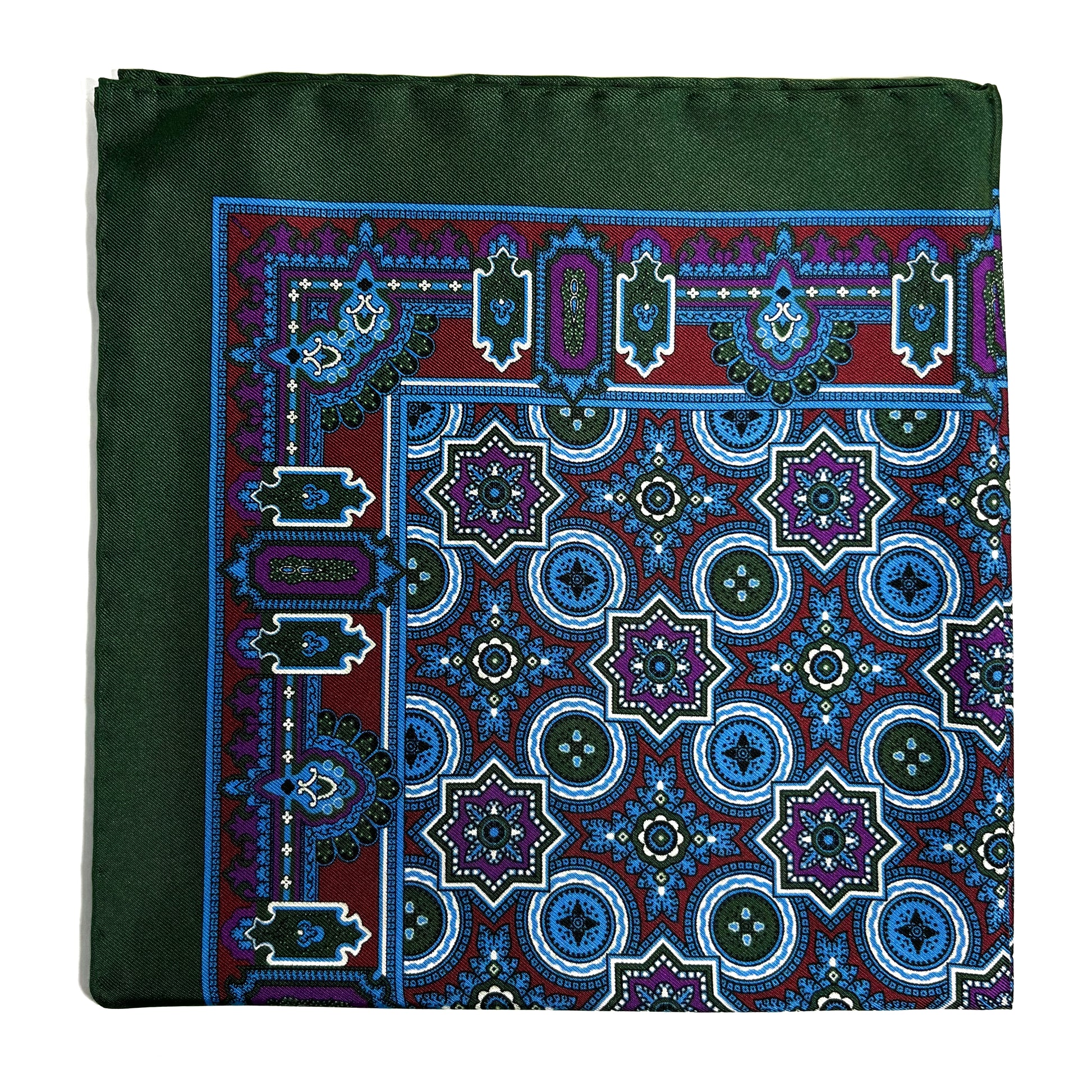 Green & Burgundy Geometric Silk Pocket Square