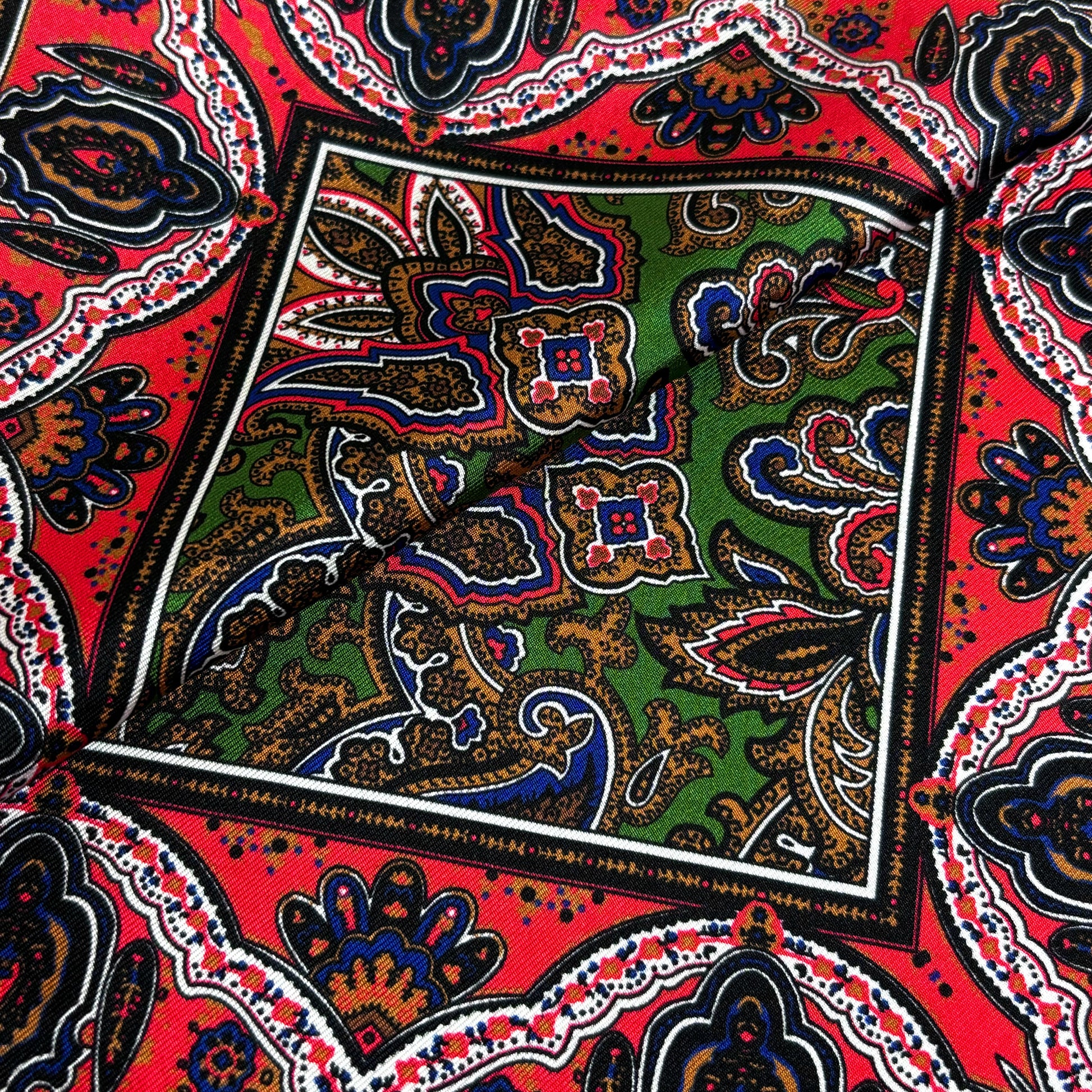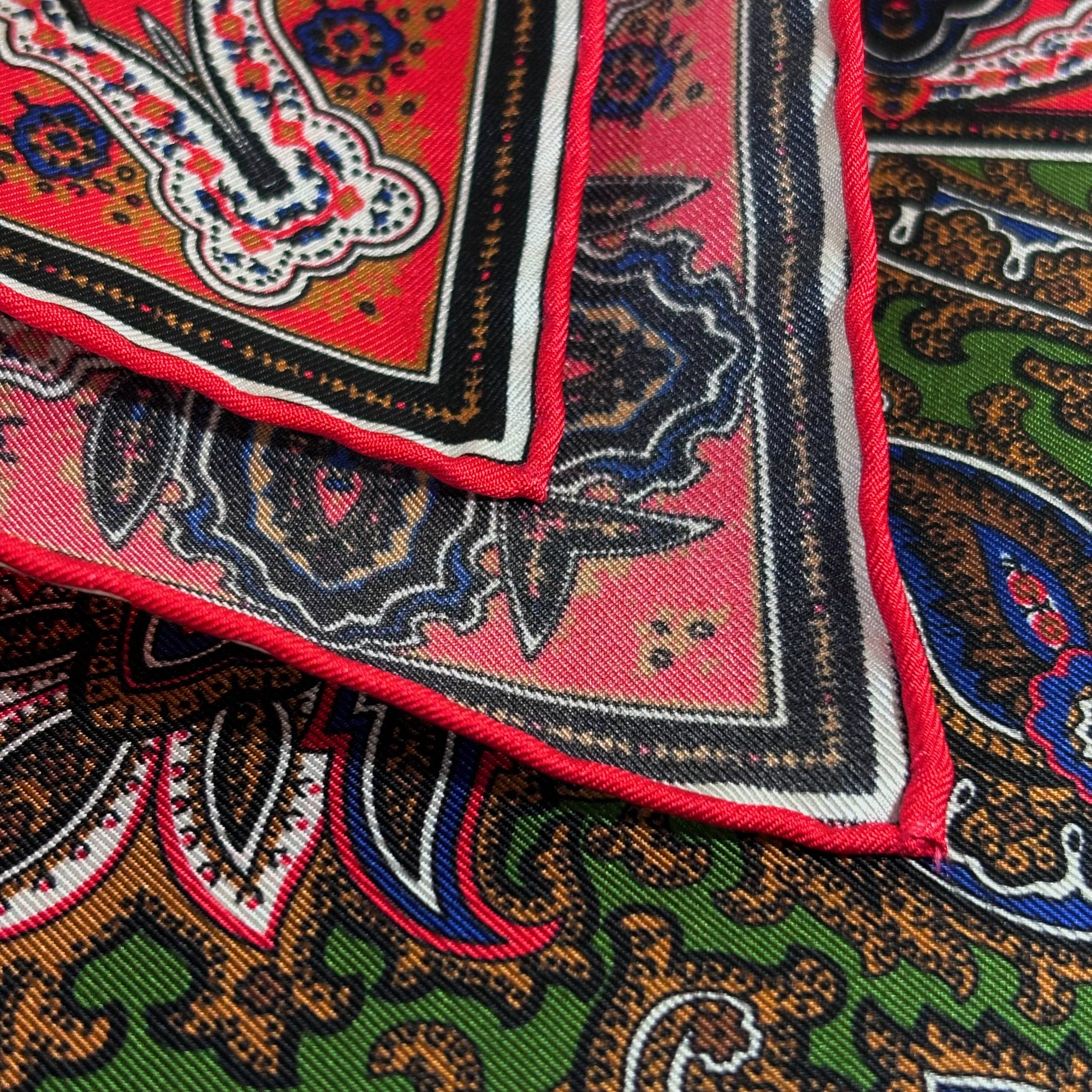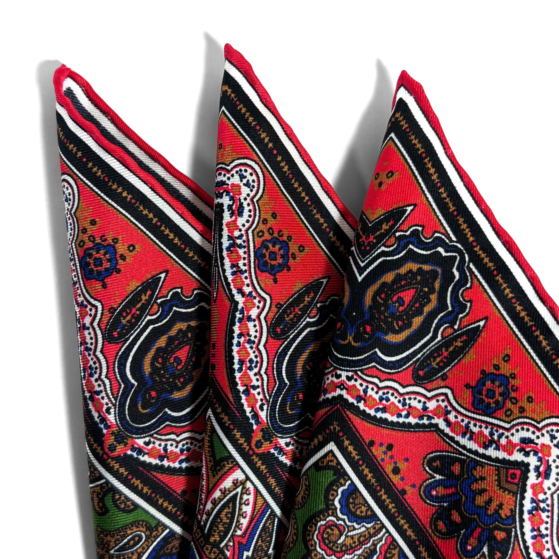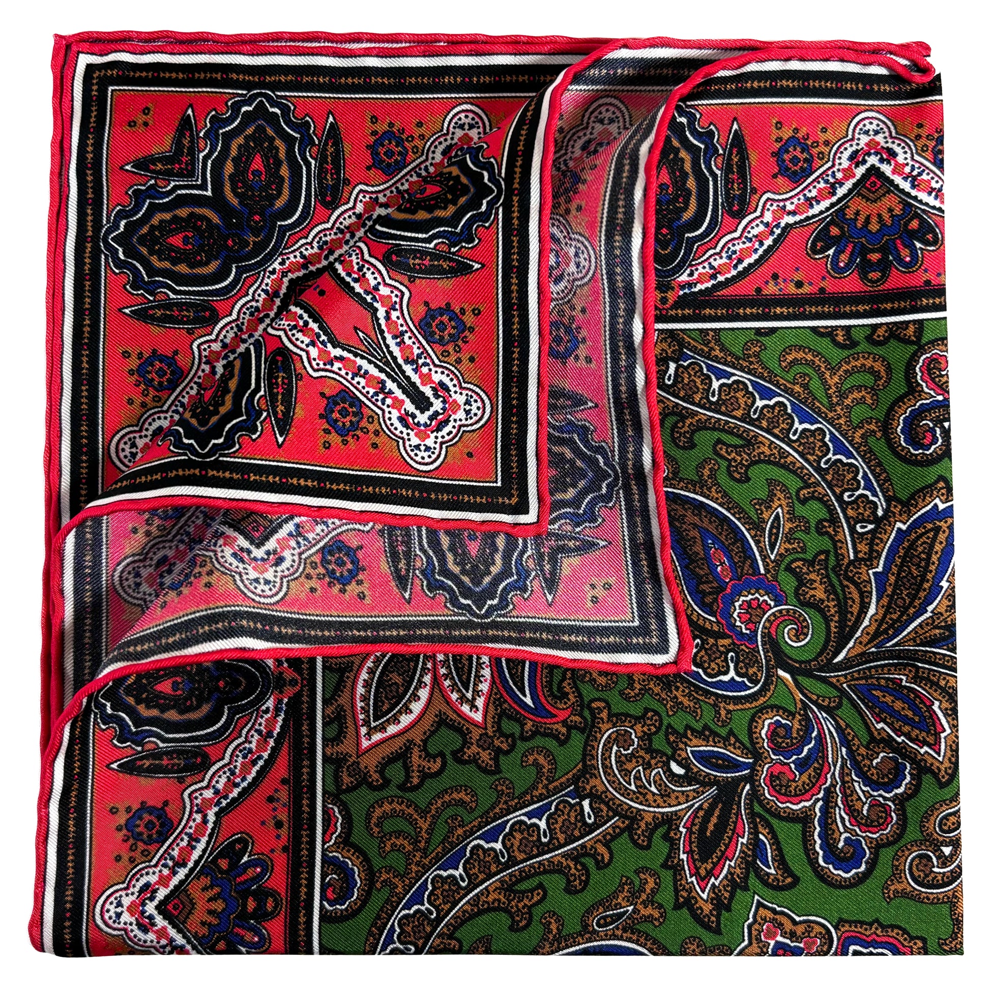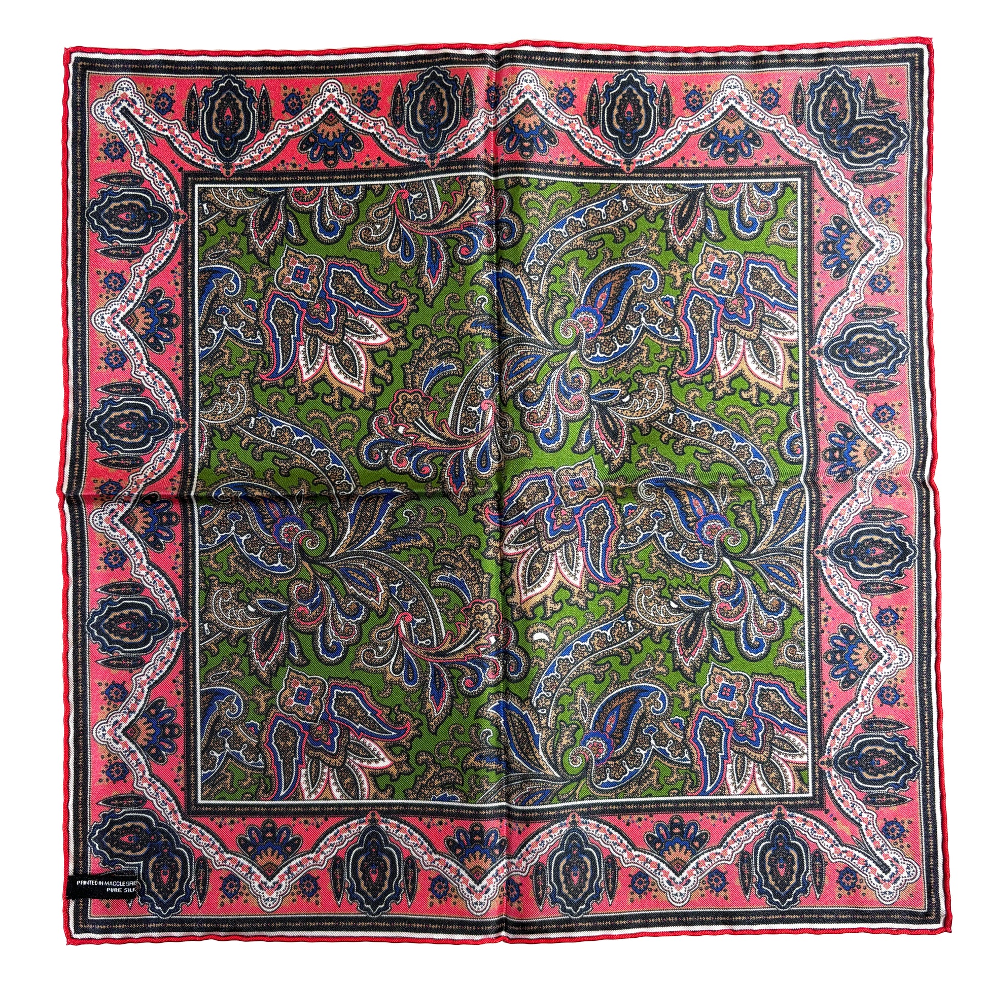 Crafted from 100% silk twill and handmade in England, this pocket square reflects the enduring legacy of British textile excellence. Produced in the historic town of Macclesfield—renowned for centuries of silk craftsmanship—each piece is hand-sewn with hand-rolled edges, offering refined structure and depth in every fold. Silk twill remains the gold standard for pocket squares, prized for its lightweight feel, rich dye absorption, and elegant sheen. The fabric is printed using a modern, eco-conscious method that delivers vibrant, double-sided color while minimizing waste. Measuring 16 inches across, this square is carefully sized to stay in place throughout the day, no matter how it's folded. An understated staple of timeless menswear, made with precision and purpose. |