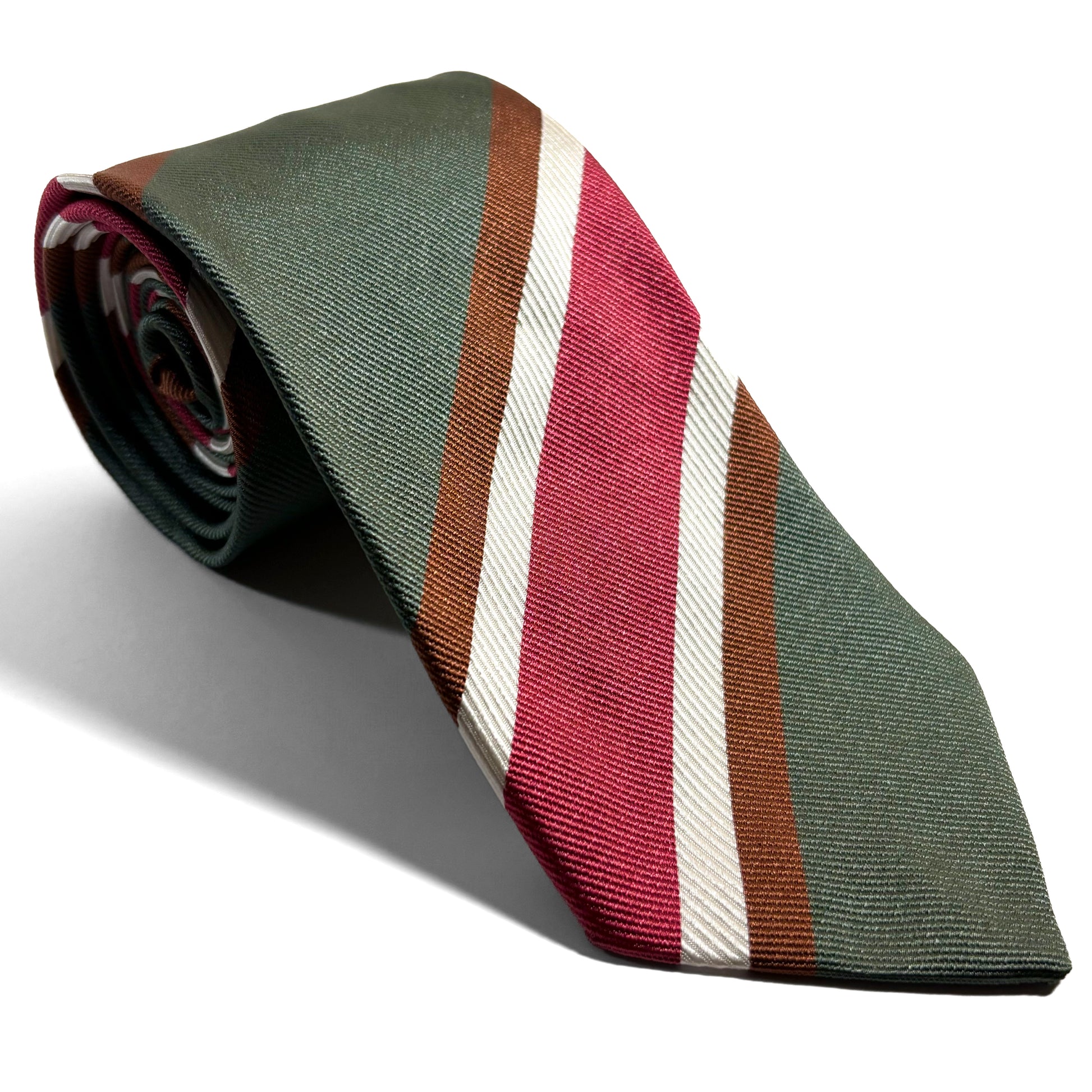 Discover the perfect blend of depth, texture, and timeless style with our Striped Silk Jacquard Tie. Handmade in Italy using the finest woven silk, this tie showcases a meticulously crafted jacquard weave that adds a rich, tactile dimension to its bold yet refined stripe pattern.