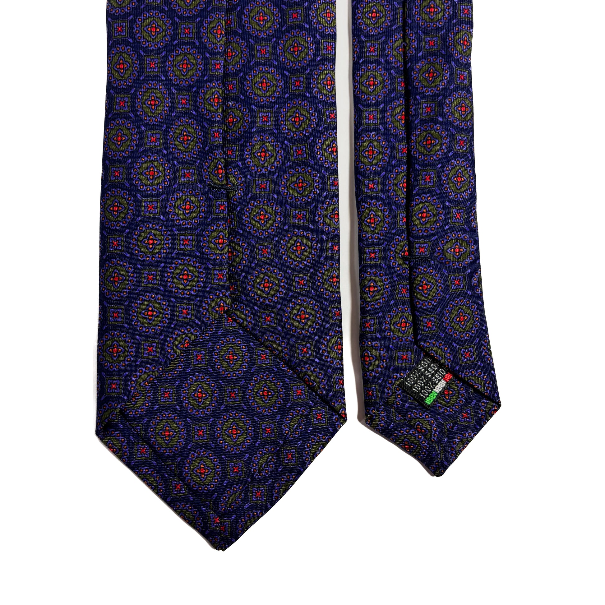 Hand-Printed Blue & Green Geometric Ancient Madder Silk Tie