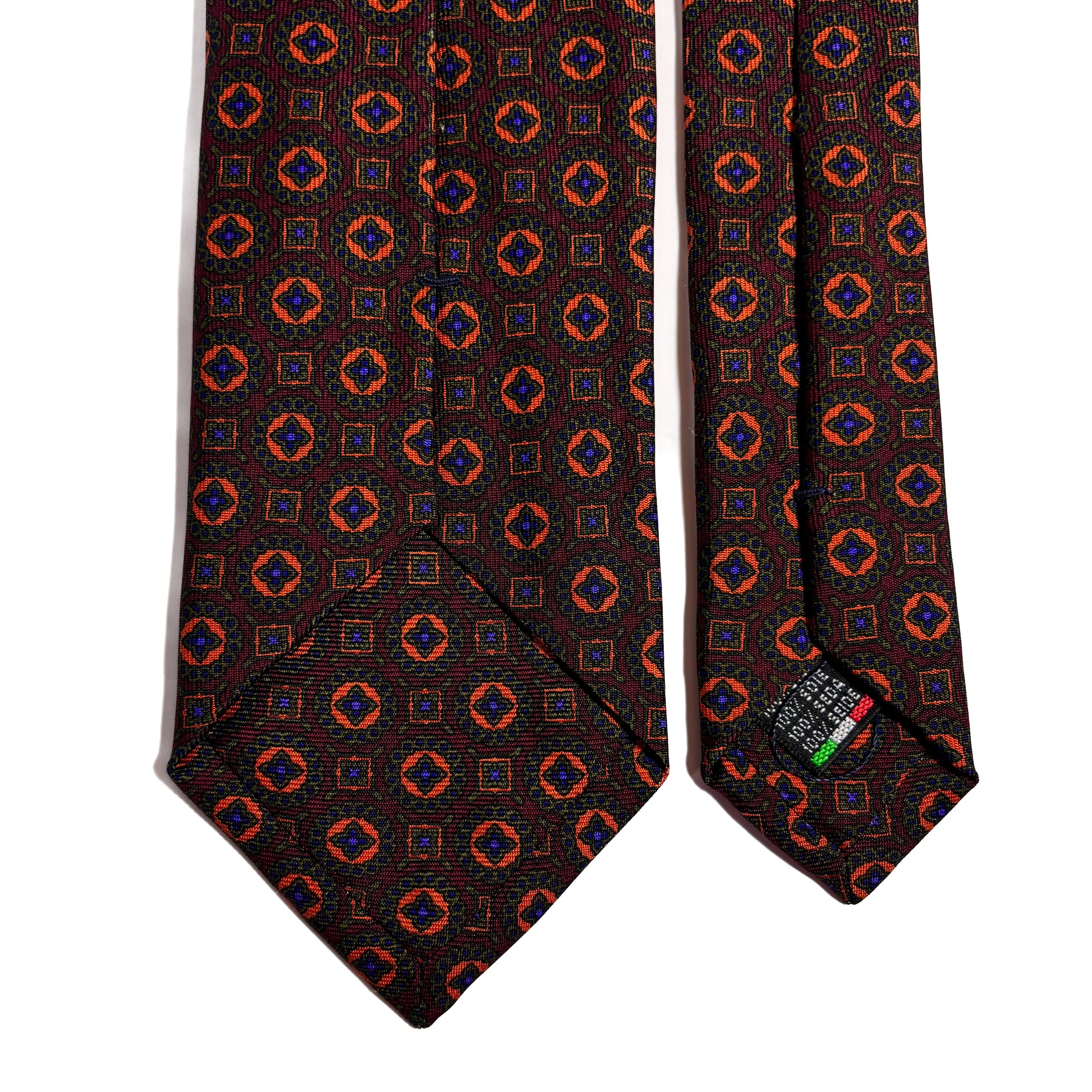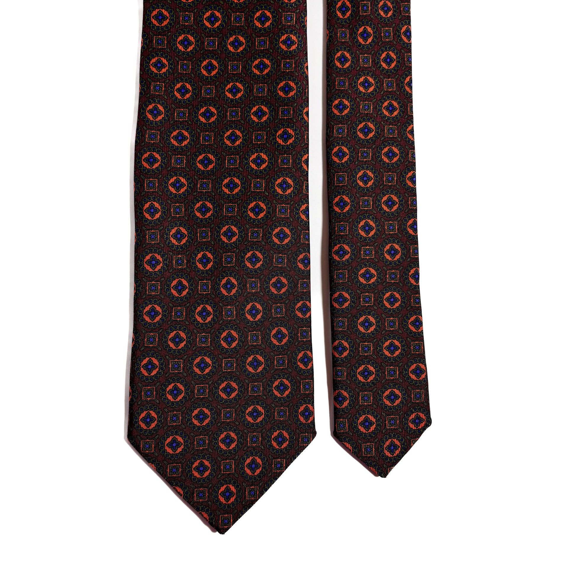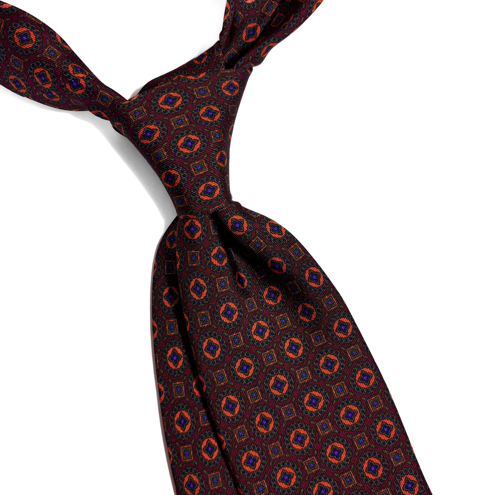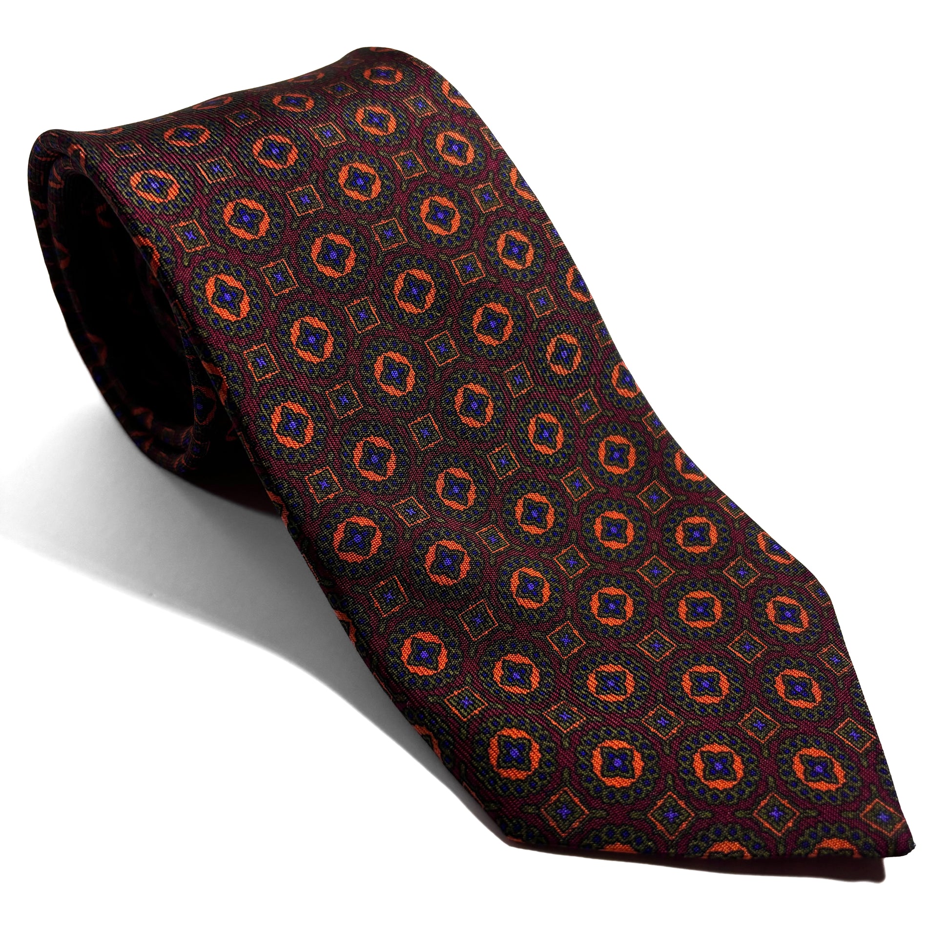 Hand-Printed Burgundy & Green Geometric Ancient Madder Silk Tie