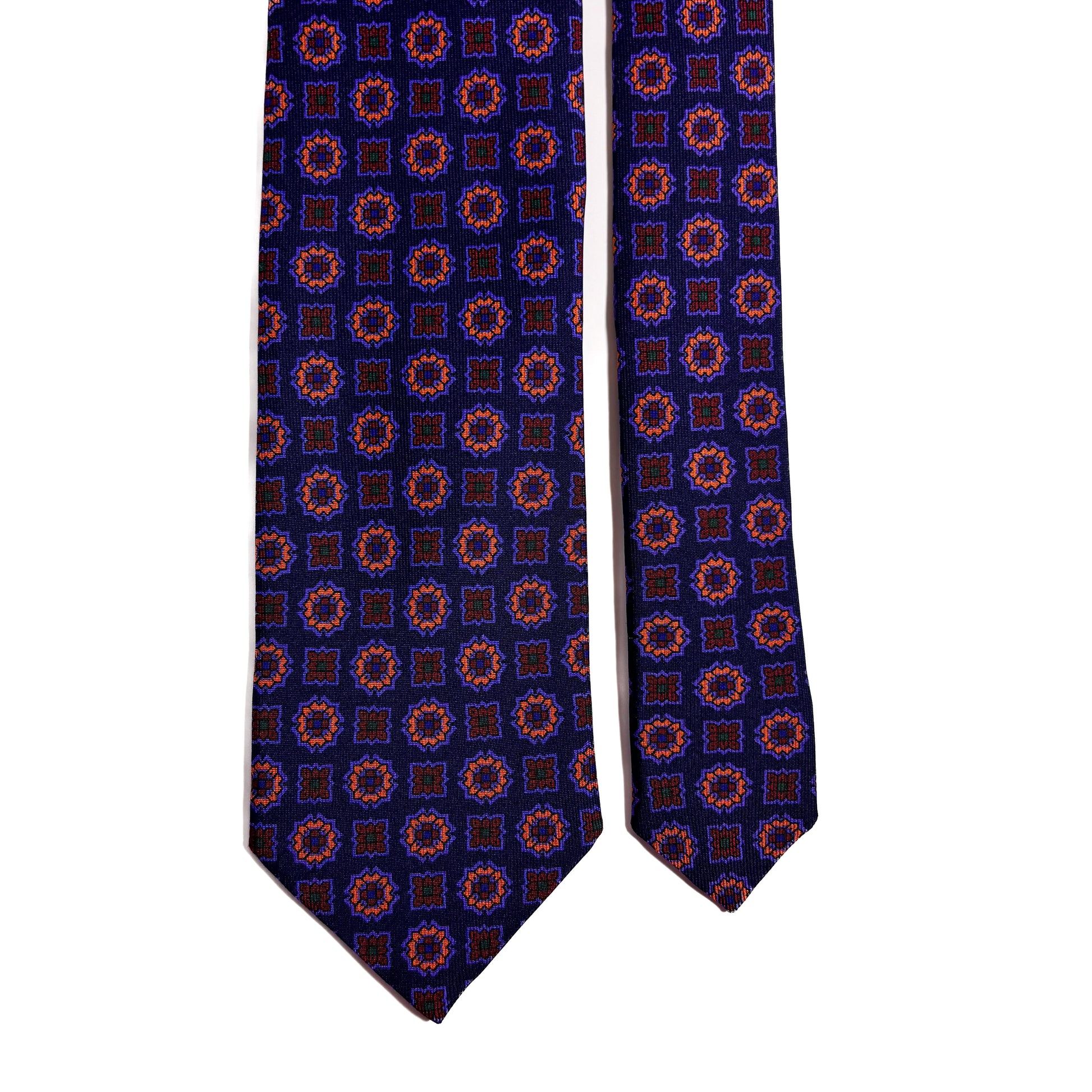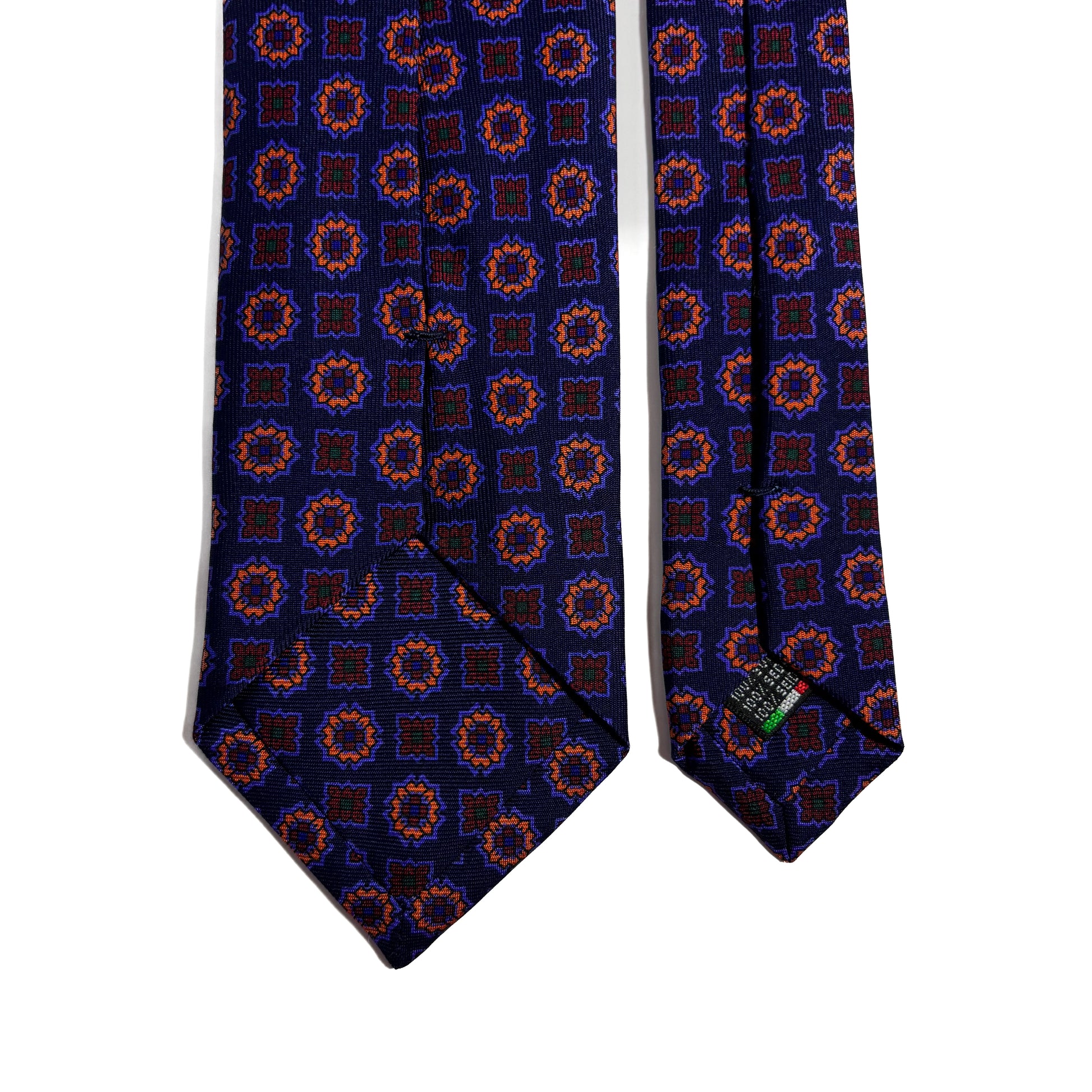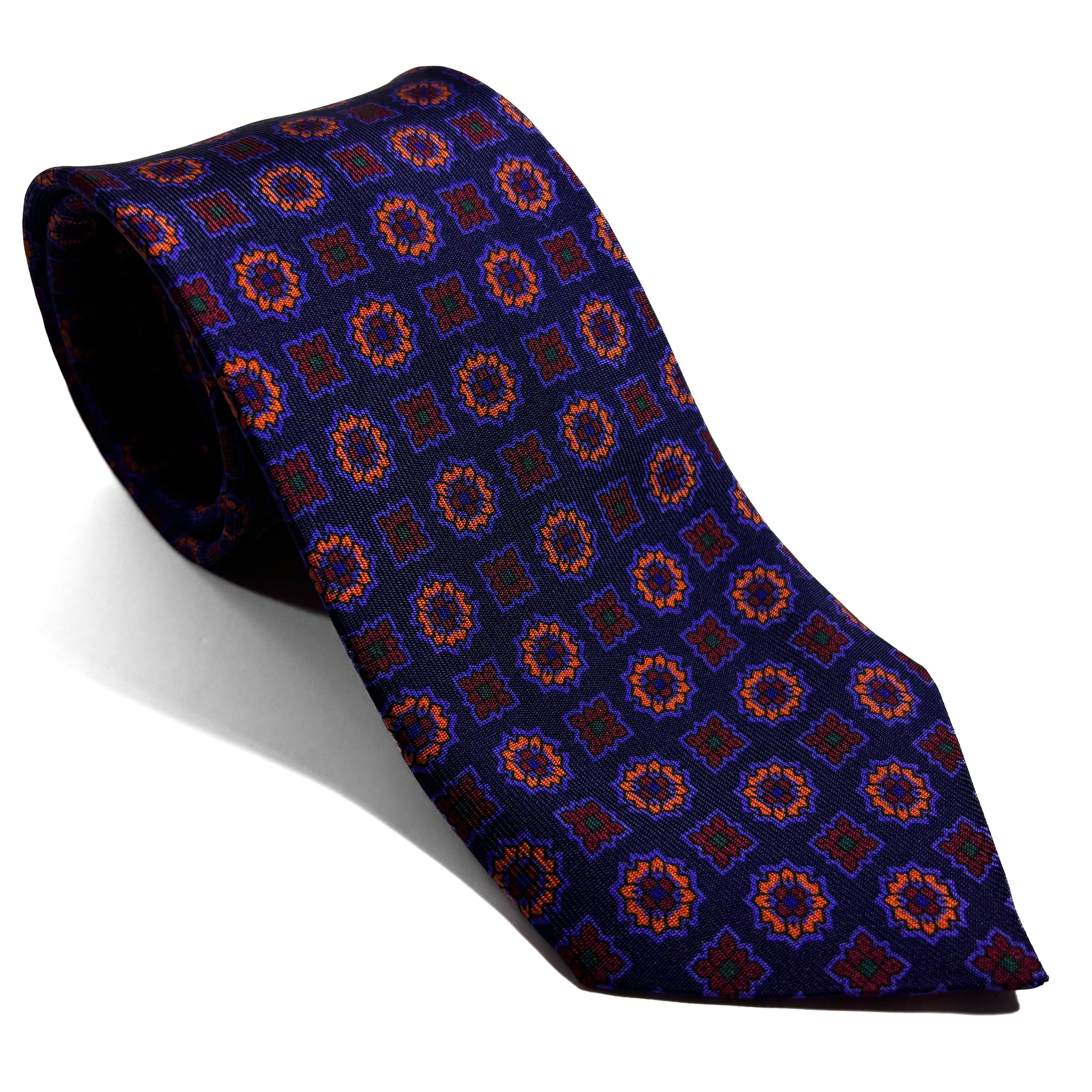 Hand-Printed Navy Blue Floral Ancient Madder Silk Tie