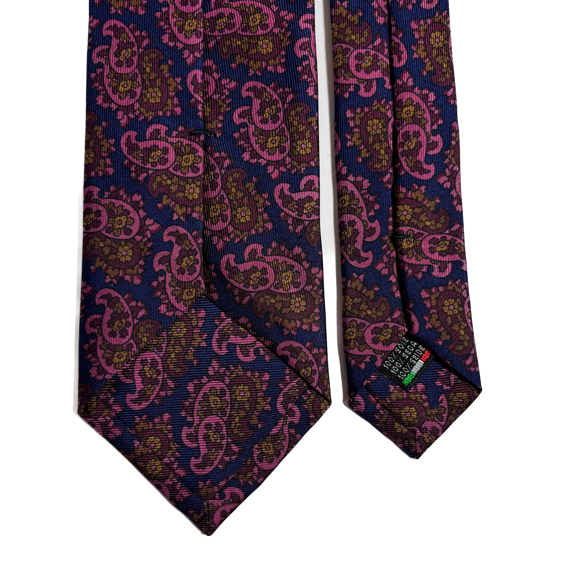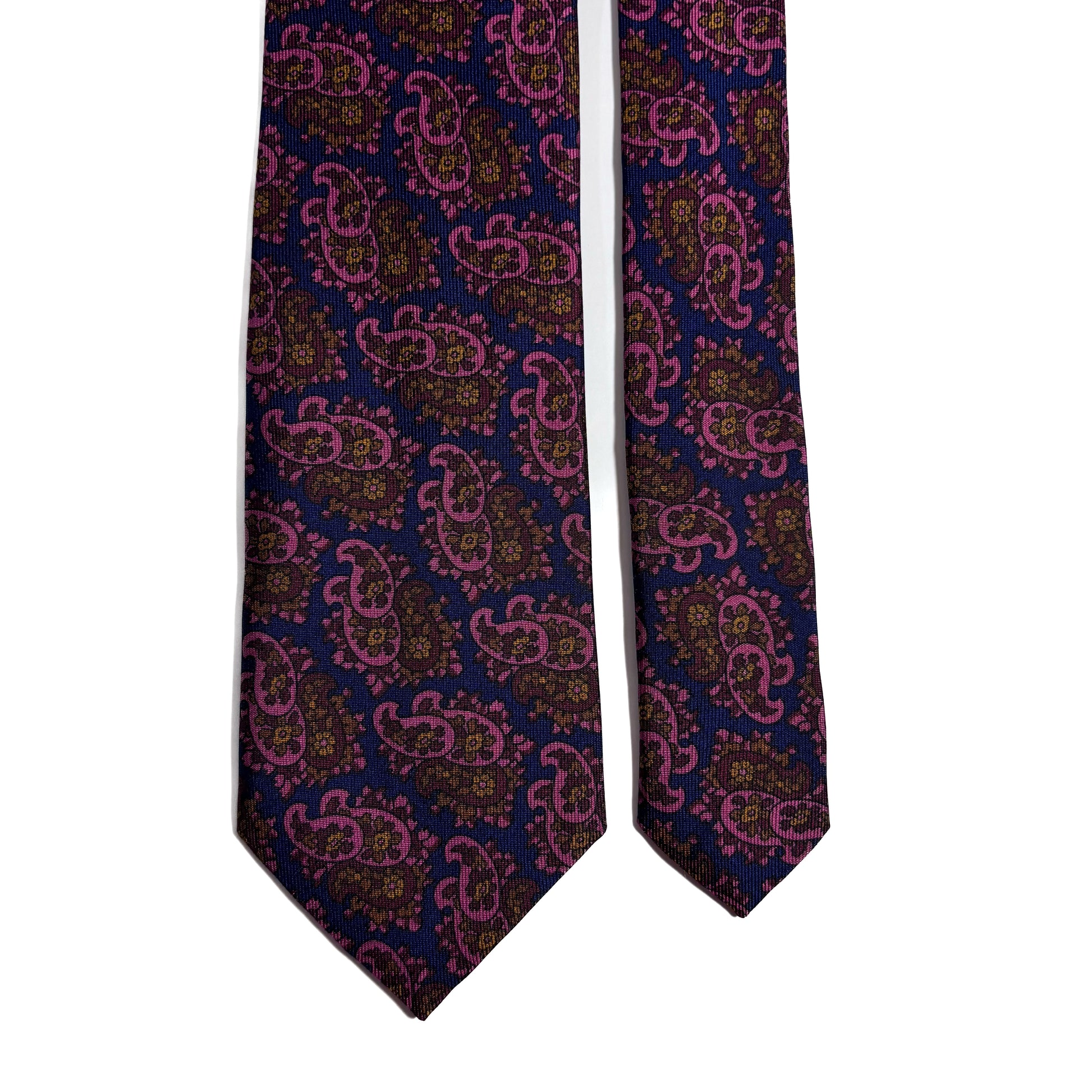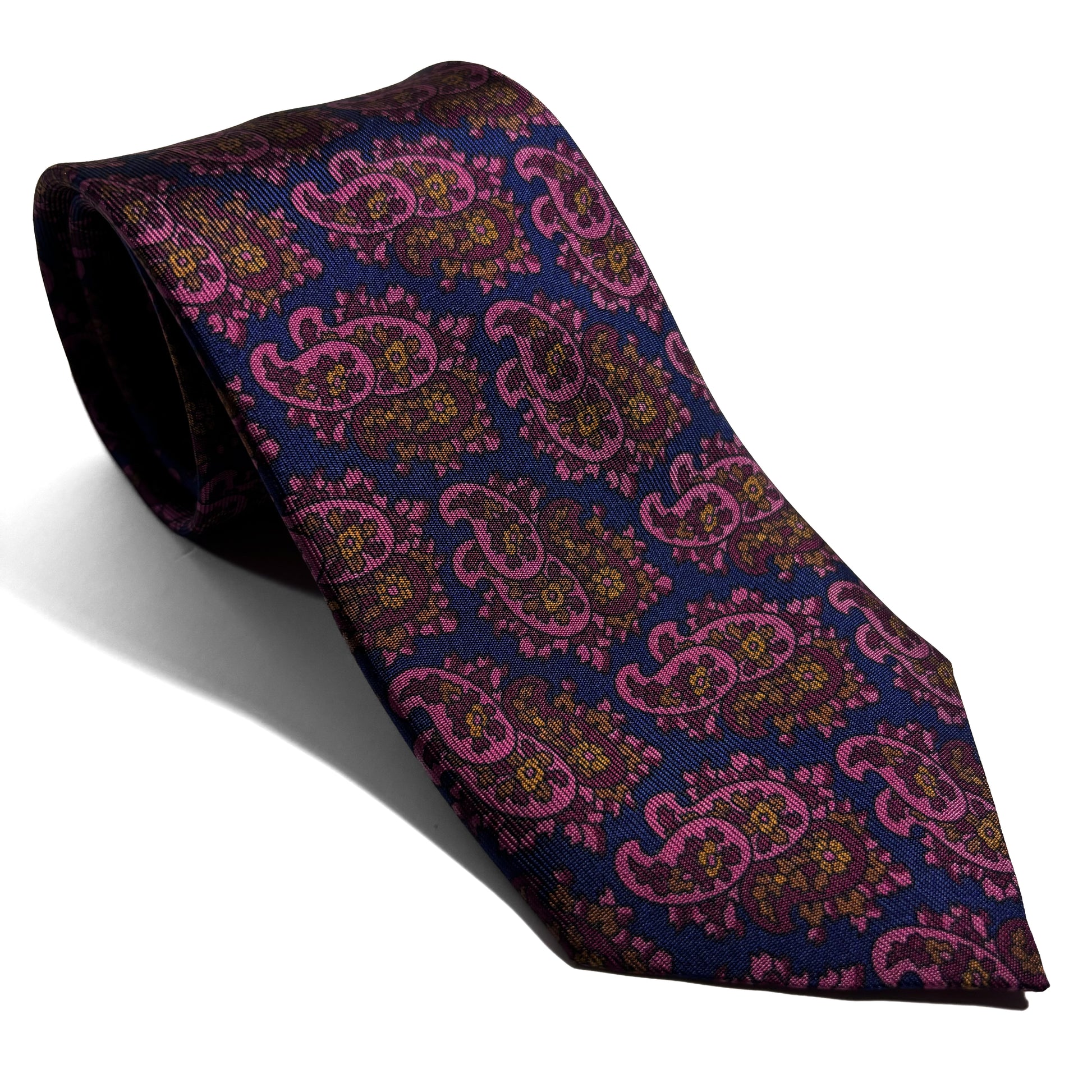 Hand-Printed Navy Blue & Pink Paisley Ancient Madder Silk Tie