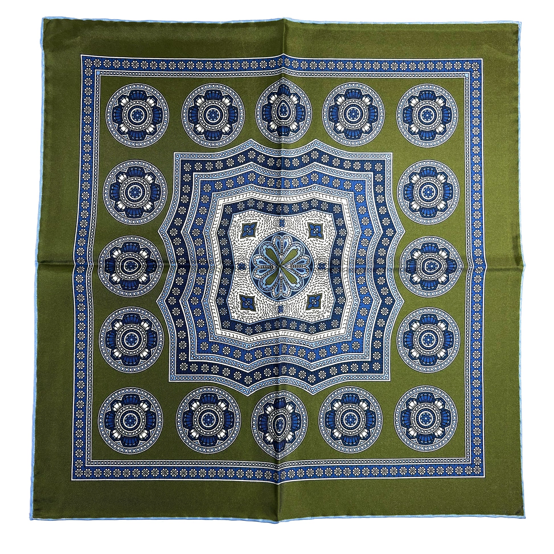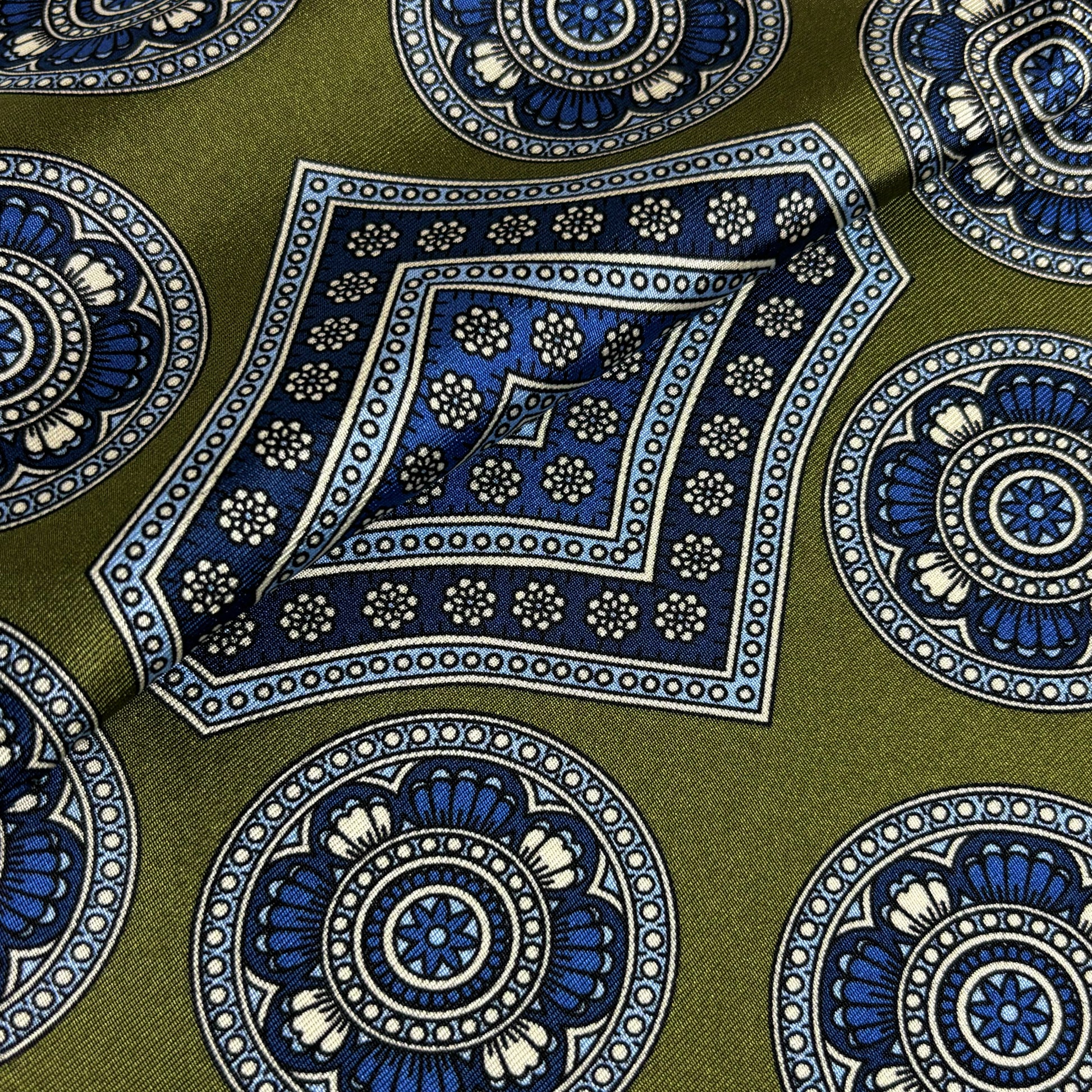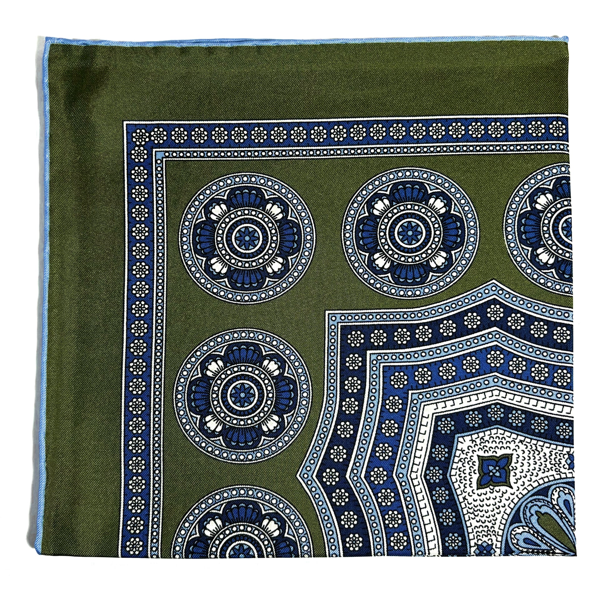 Leaf Green & Light Blue Medallion Silk Pocket Square