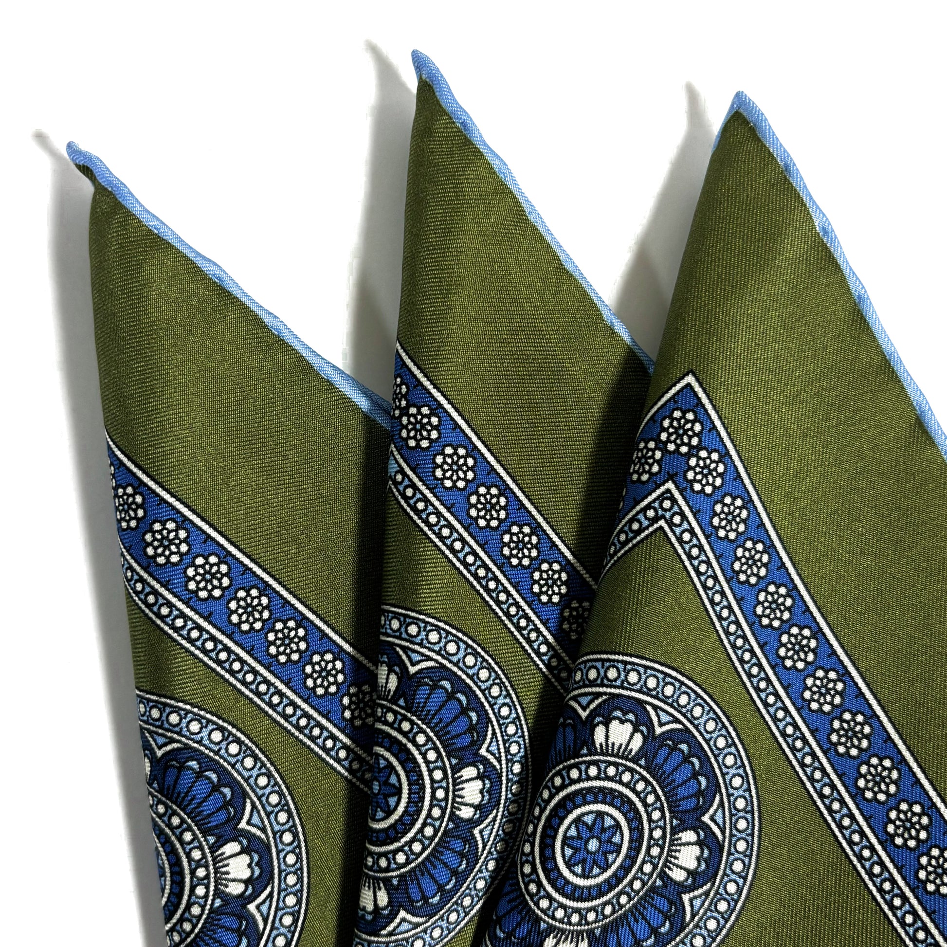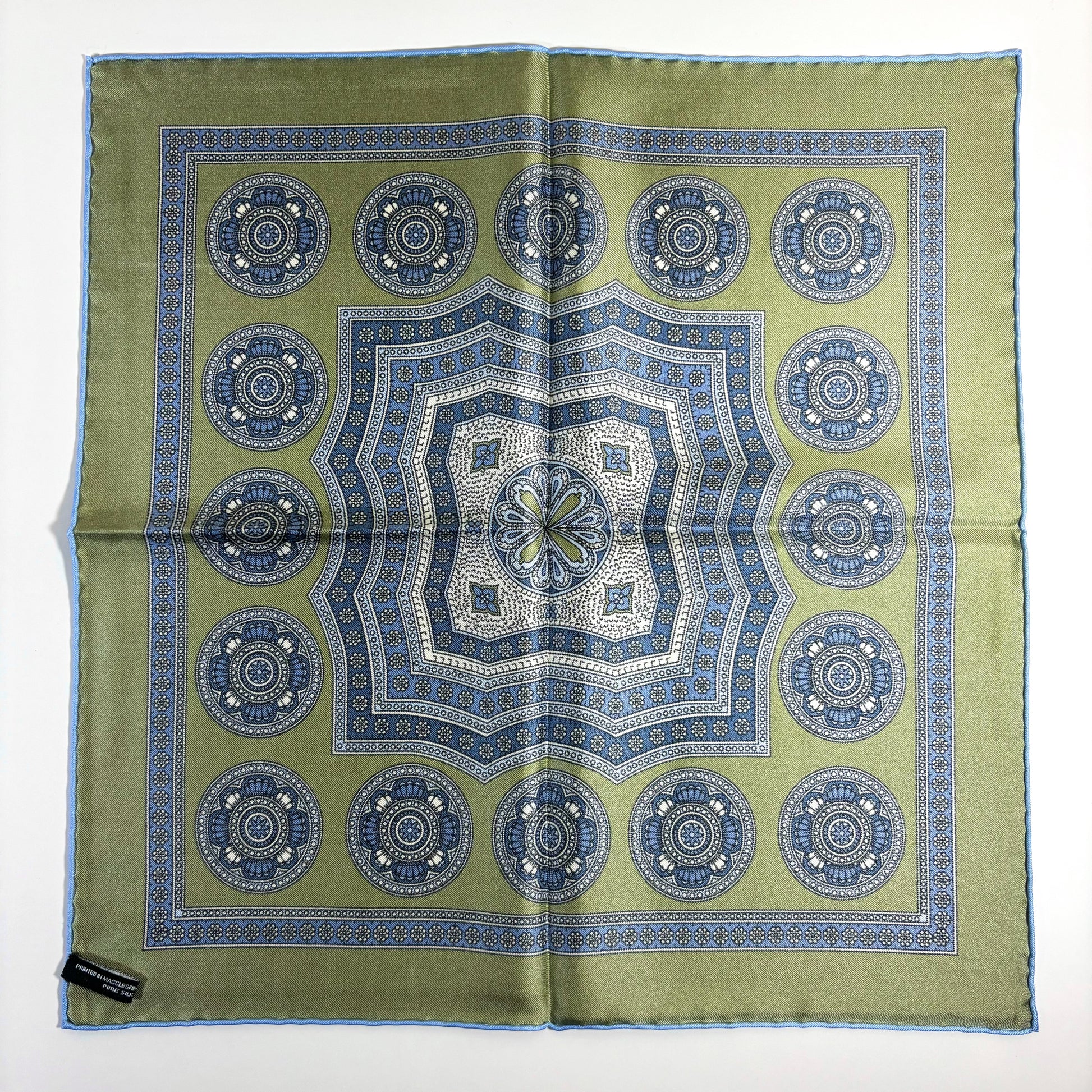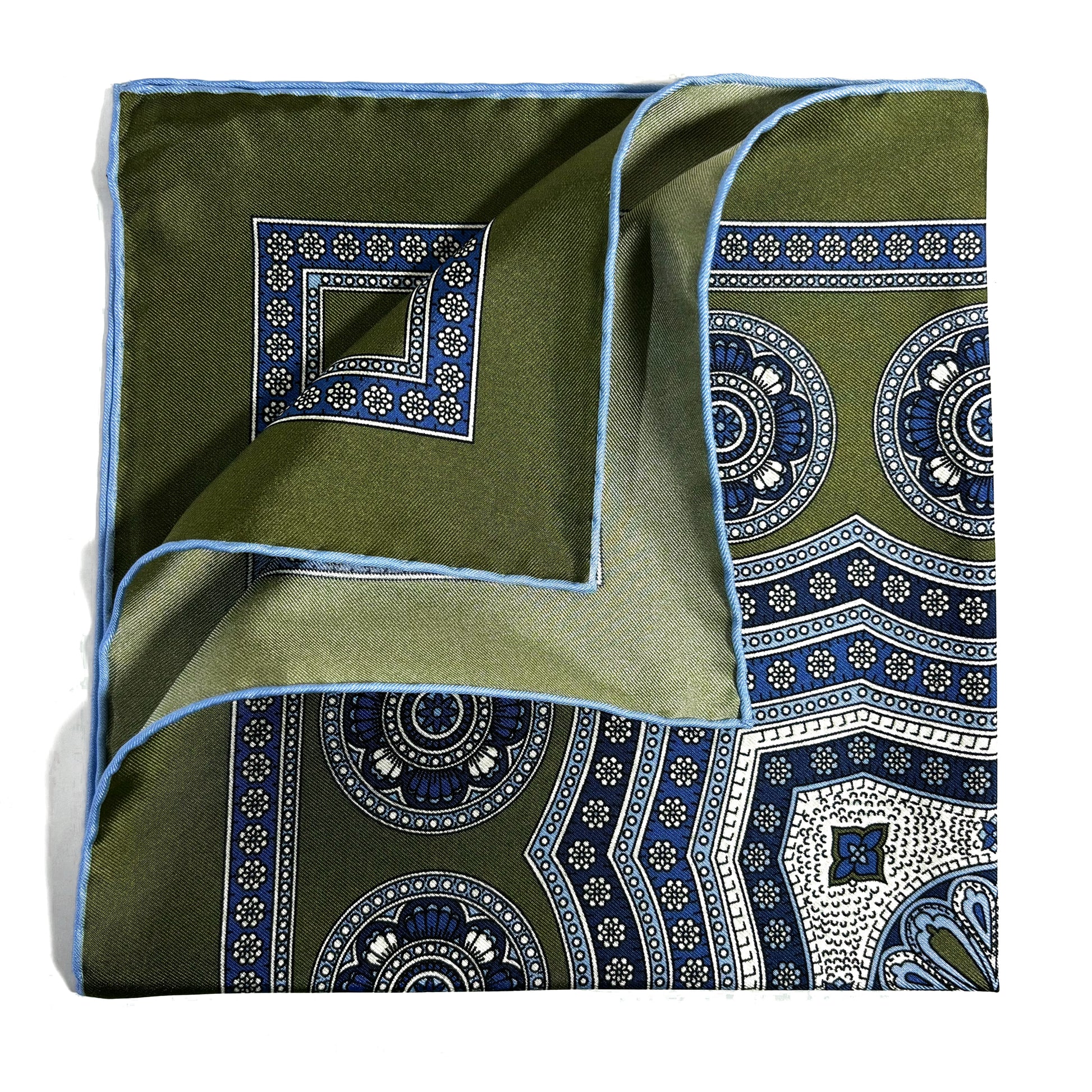 Leaf Green & Light Blue Medallion Silk Pocket Square