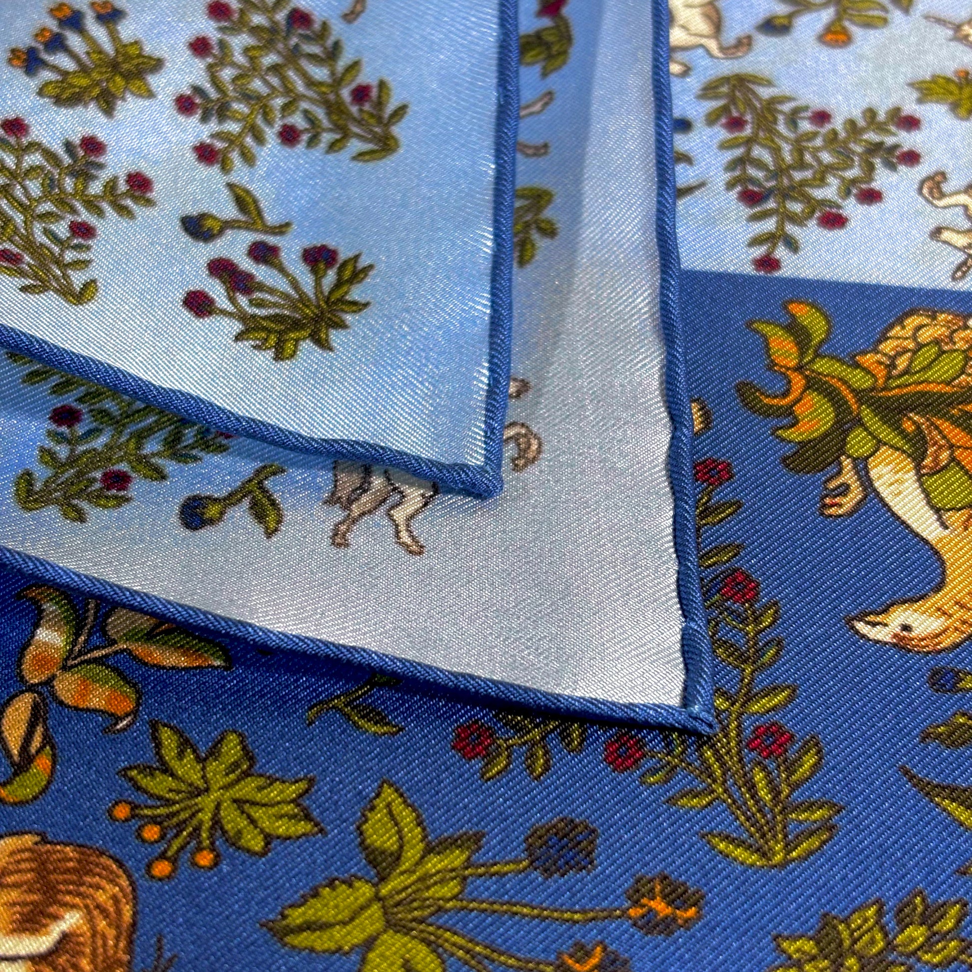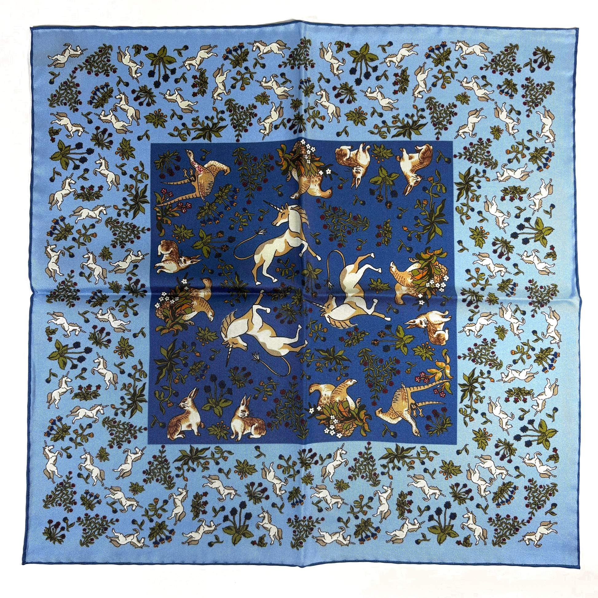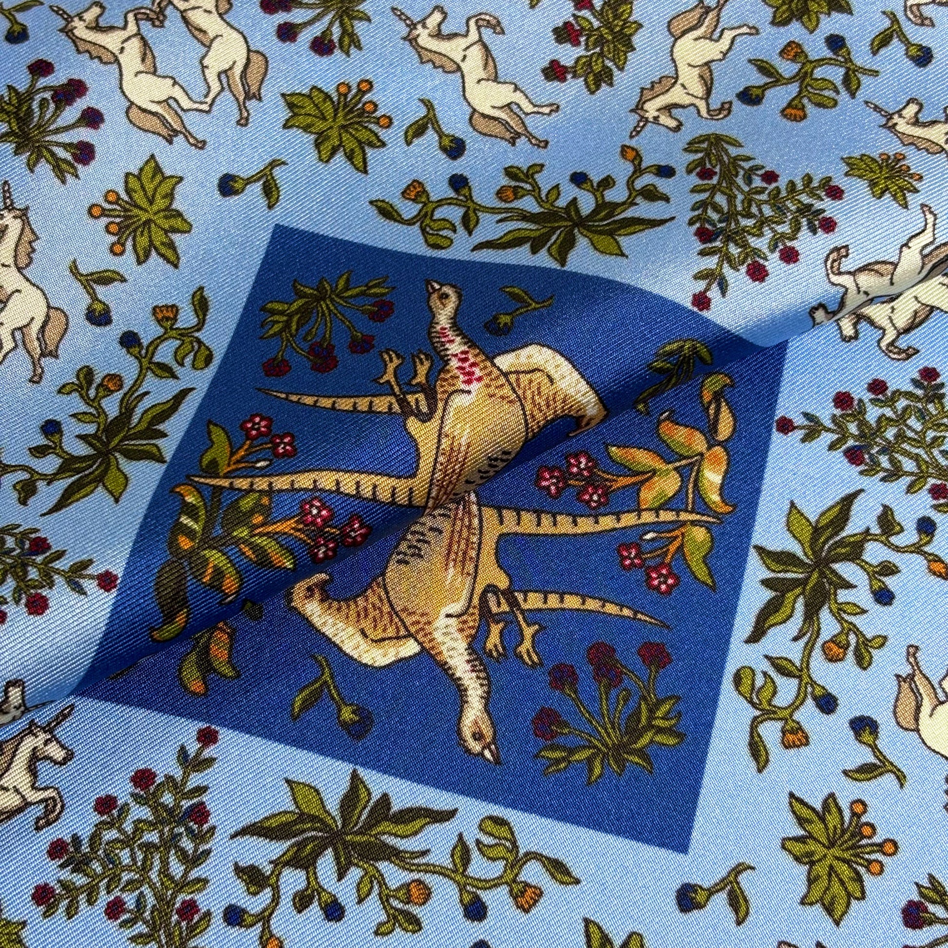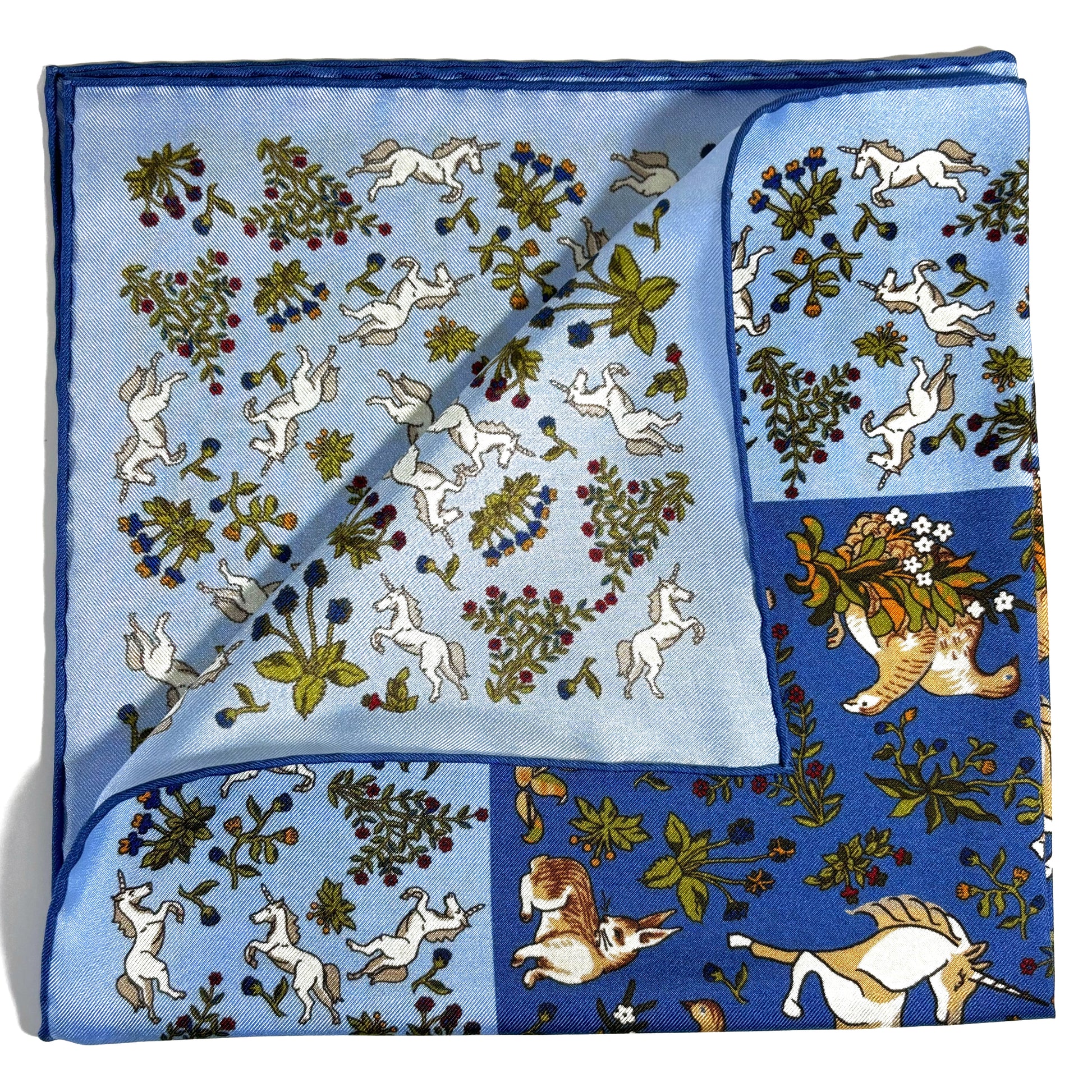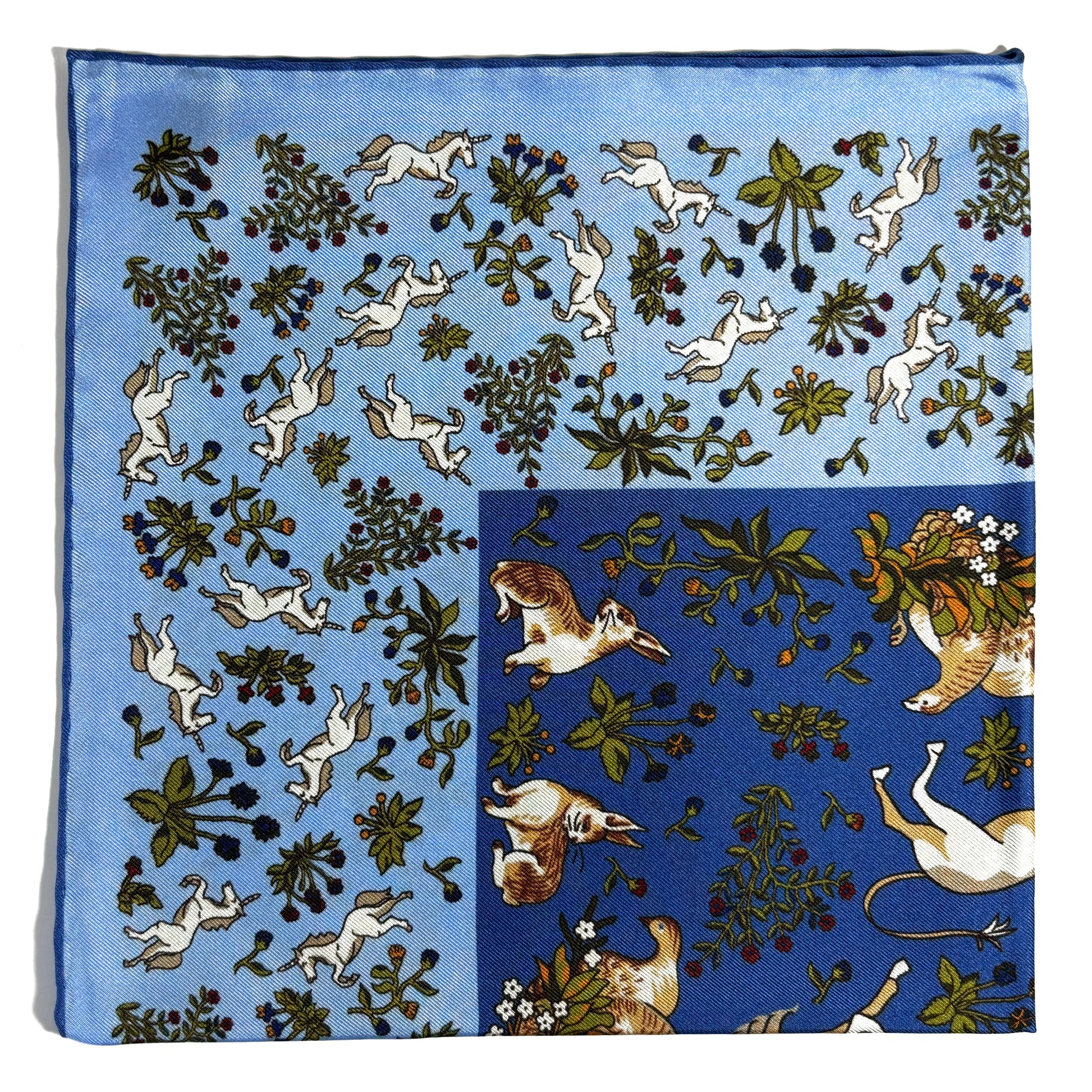 Light Blue & Blue Unicorn Motif Ancient Madder Silk Pocket Square