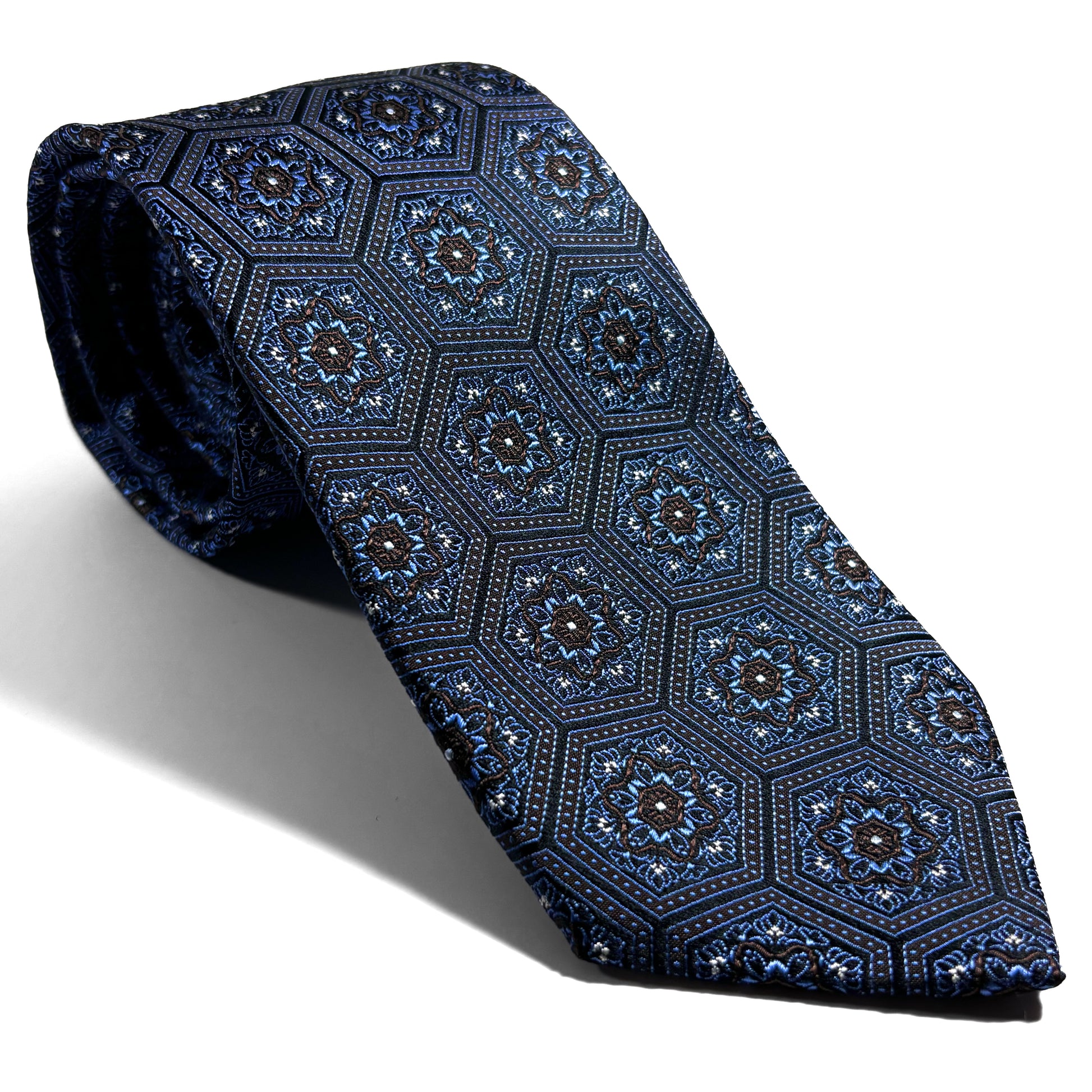 Light Blue & Brown Hexagon Silk Jacquard Tie