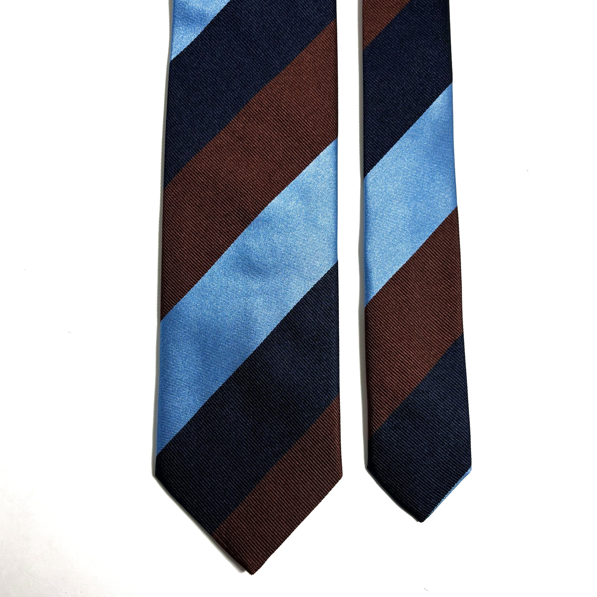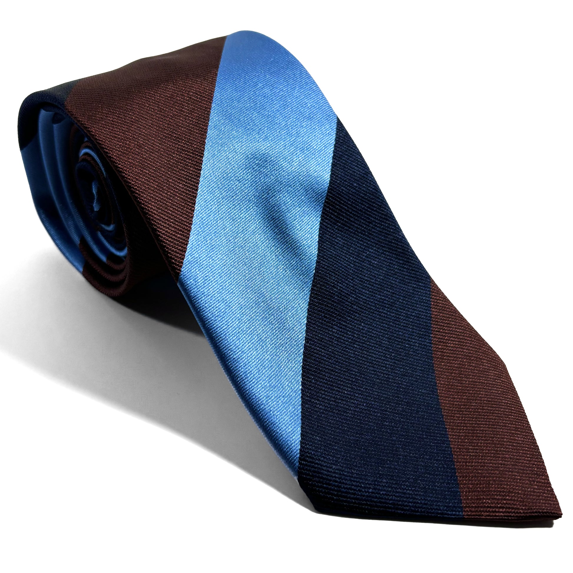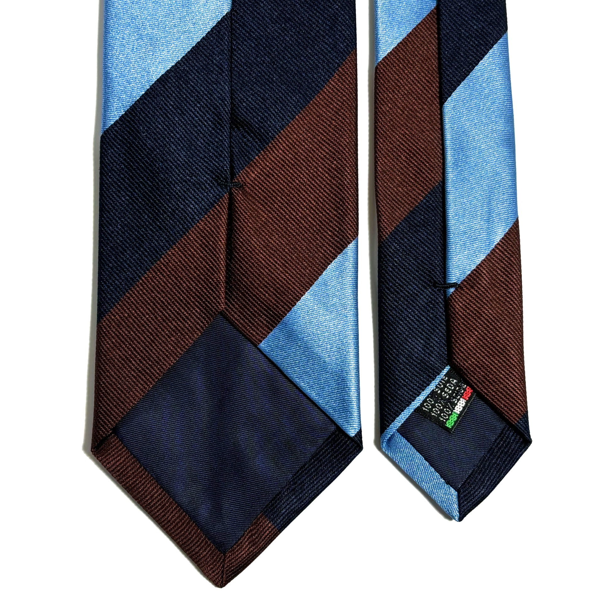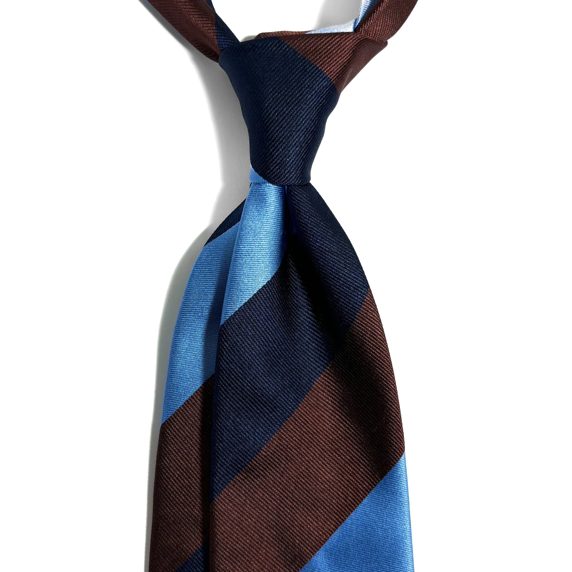 Light Blue / Brown / Navy Striped Silk Repp Tie