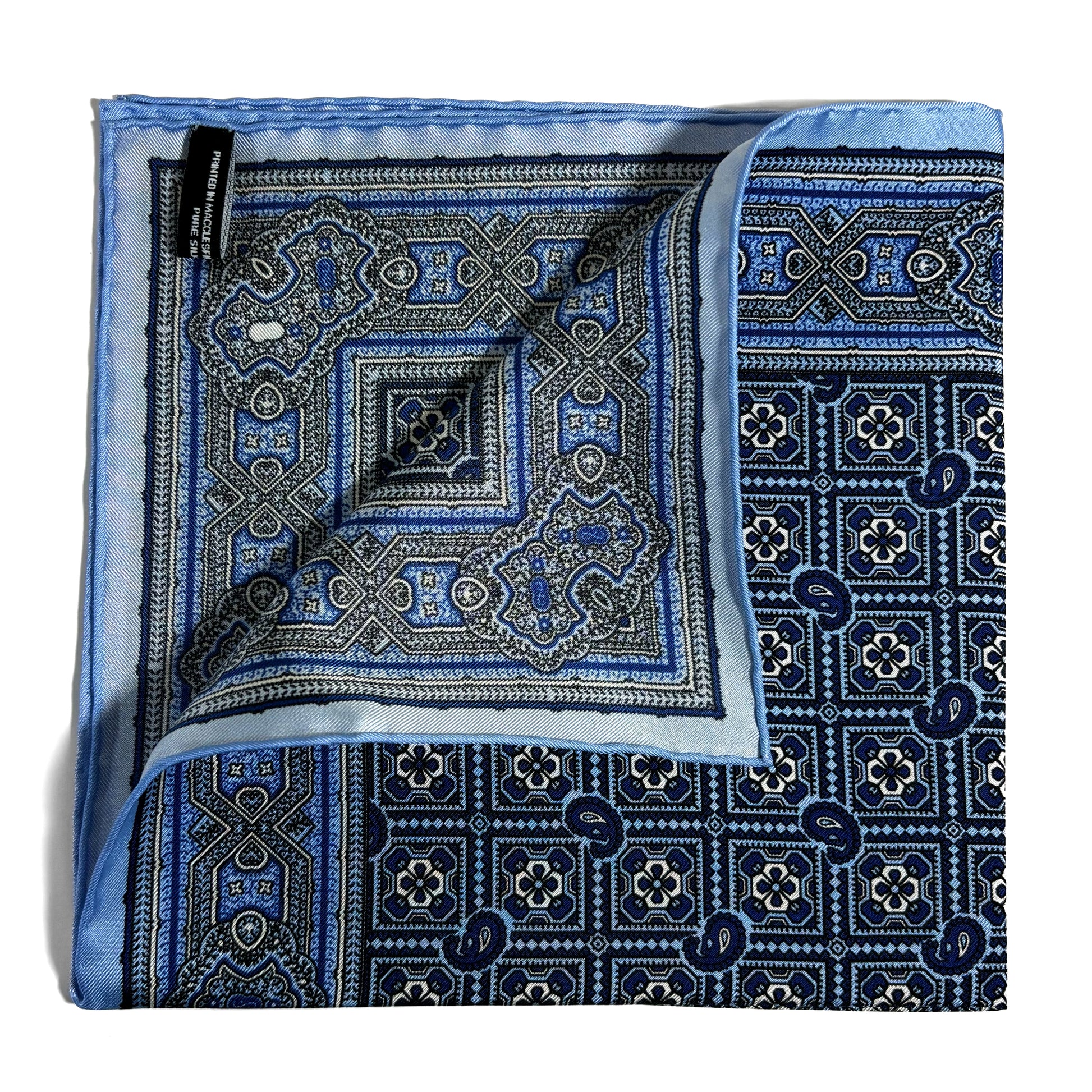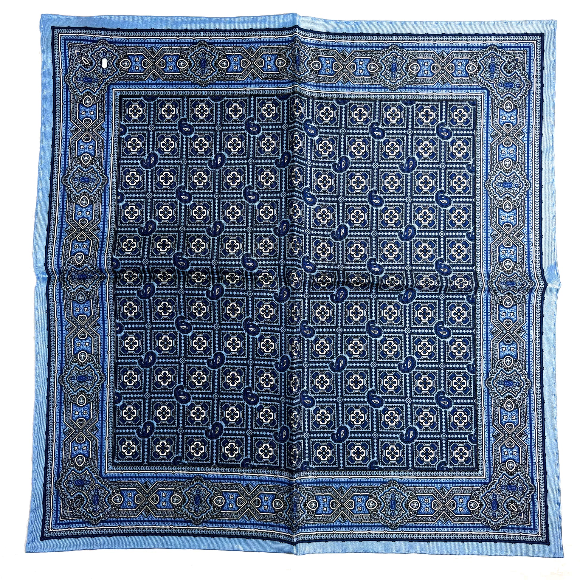 Crafted from 100% silk twill and handmade in England, this pocket square reflects the enduring legacy of British textile excellence. Produced in the historic town of Macclesfield—renowned for centuries of silk craftsmanship—each piece is hand-sewn with hand-rolled edges, offering refined structure and depth in every fold. Silk twill remains the gold standard for pocket squares, prized for its lightweight feel, rich dye absorption, and elegant sheen. The fabric is printed using a modern, eco-conscious method that delivers vibrant, double-sided color while minimizing waste. Measuring 16 inches across, this square is carefully sized to stay in place throughout the day, no matter how it's folded. An understated staple of timeless menswear, made with precision and purpose. |