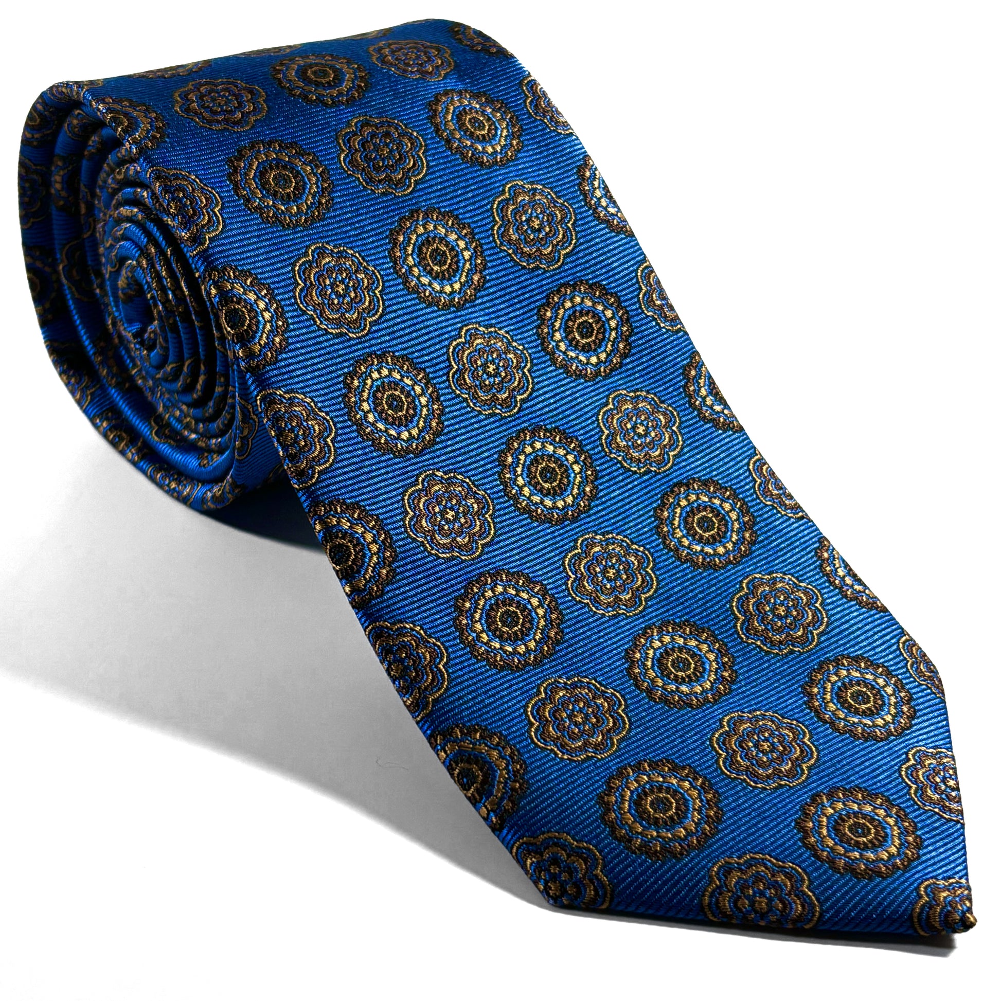 Light Blue & Gold Geometric Silk Jacquard Tie