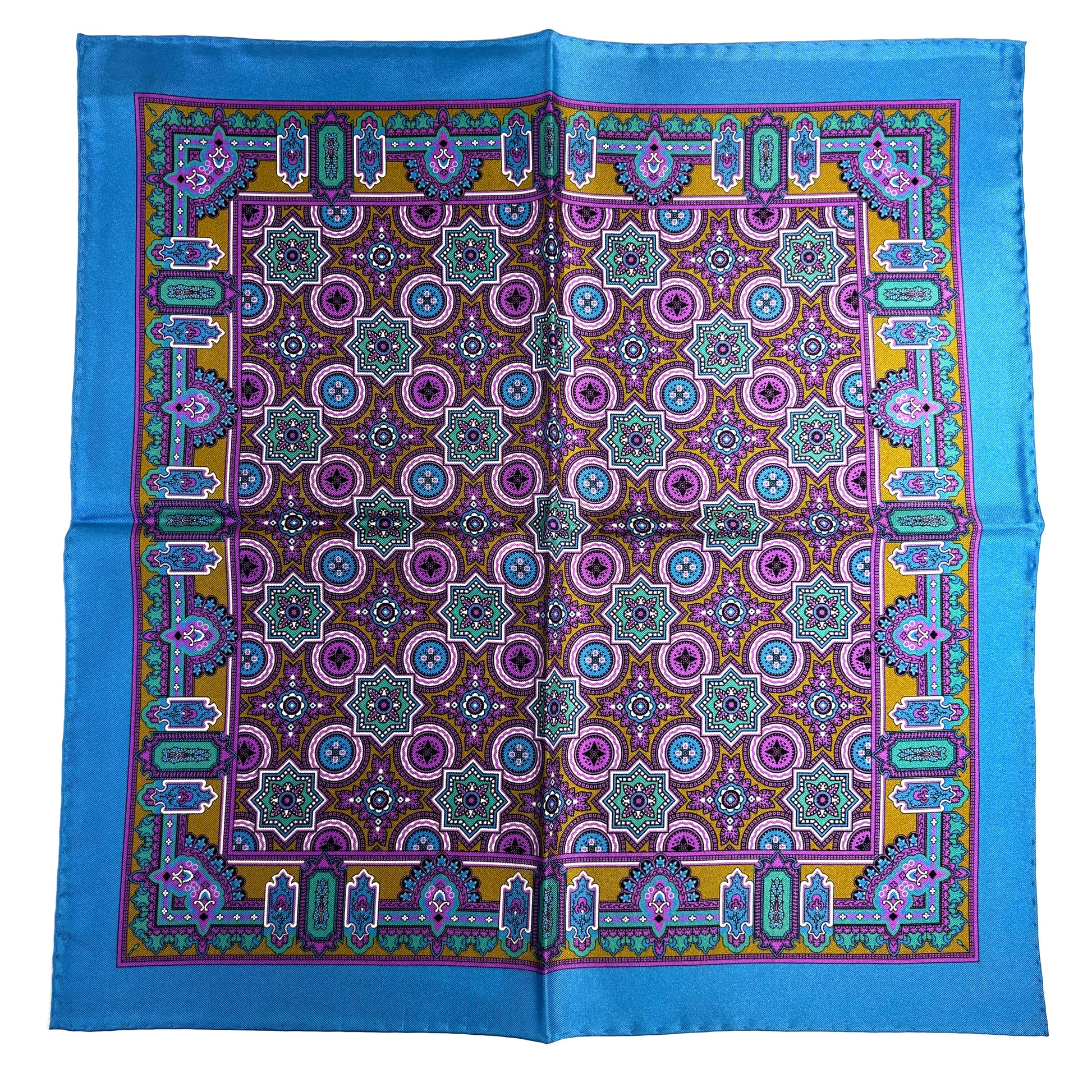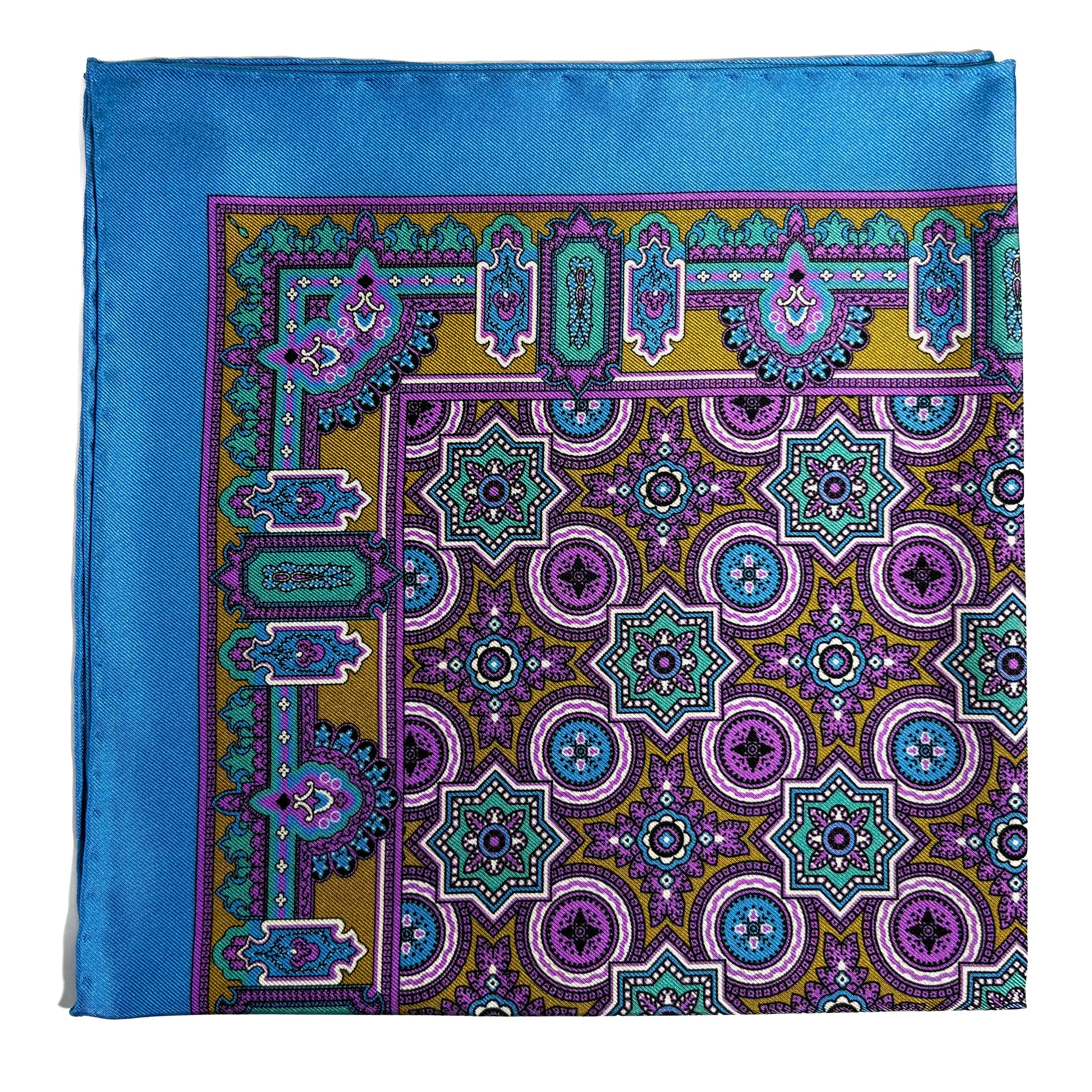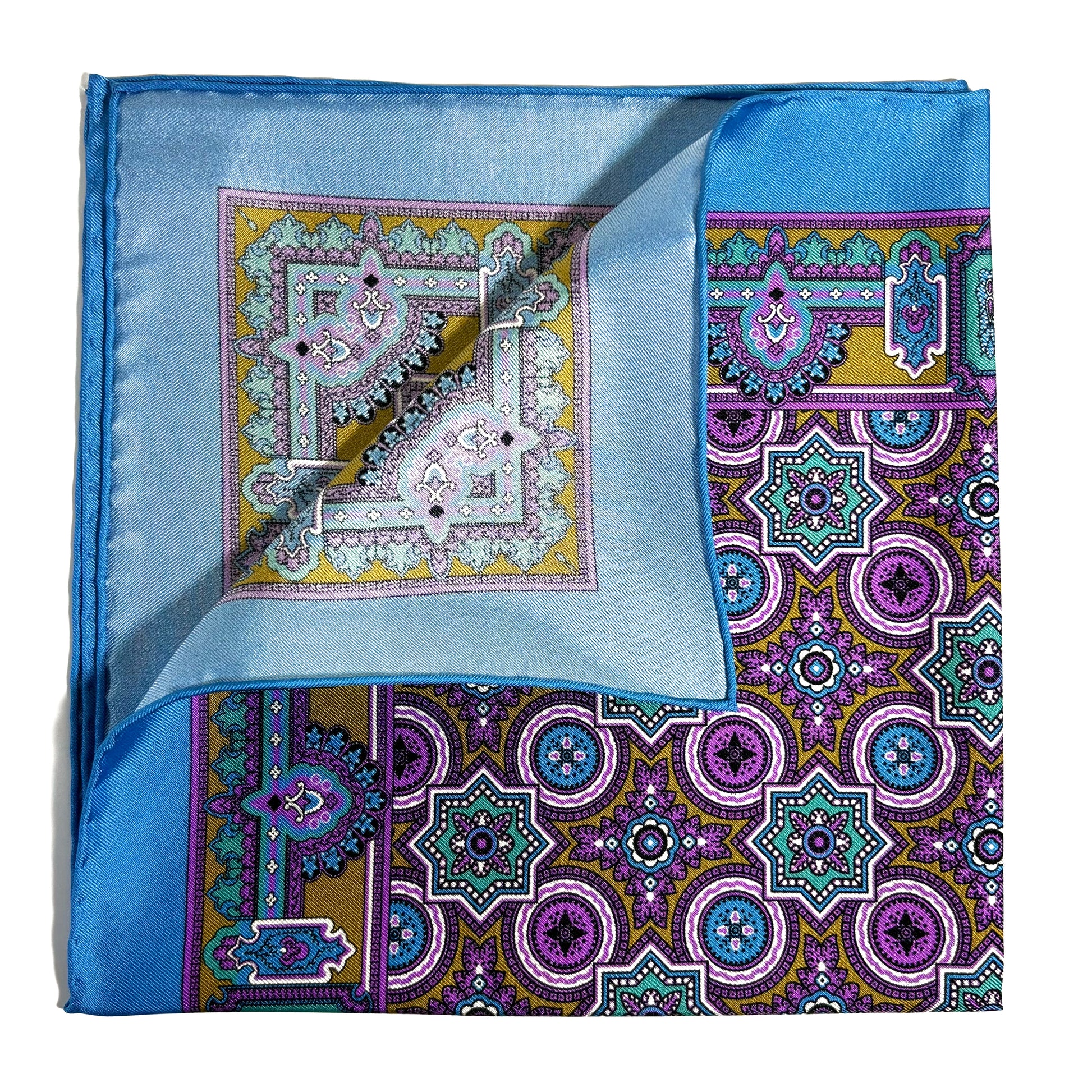 Crafted from 100% silk twill and handmade in England, this pocket square reflects the enduring legacy of British textile excellence. Produced in the historic town of Macclesfield—renowned for centuries of silk craftsmanship—each piece is hand-sewn with hand-rolled edges, offering refined structure and depth in every fold. Silk twill remains the gold standard for pocket squares, prized for its lightweight feel, rich dye absorption, and elegant sheen. The fabric is printed using a modern, eco-conscious method that delivers vibrant, double-sided color while minimizing waste. Measuring 16 inches across, this square is carefully sized to stay in place throughout the day, no matter how it's folded. An understated staple of timeless menswear, made with precision and purpose. |