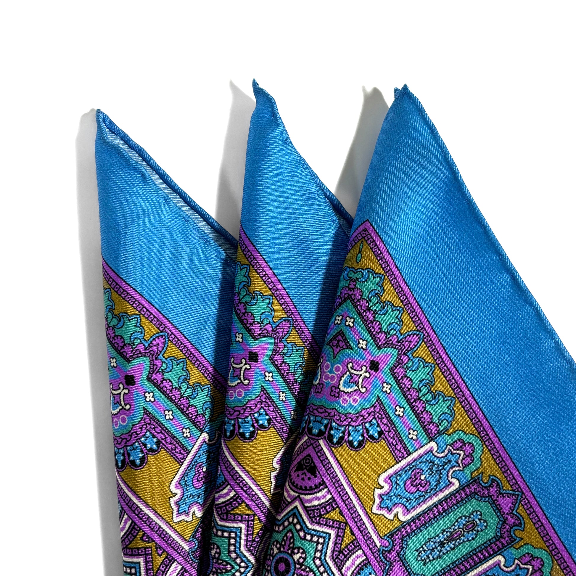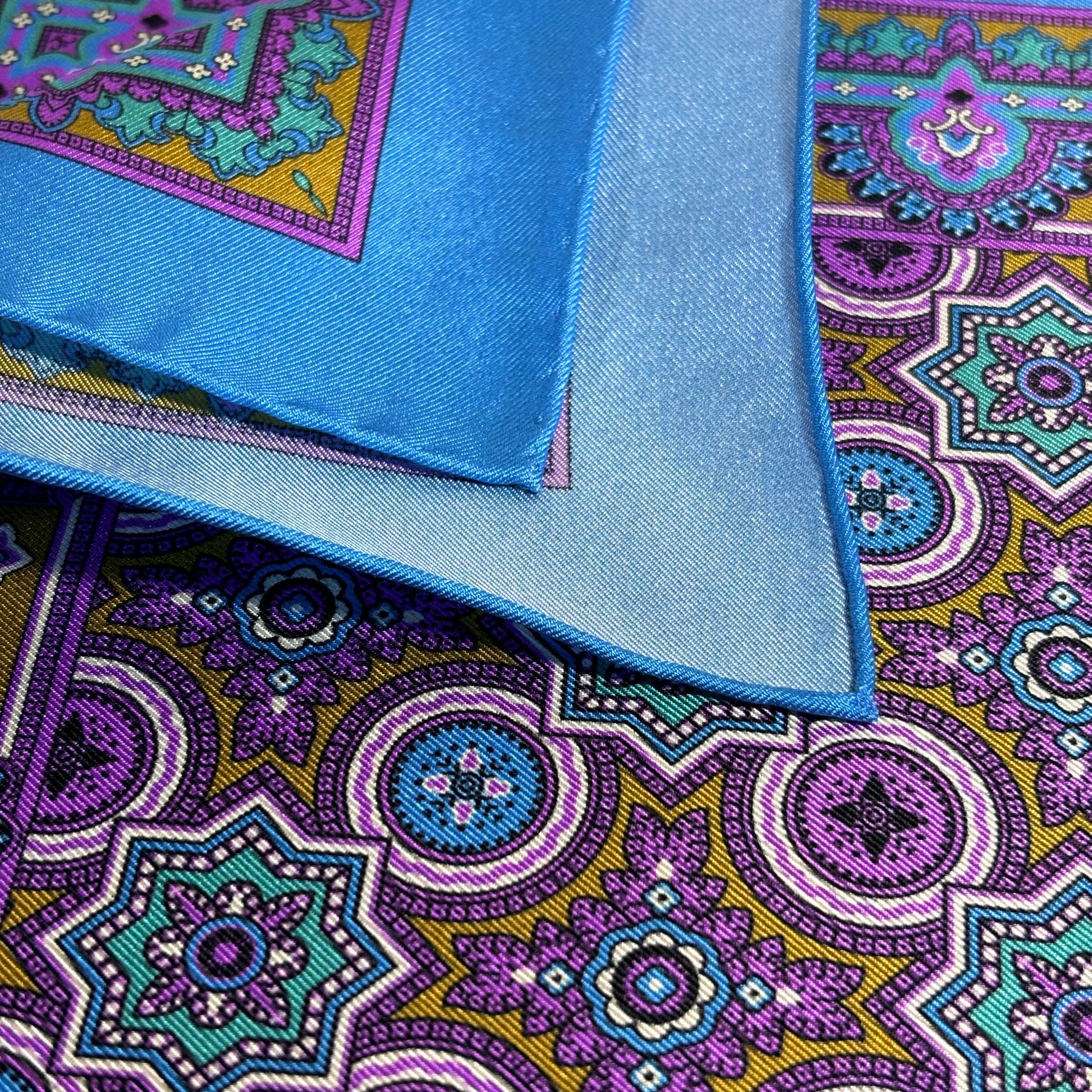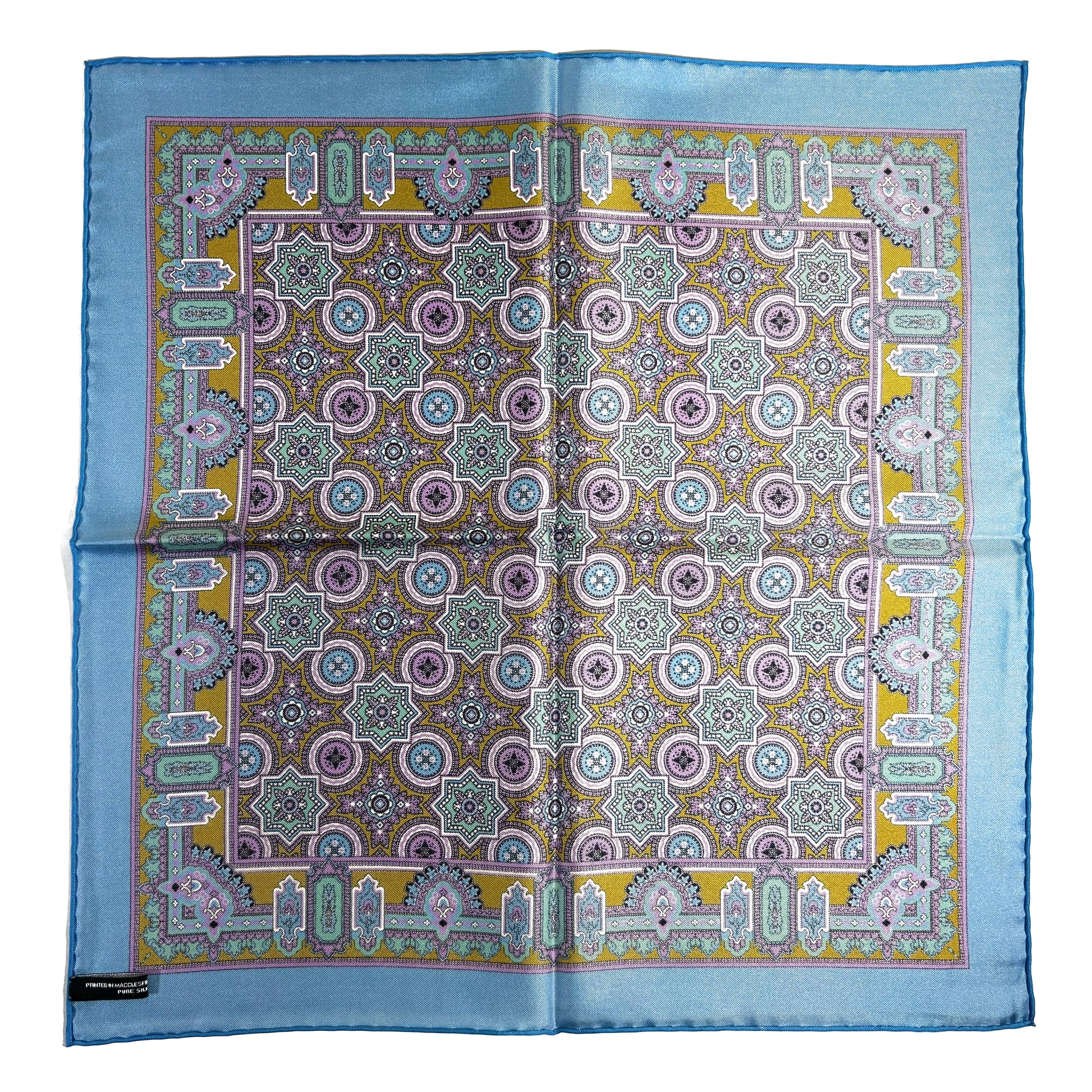 Crafted from 100% silk twill and handmade in England, this pocket square reflects the enduring legacy of British textile excellence. Produced in the historic town of Macclesfield—renowned for centuries of silk craftsmanship—each piece is hand-sewn with hand-rolled edges, offering refined structure and depth in every fold. Silk twill remains the gold standard for pocket squares, prized for its lightweight feel, rich dye absorption, and elegant sheen. The fabric is printed using a modern, eco-conscious method that delivers vibrant, double-sided color while minimizing waste. Measuring 16 inches across, this square is carefully sized to stay in place throughout the day, no matter how it's folded. An understated staple of timeless menswear, made with precision and purpose. |