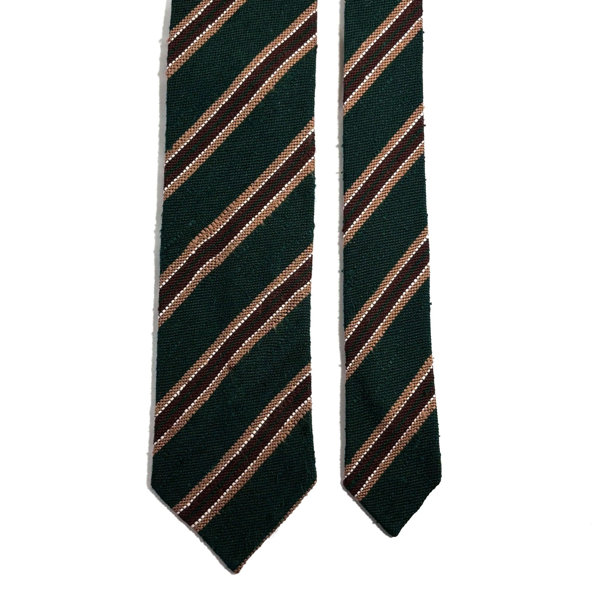 Luxury Forest Green Stripe Untipped Silk Shantung Tie
