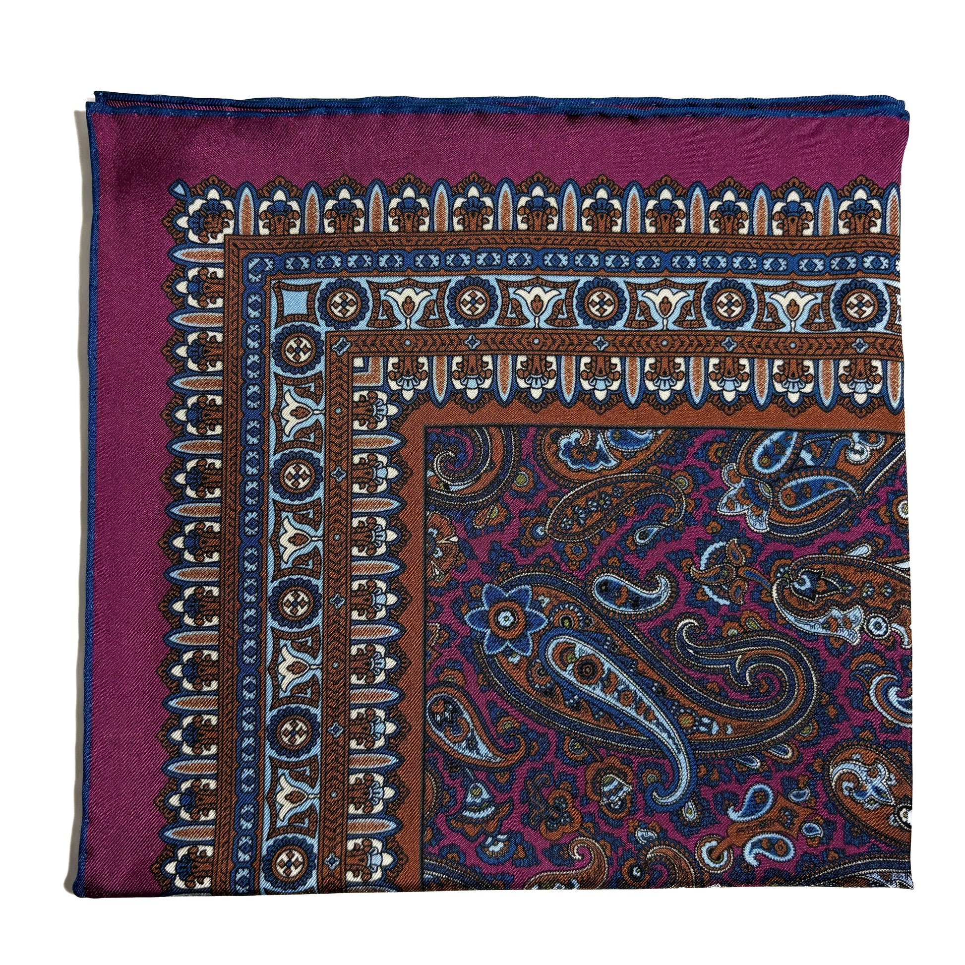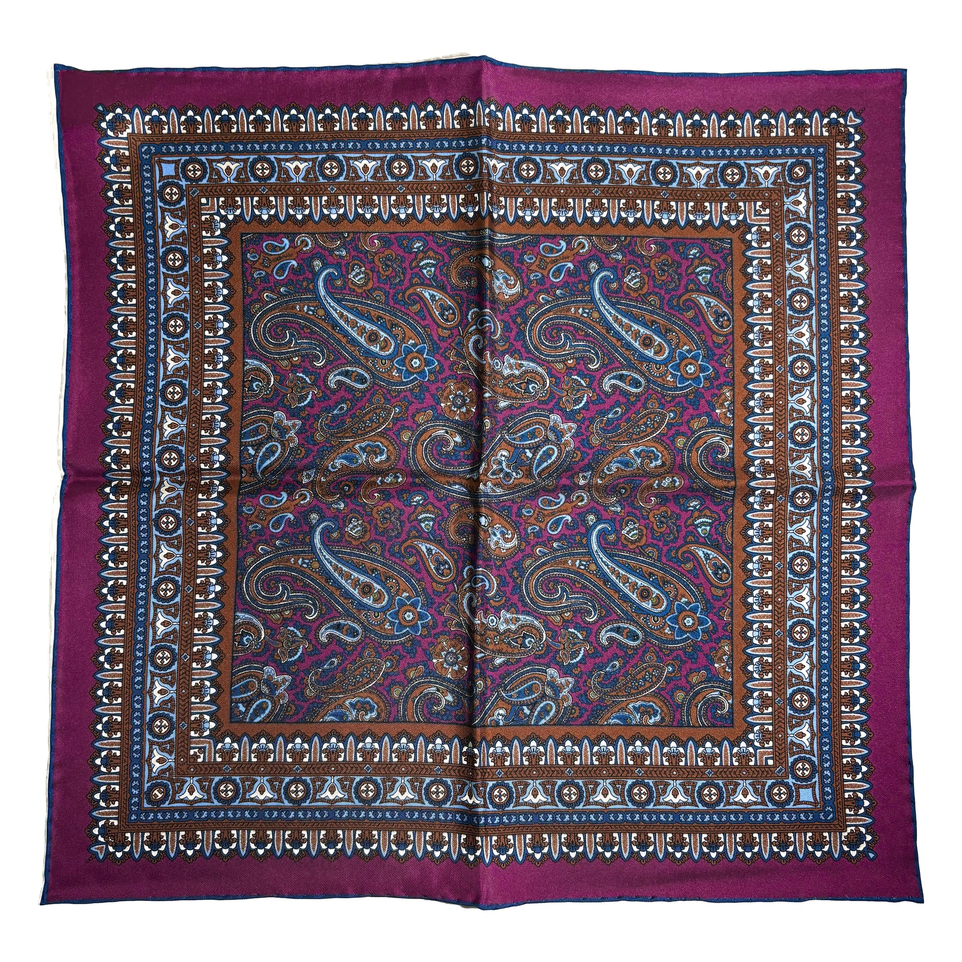 Magenta & Navy Blue Paisley Silk Pocket Square