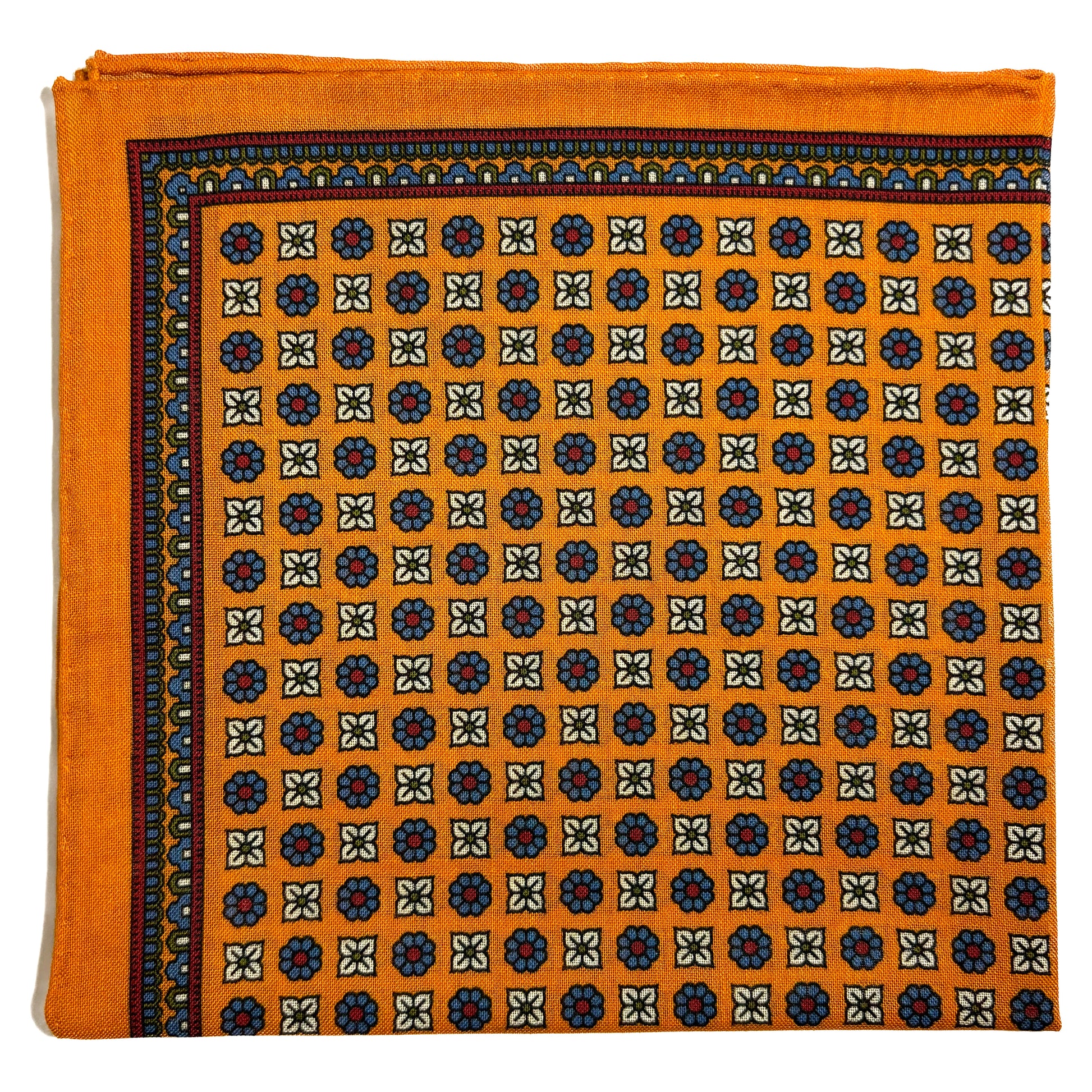Wool/Silk pocket squares possess unique characteristics, making them one of the best fabrics for squares. They absorb dyes far better than silk, creating deep and saturated prints. The fabric features a lightweight open weave that is somewhat translucent. The wool mix gives the square its matte appearance and soft feel, while the silk adds a mild sheen and better drape.