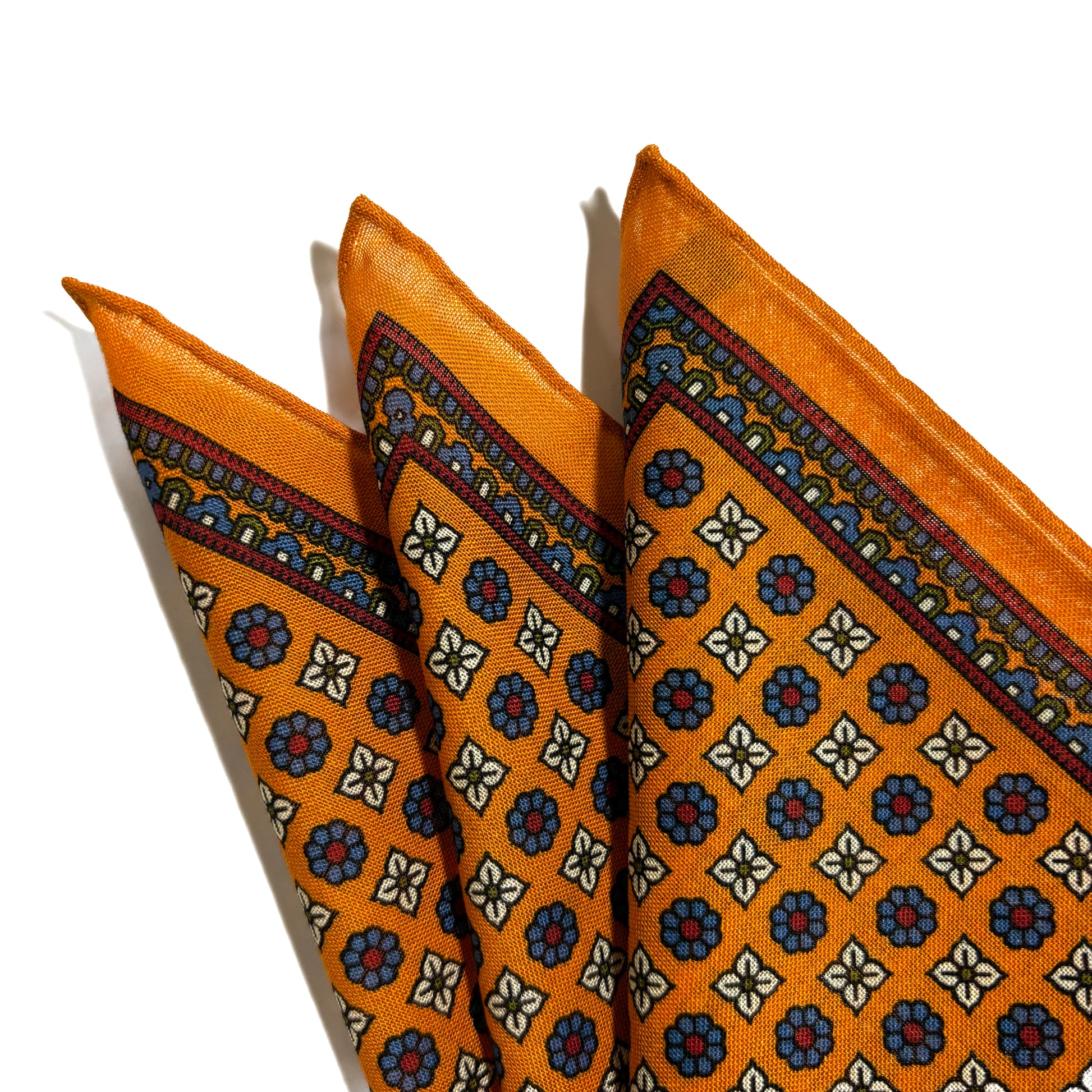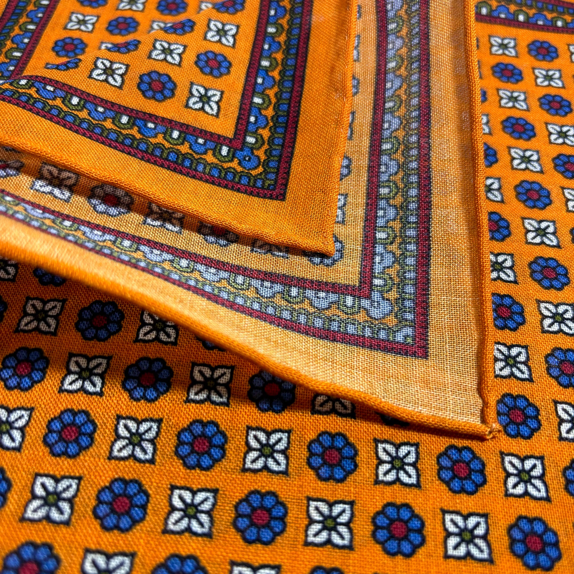 Mustard Yellow - Floral - Wool/Silk Pocket Square