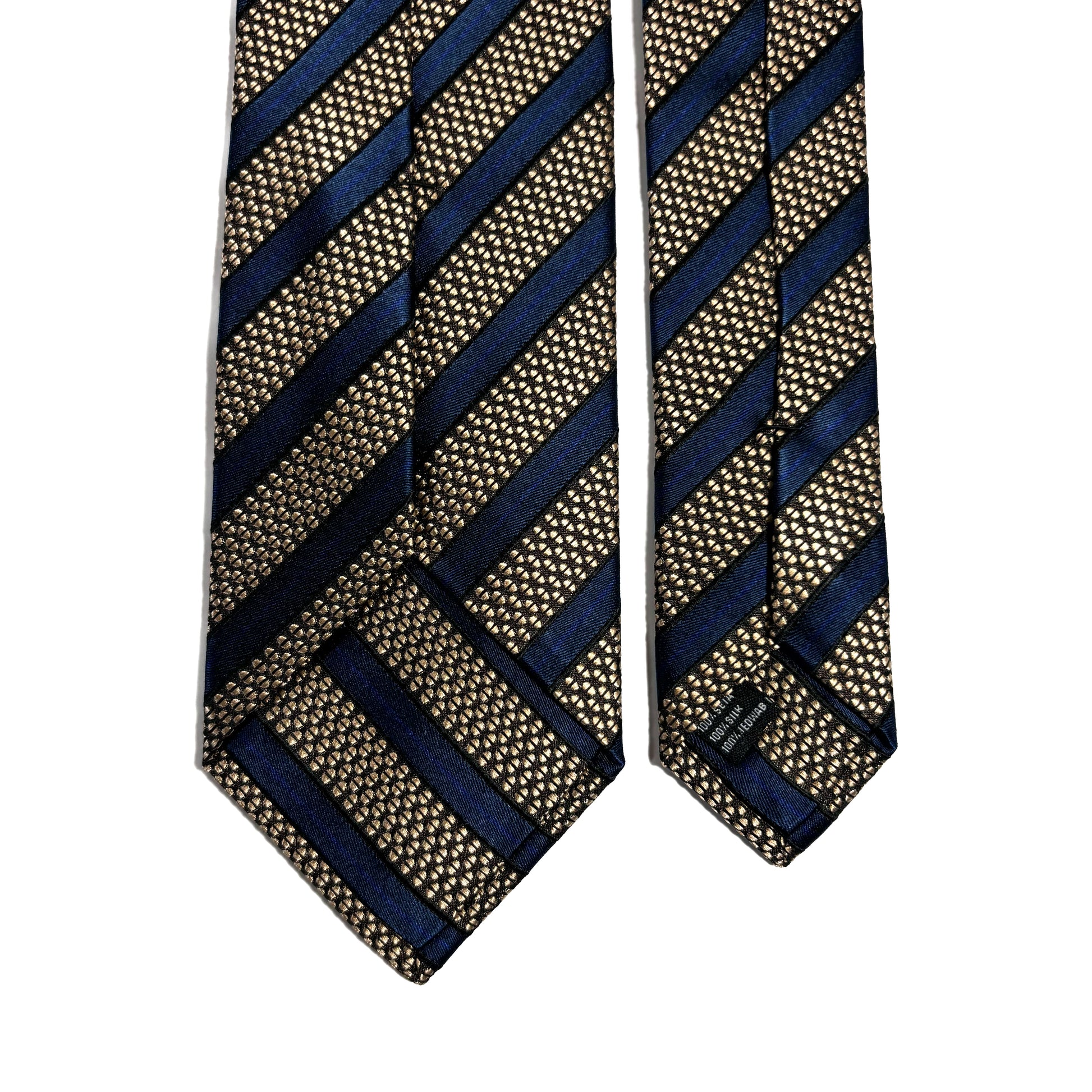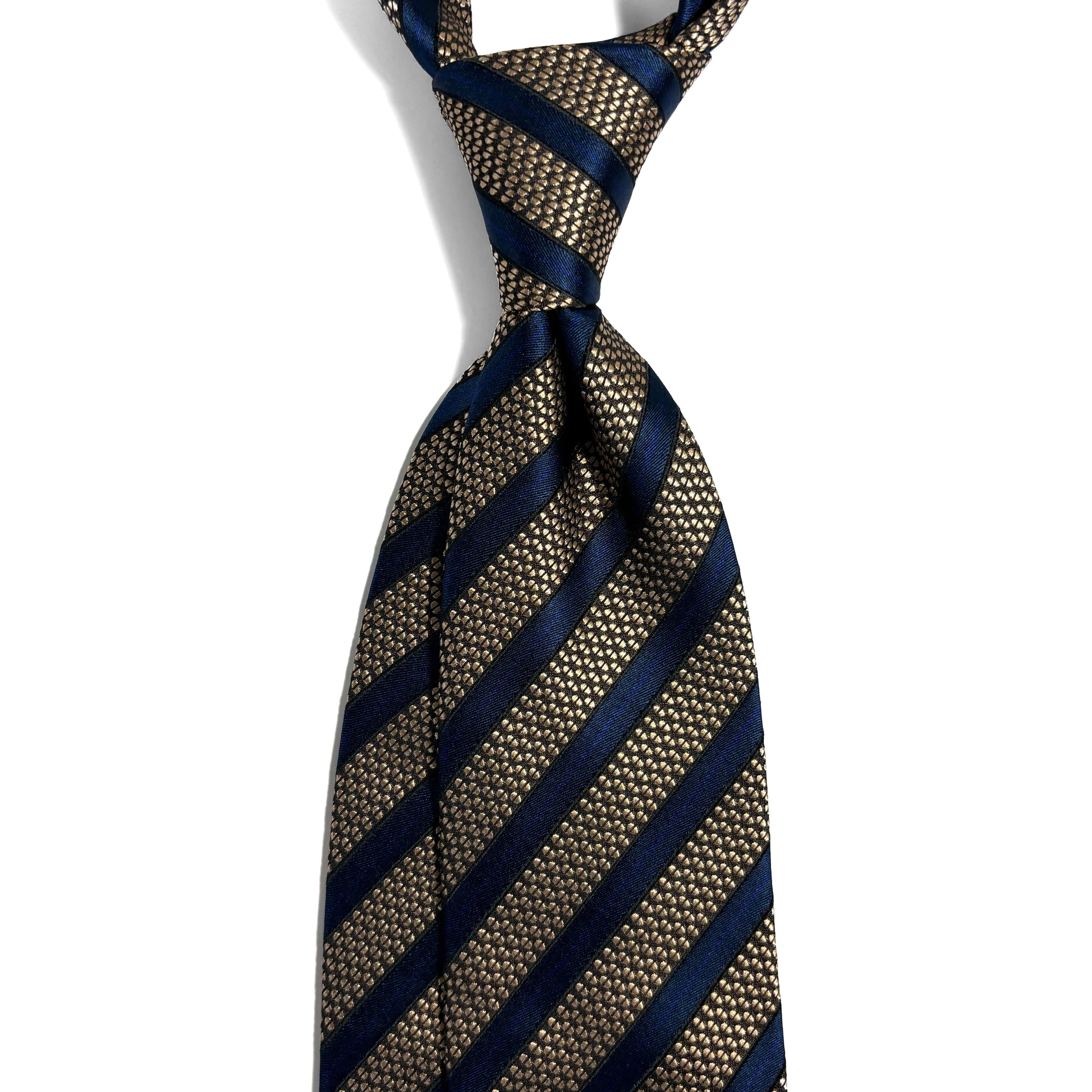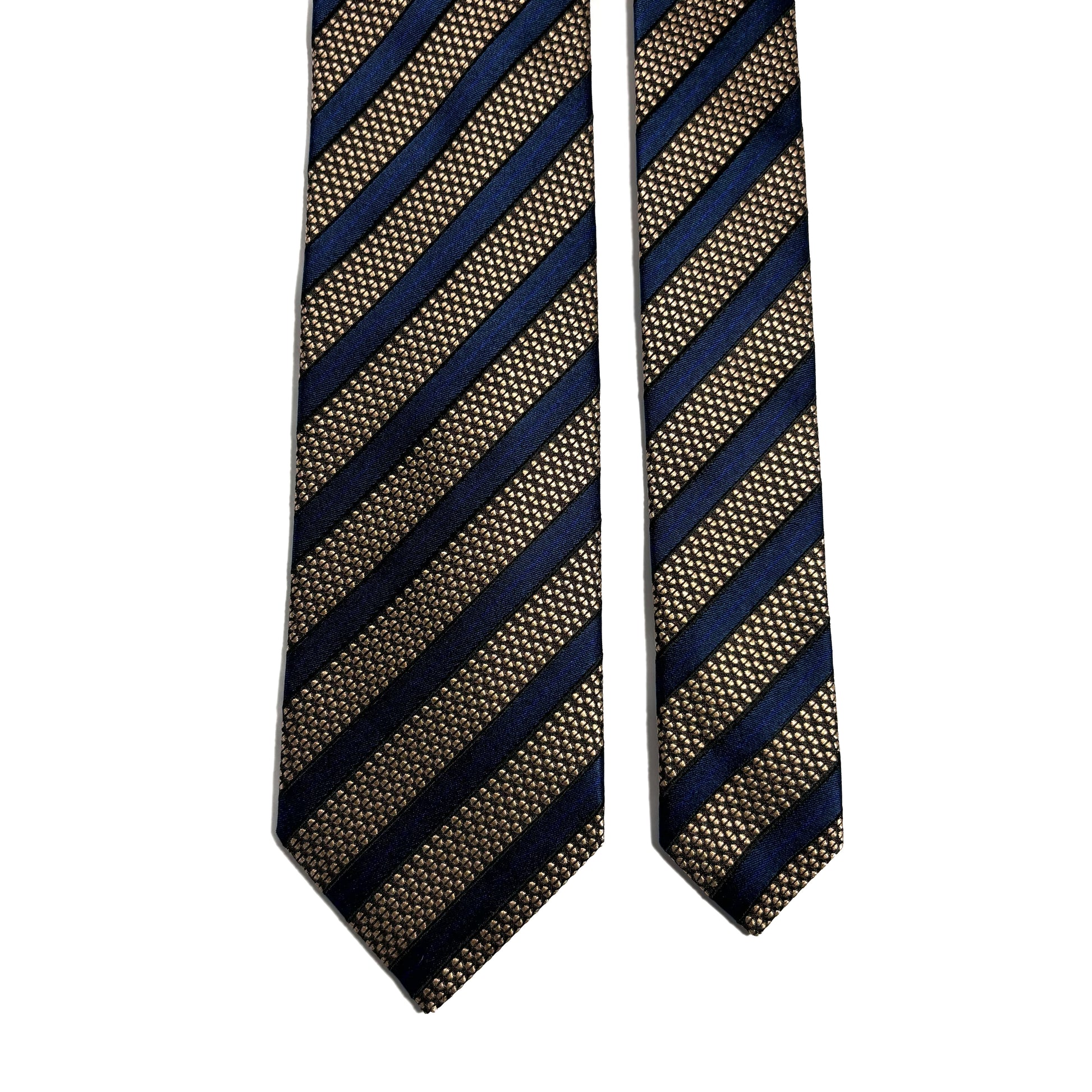 Navy Blue & Brass Striped Silk Jacquard Tie