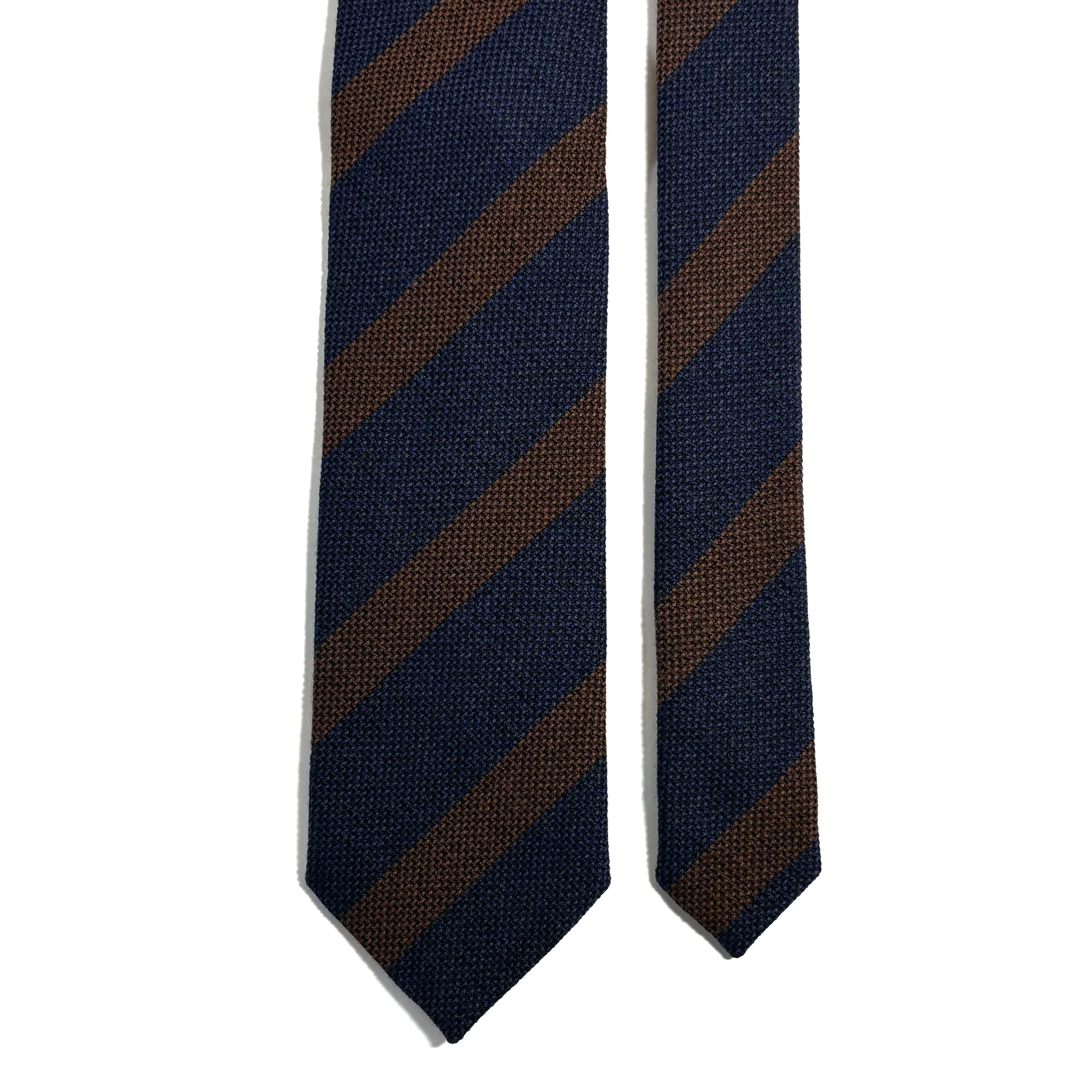 Navy Blue & Brown Striped Wool/Silk Grenadine Tie