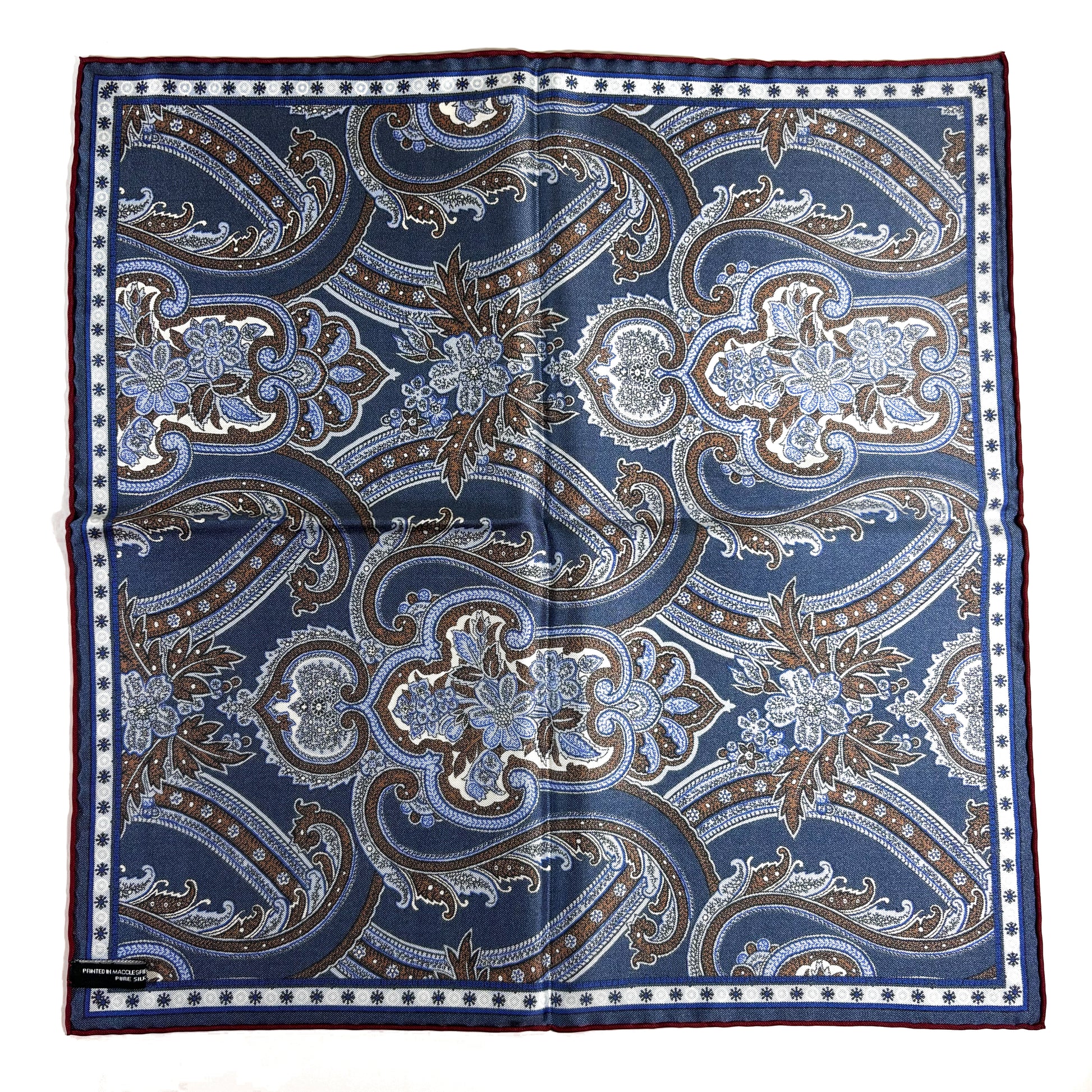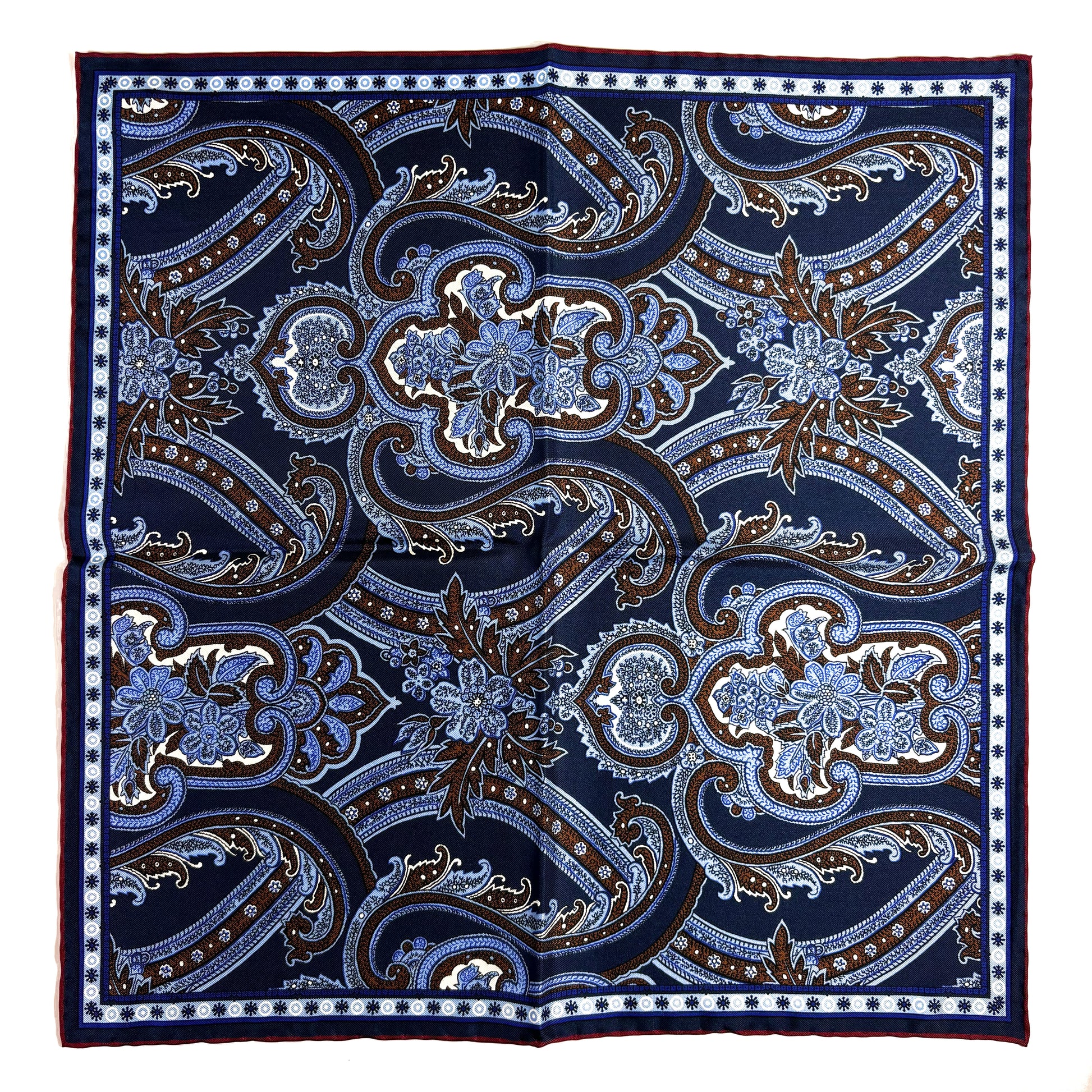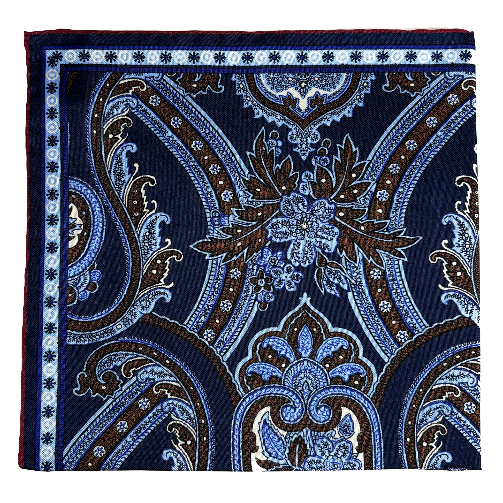 Navy Blue & Burgundy Floral Paisley Silk Pocket Square
