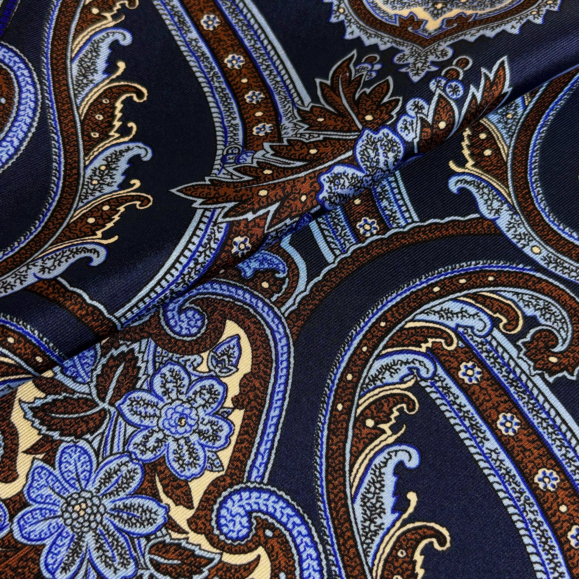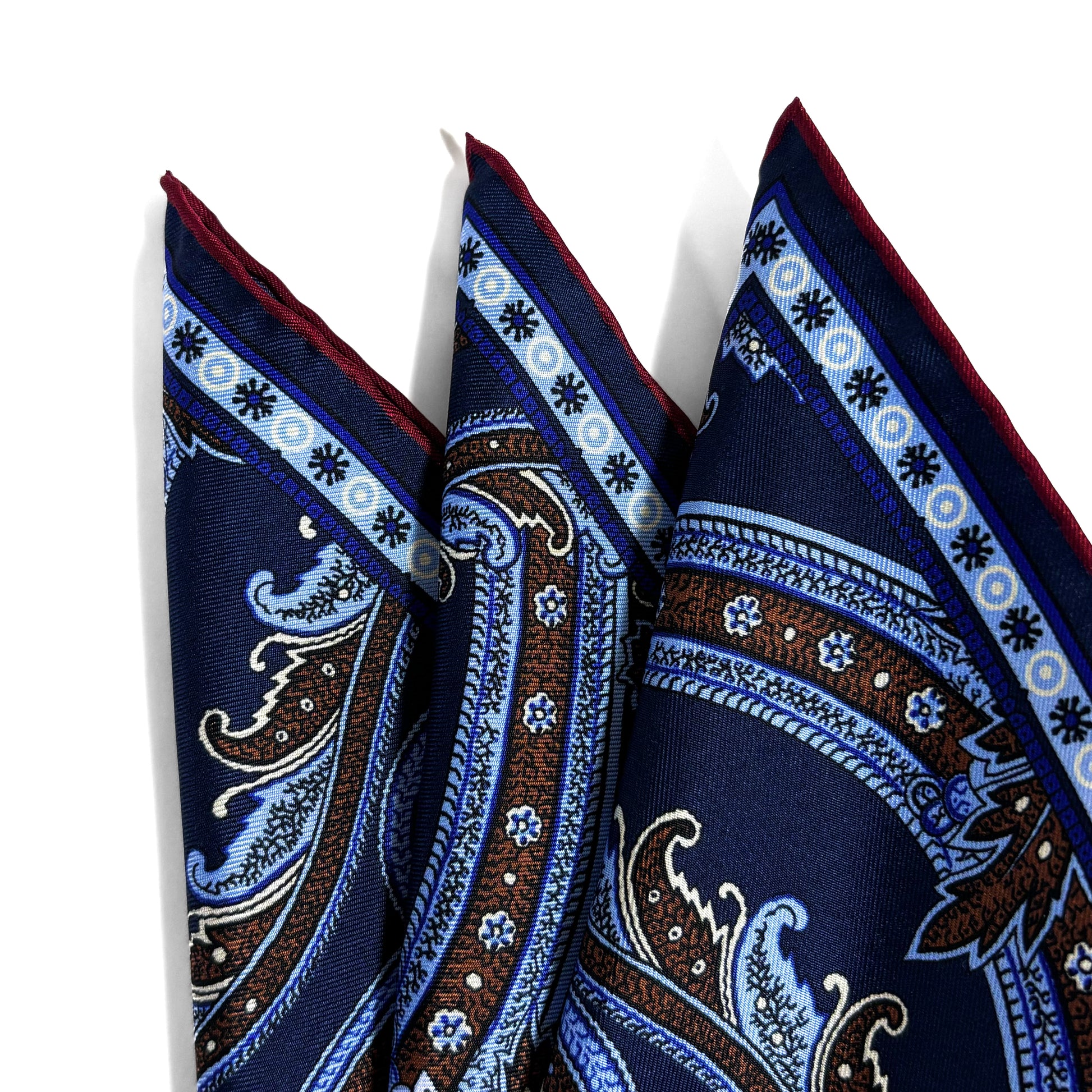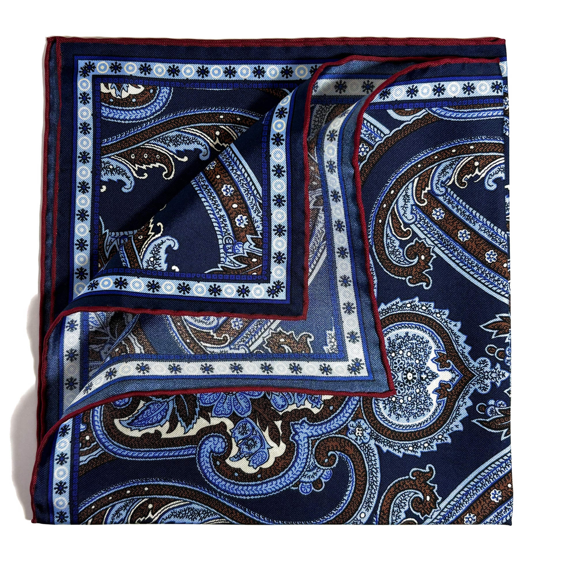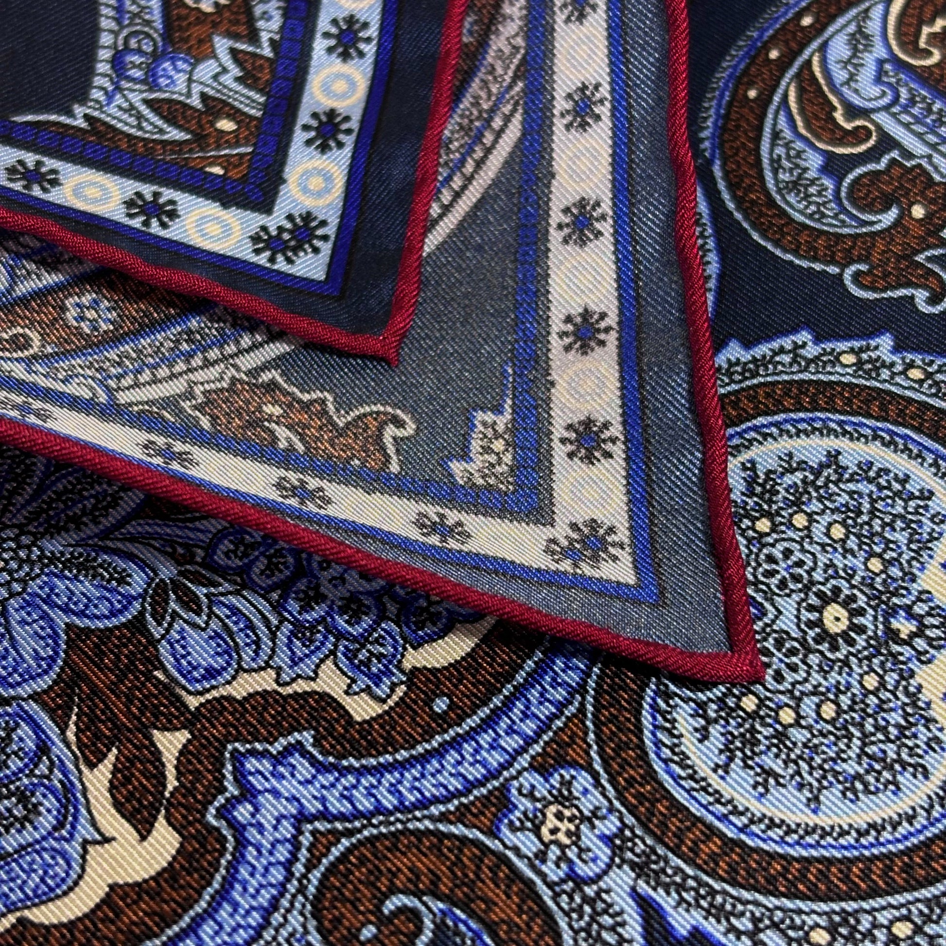 Navy Blue & Burgundy Floral Paisley Silk Pocket Square
