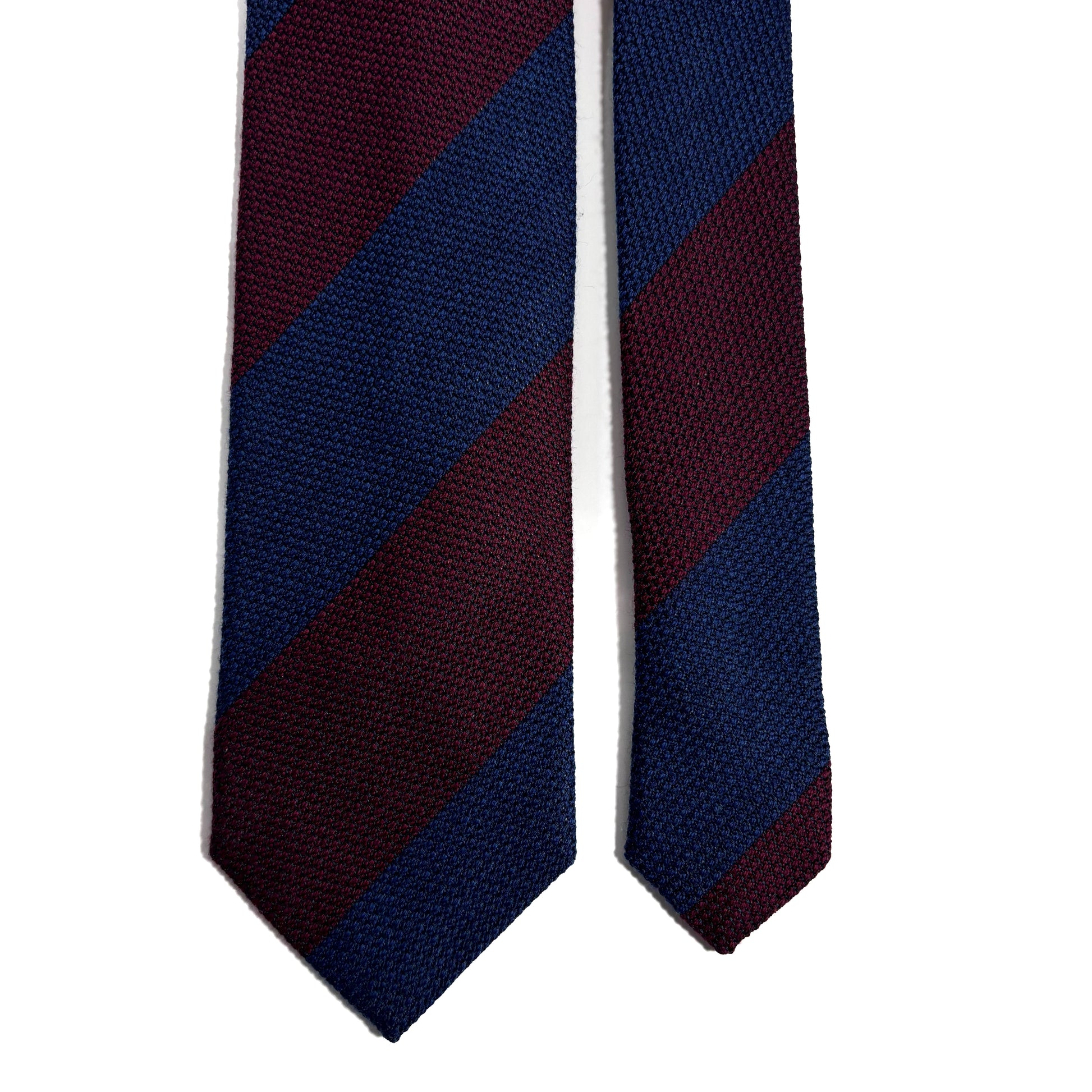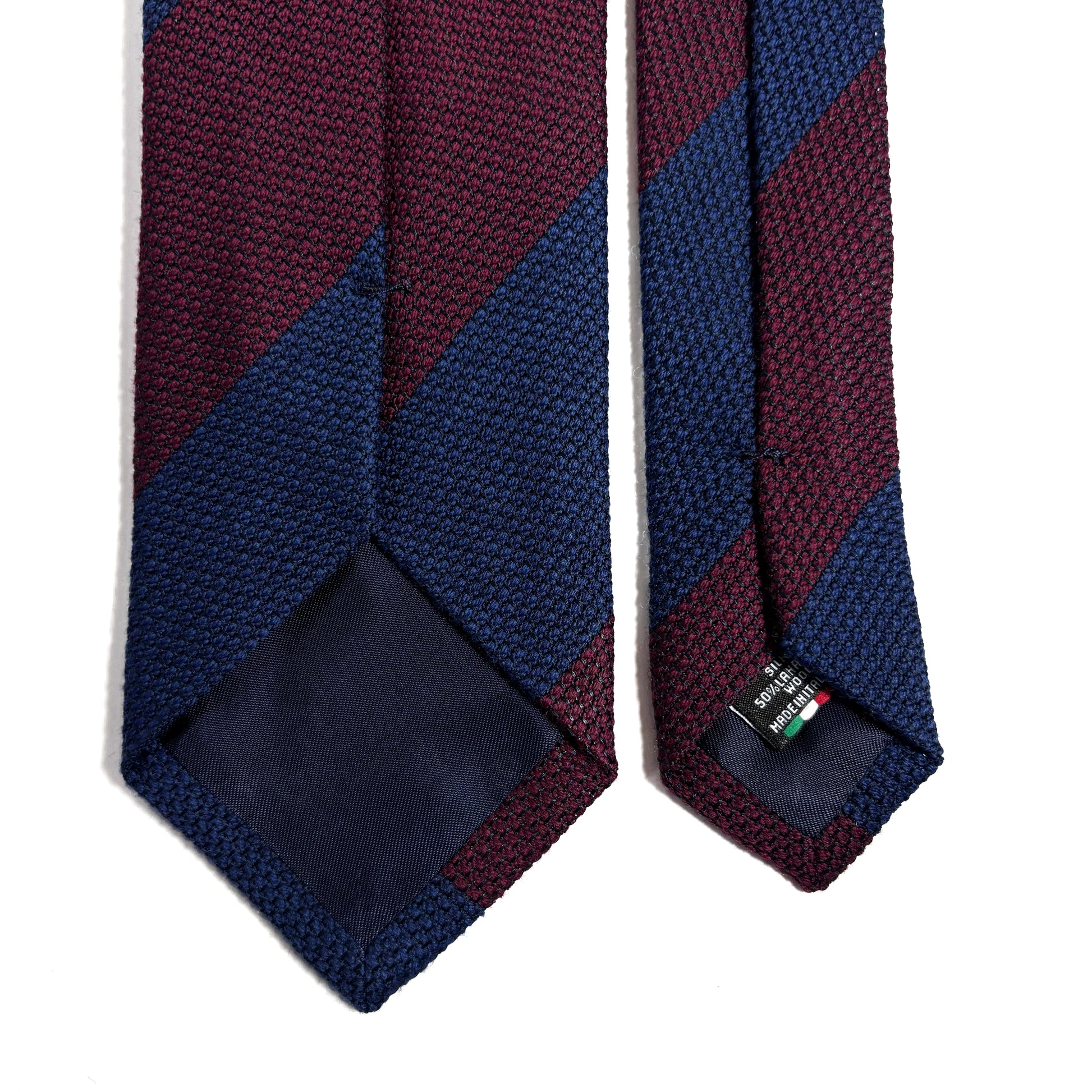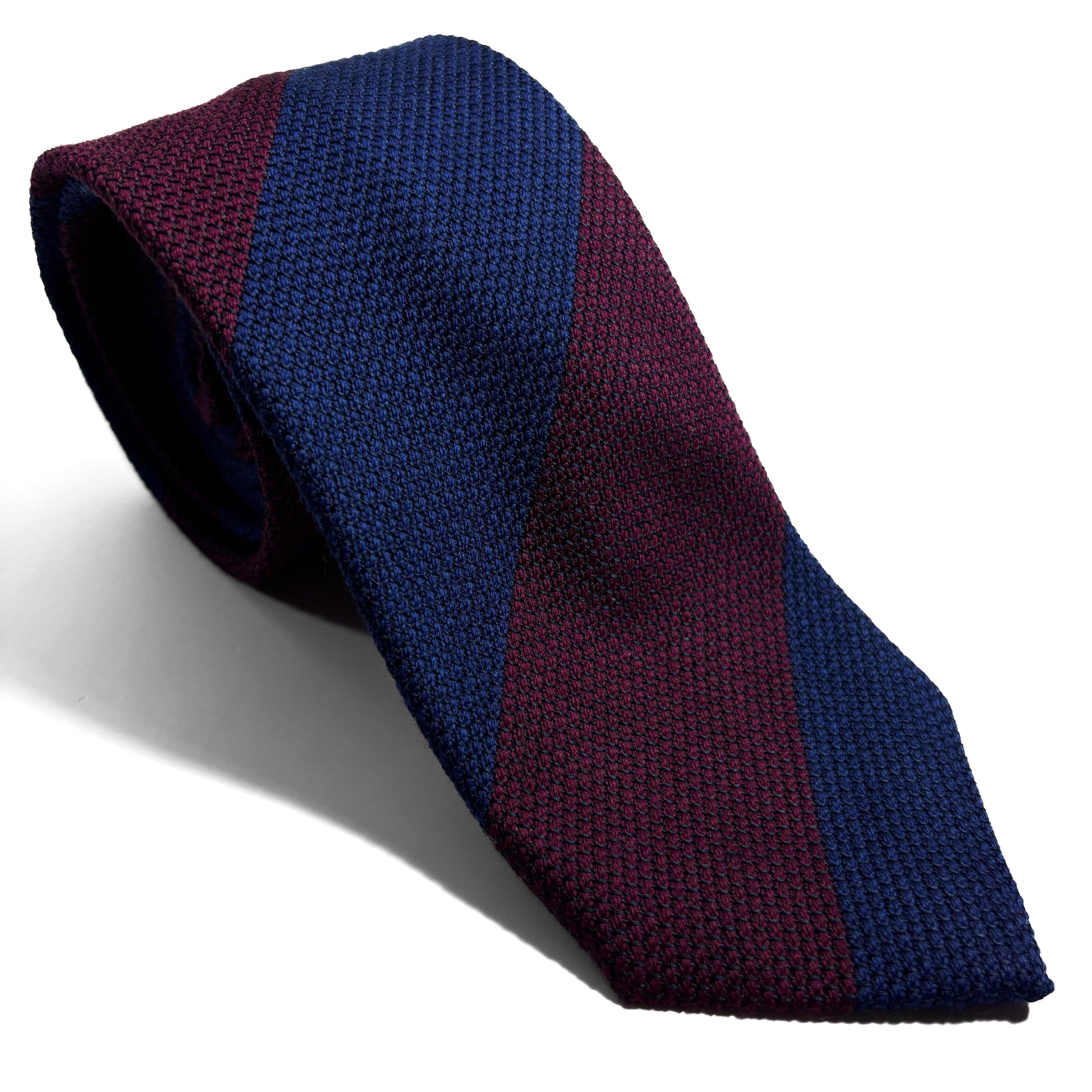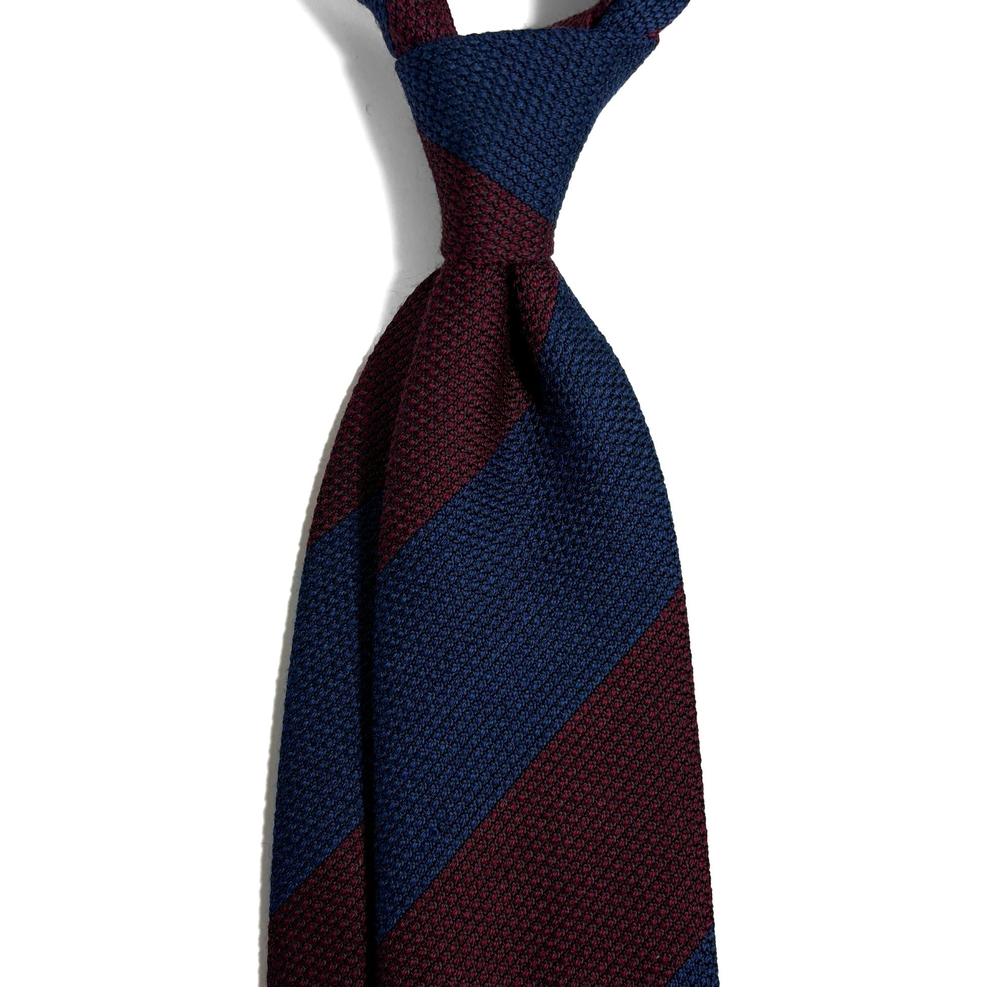 Navy Blue & Burgundy Striped Wool/Silk Grenadine Tie (Garza Fina)