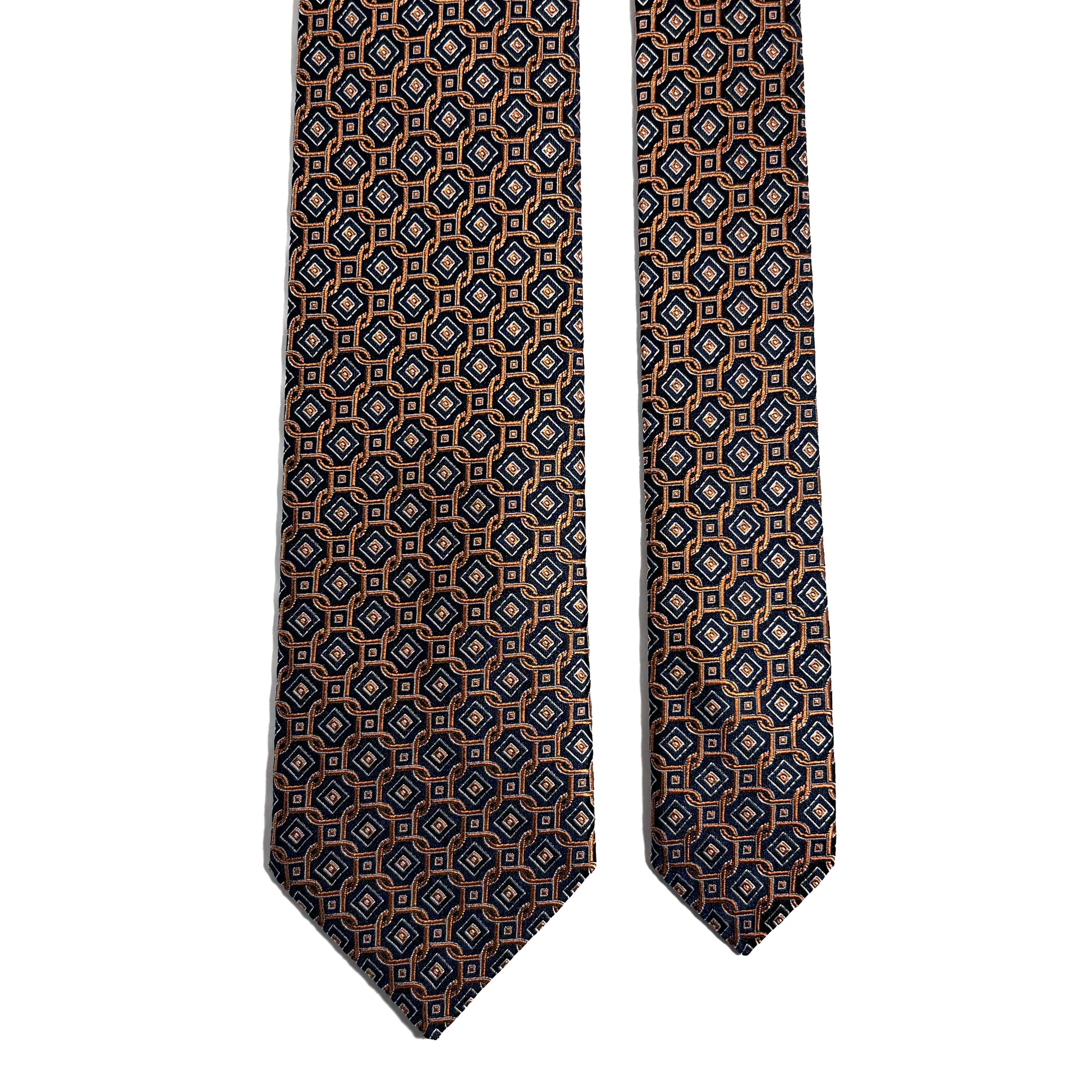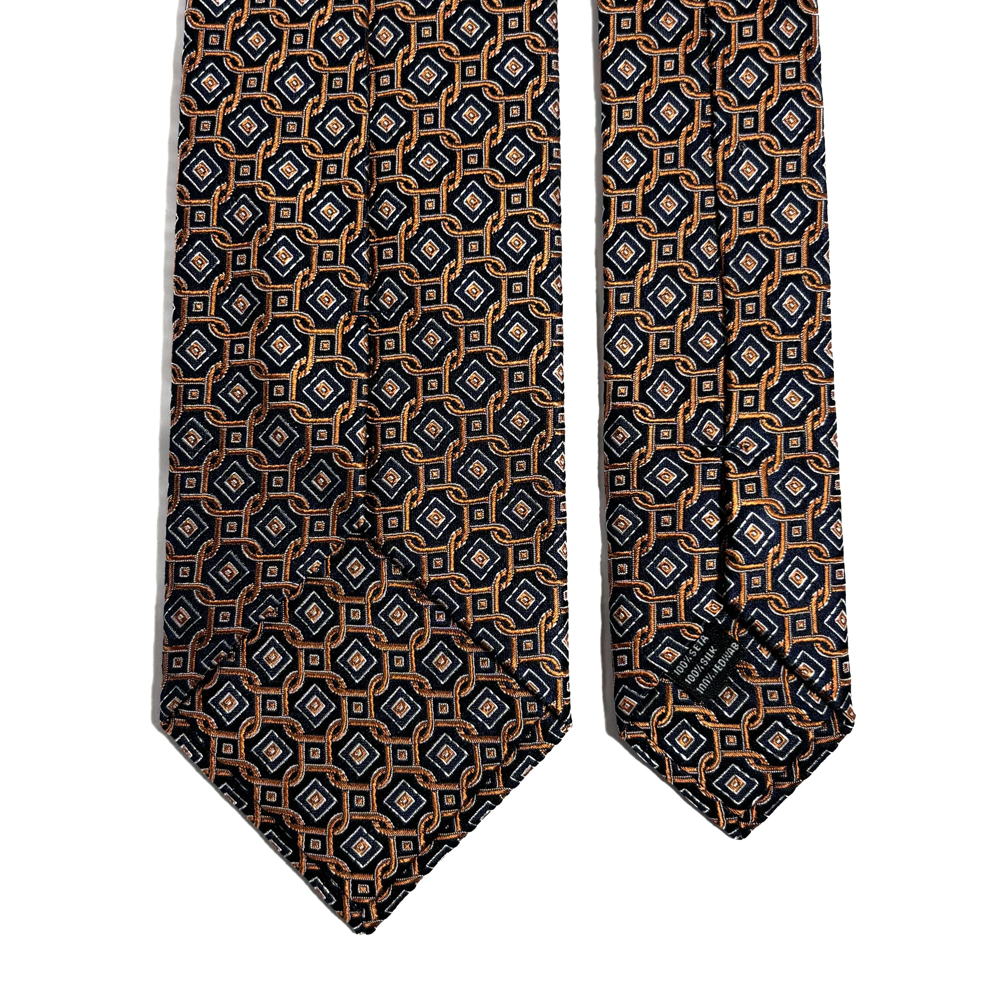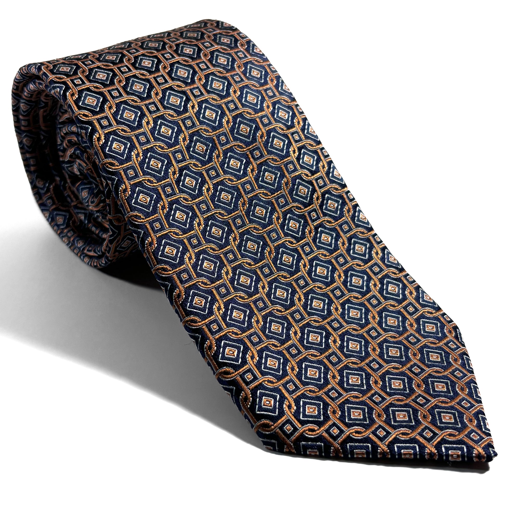 Navy Blue & Gold Geometric Silk Jacquard Tie