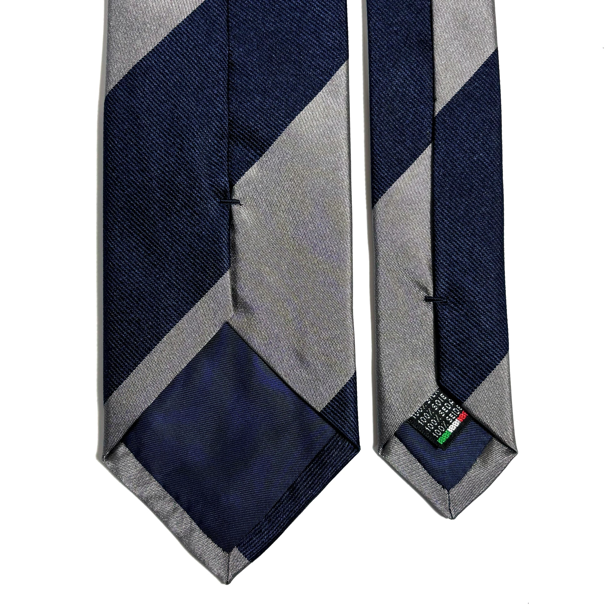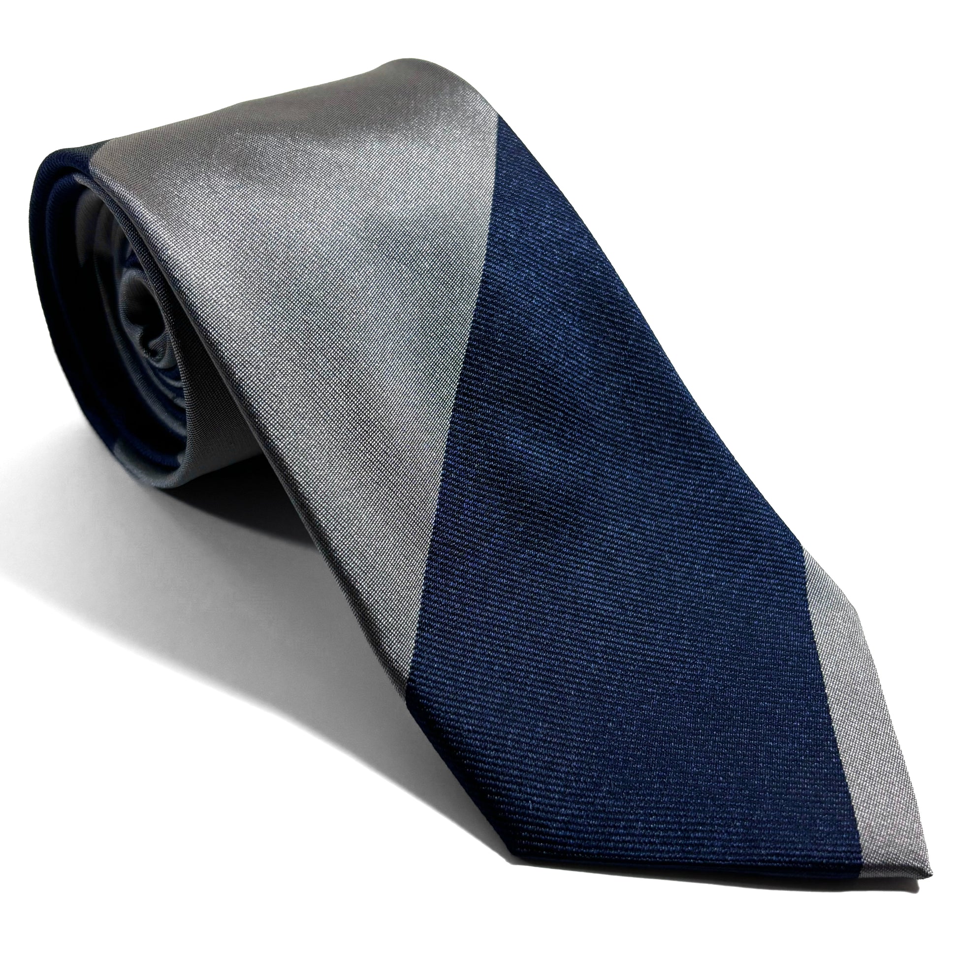 Navy Blue & Gray Block Striped Silk Repp Tie