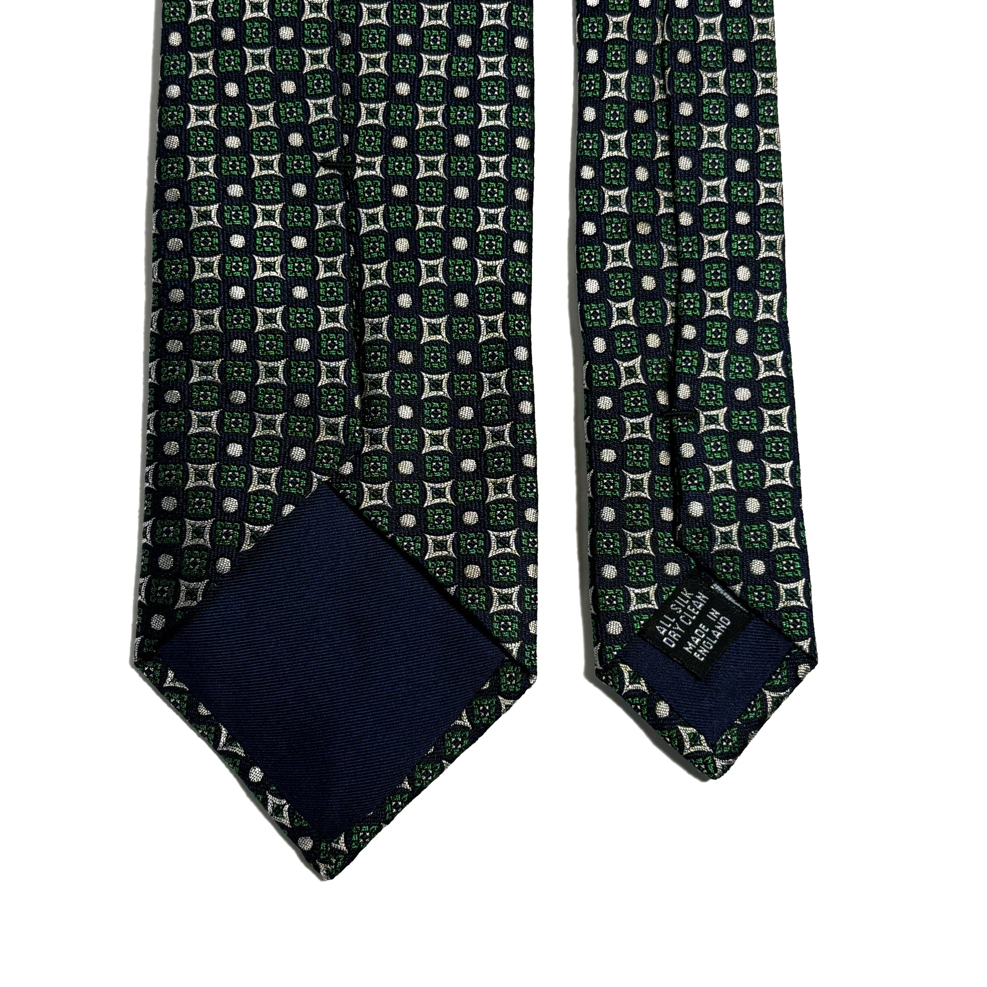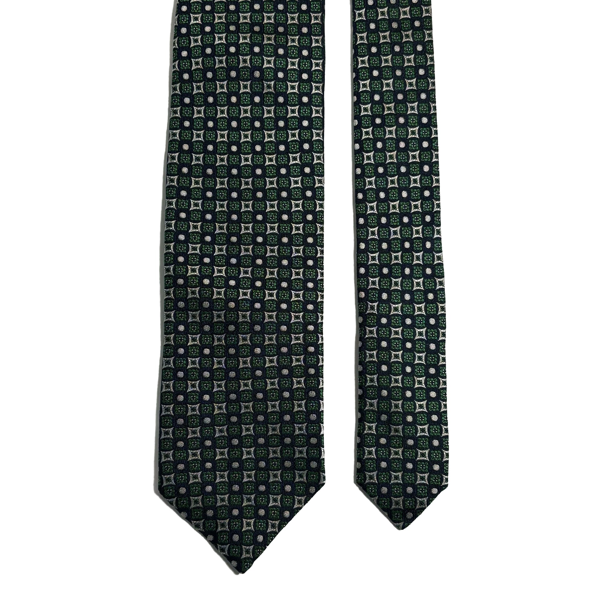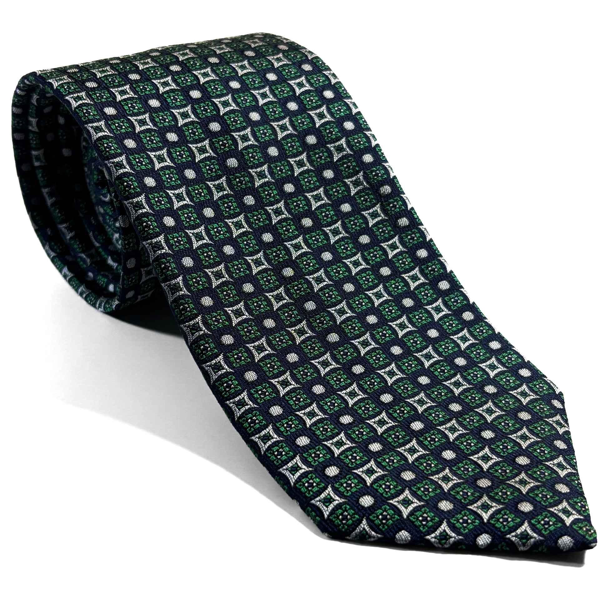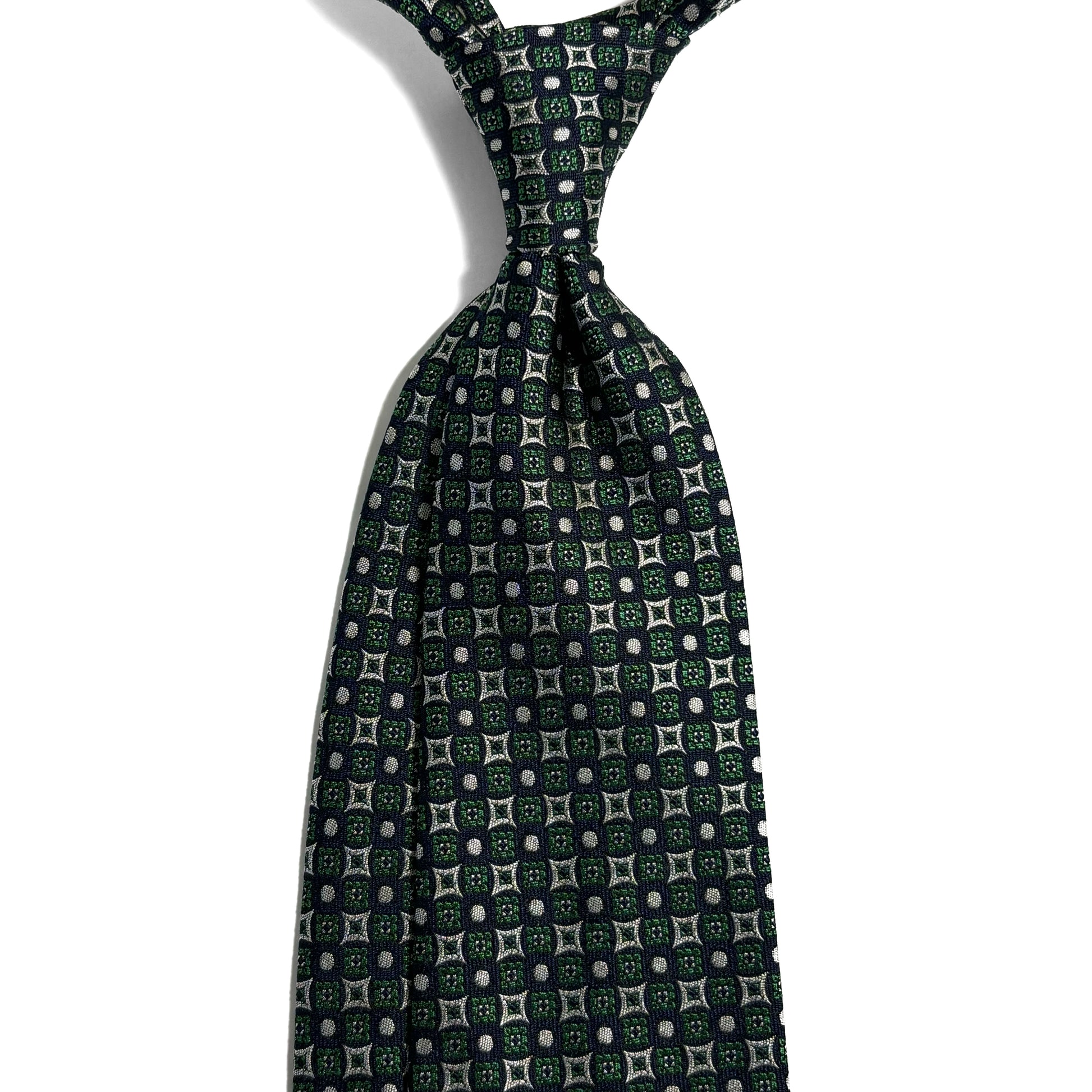 Navy Blue & Green Geometric Jacquard Silk Tie