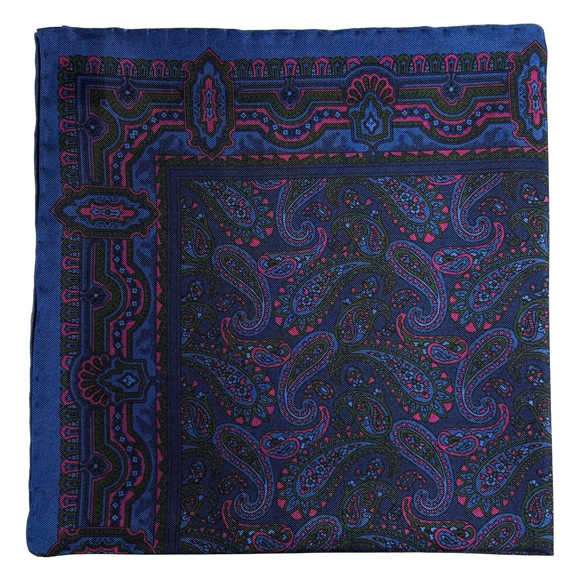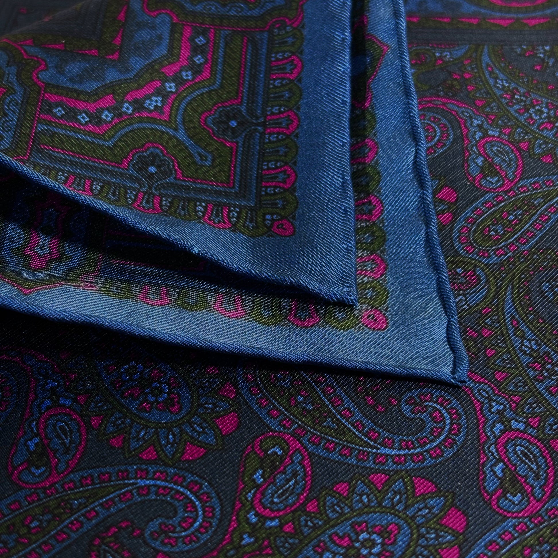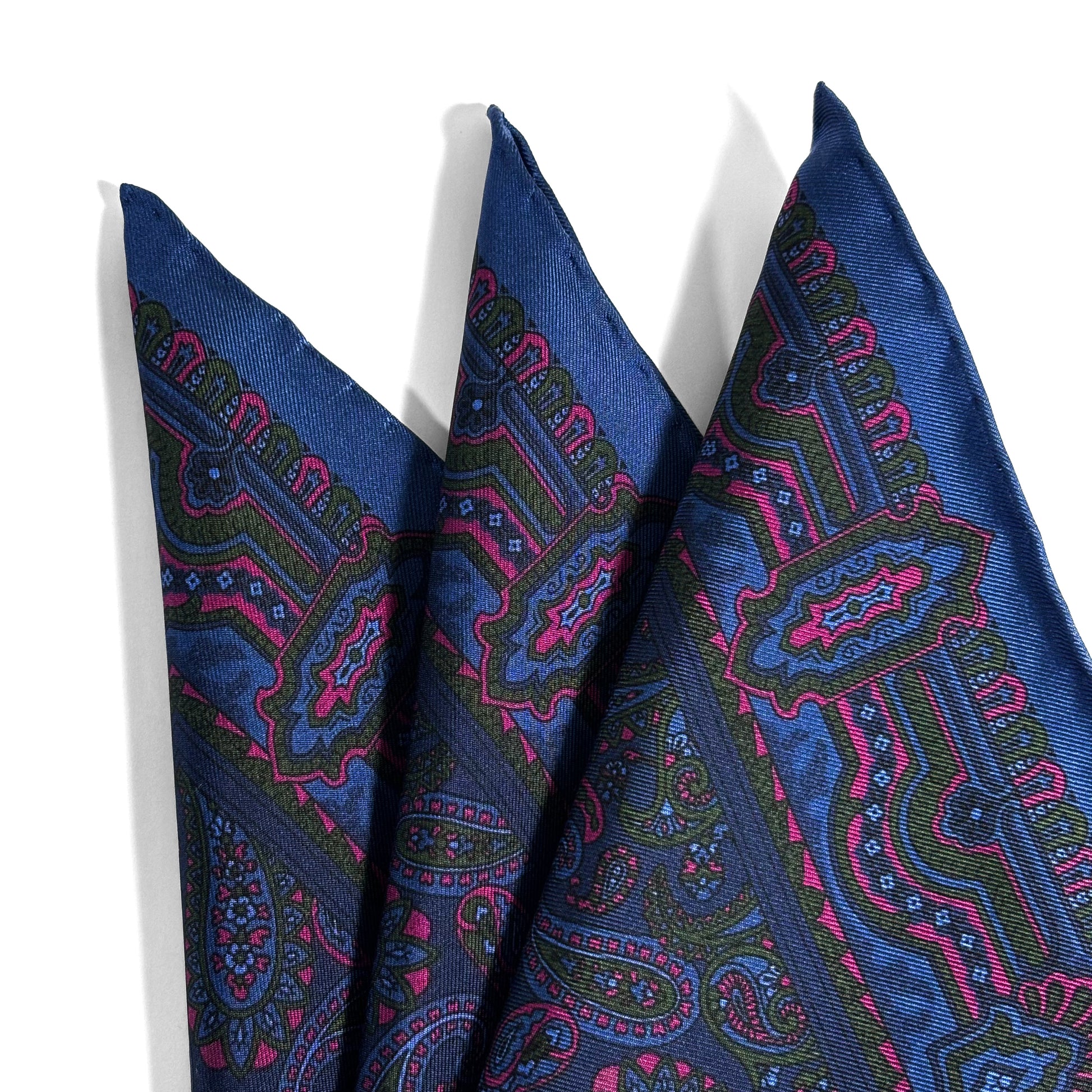 Navy Blue & Pink Paisley Ancient Madder Silk Pocket Square