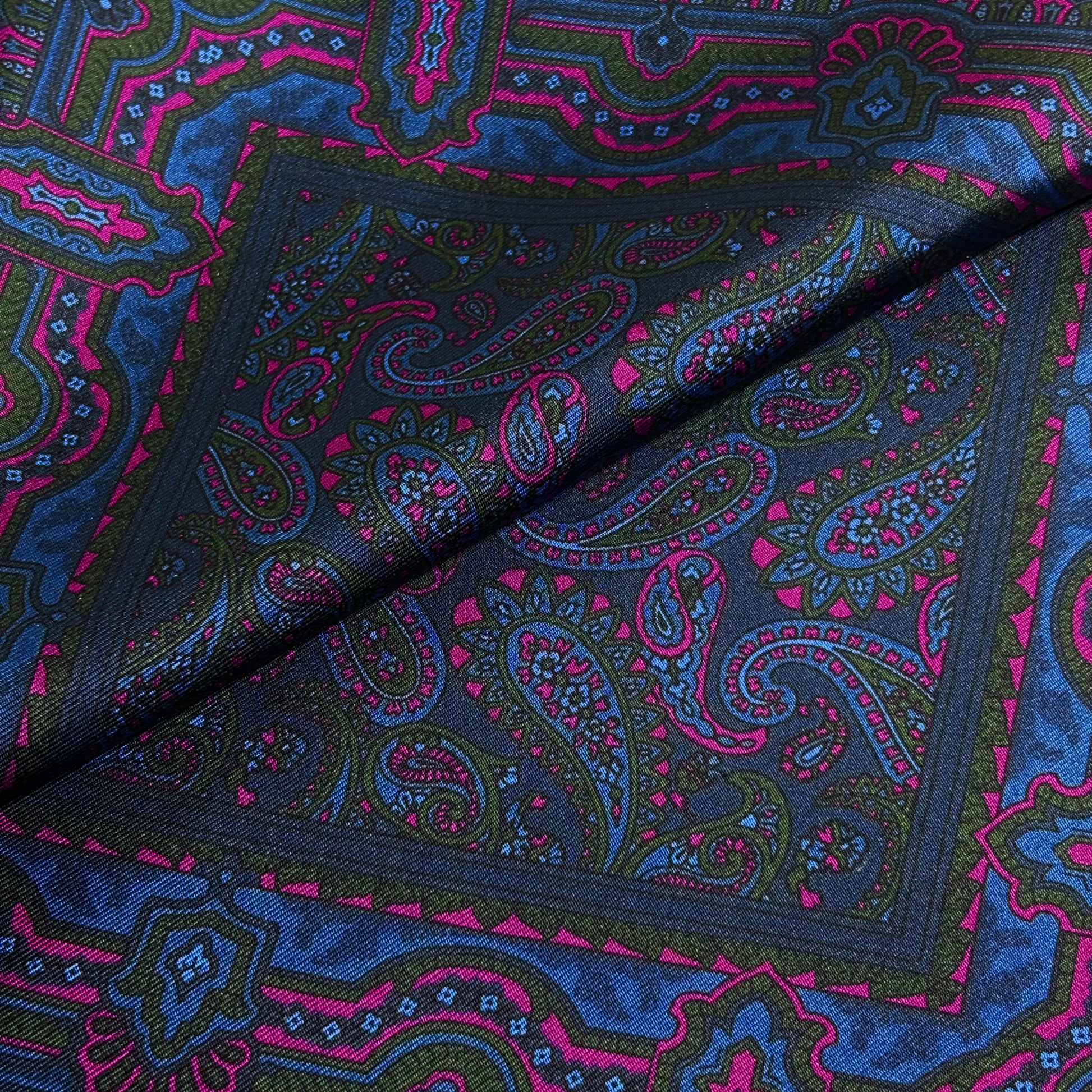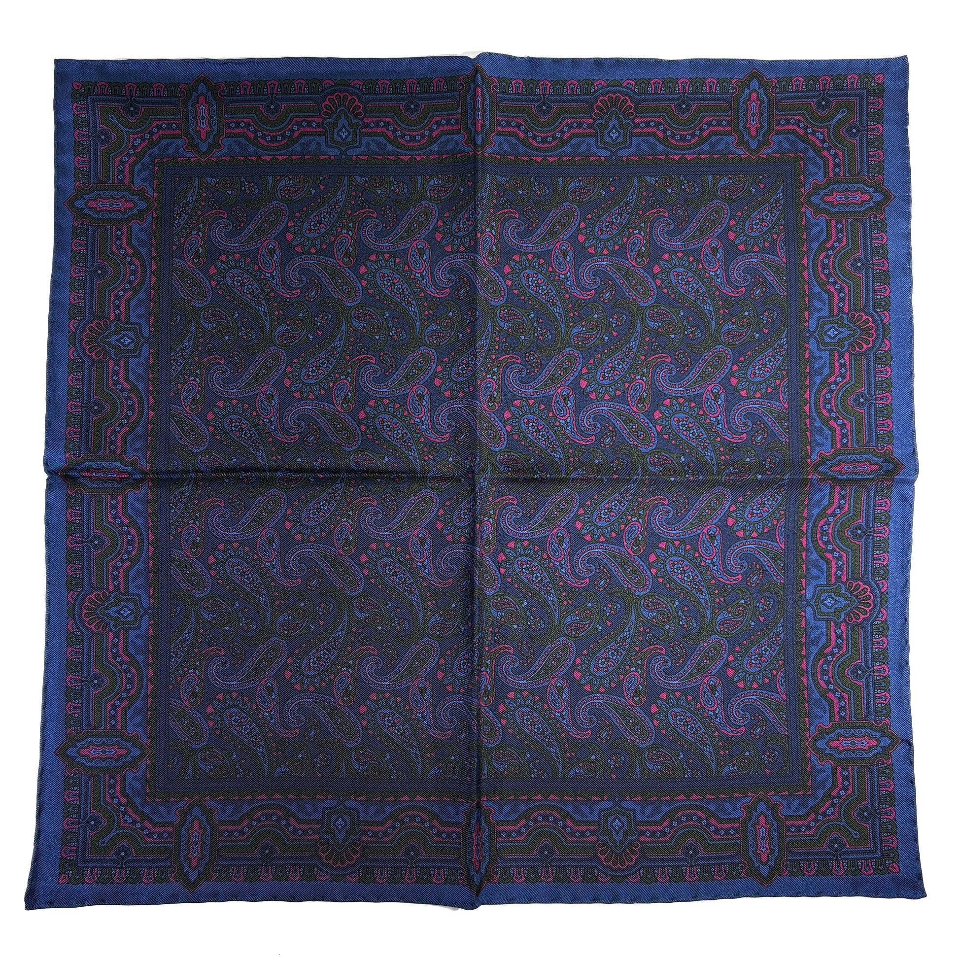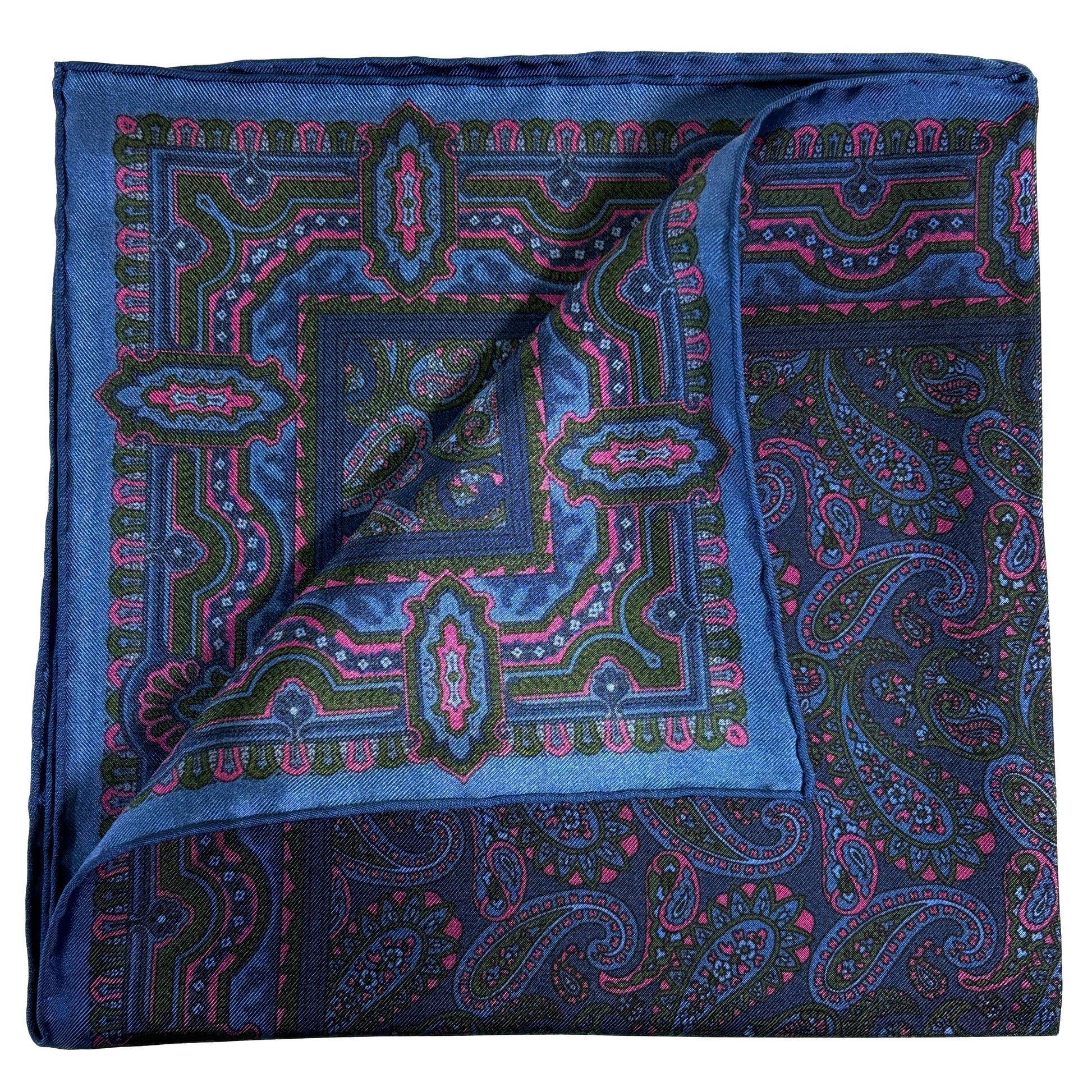 Navy Blue & Pink Paisley Ancient Madder Silk Pocket Square