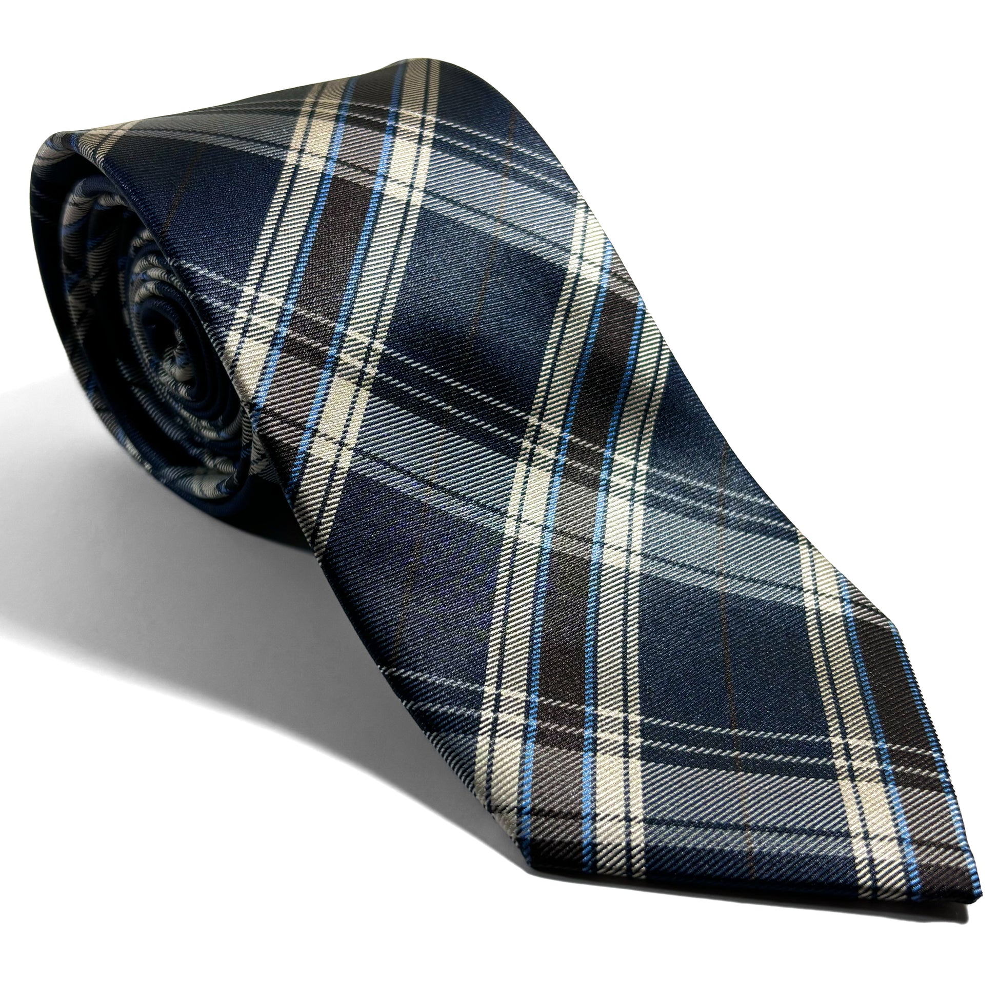 Navy Blue Plaid Silk Jacquard Tie
