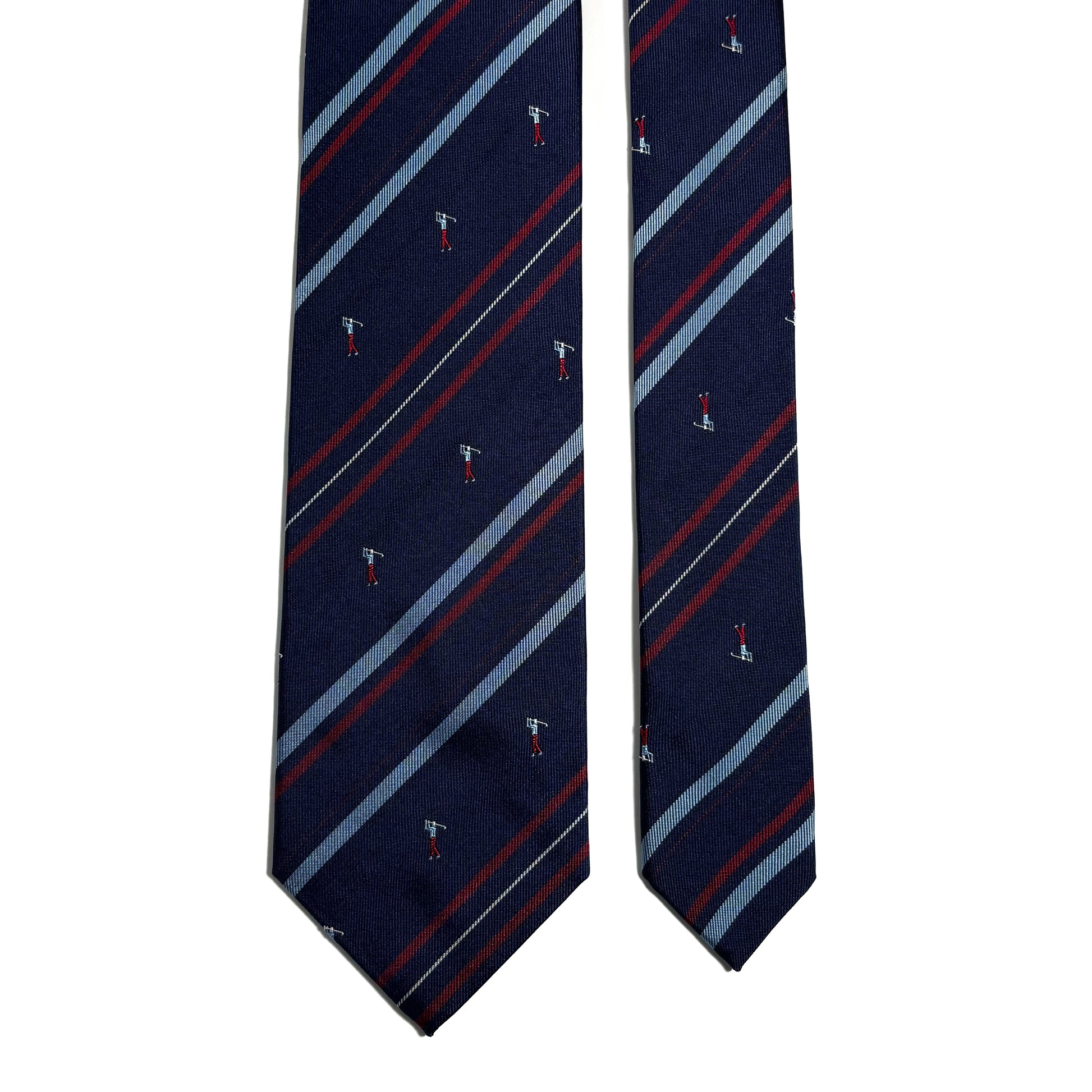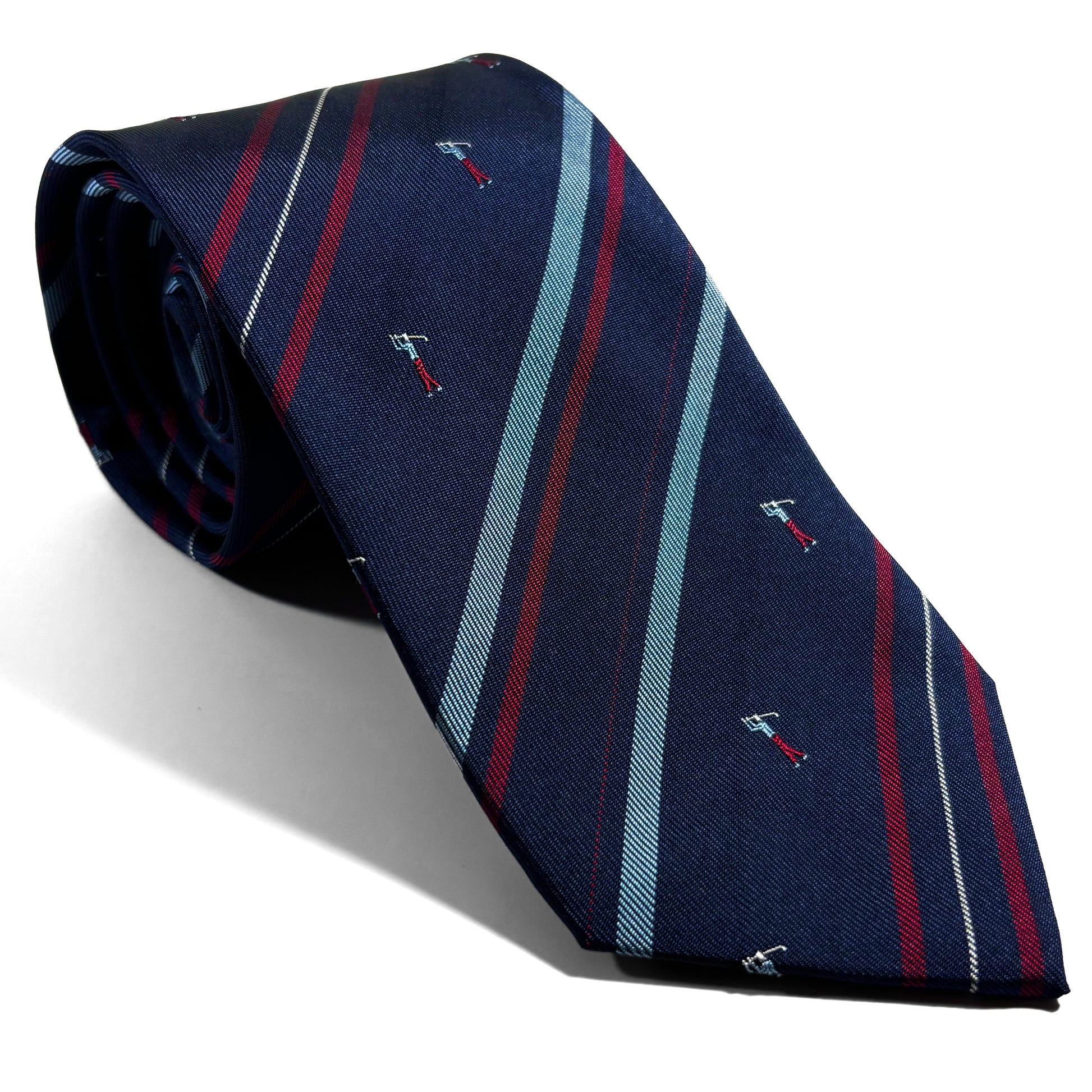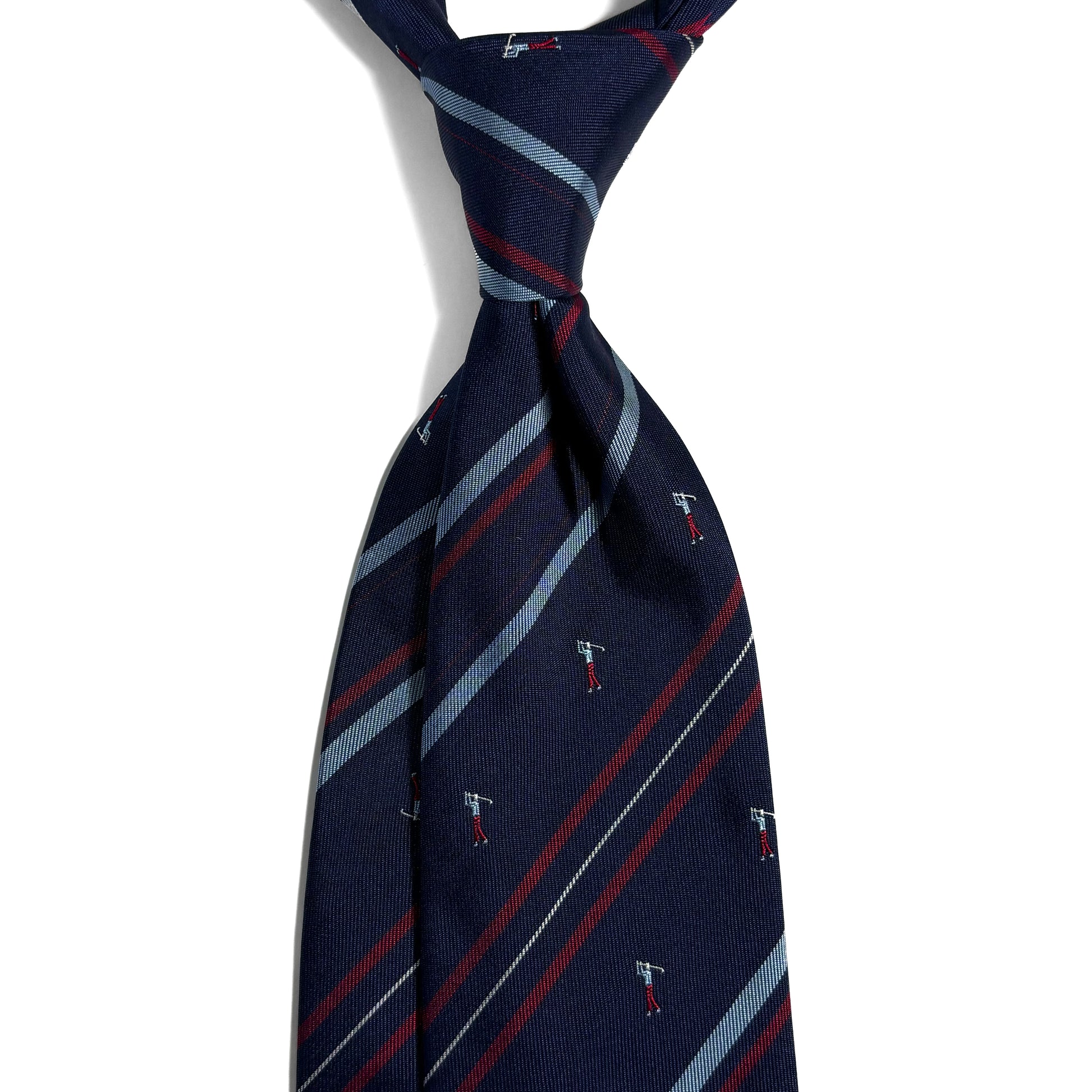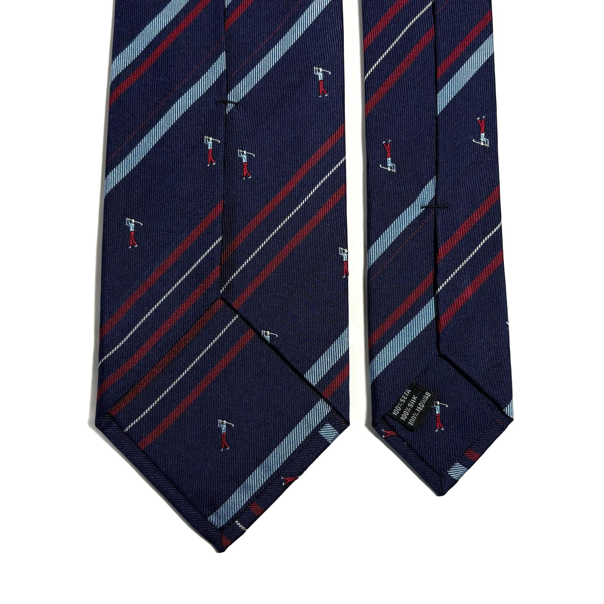Navy Blue & Red Striped Golf Motif Silk Jacquard Tie