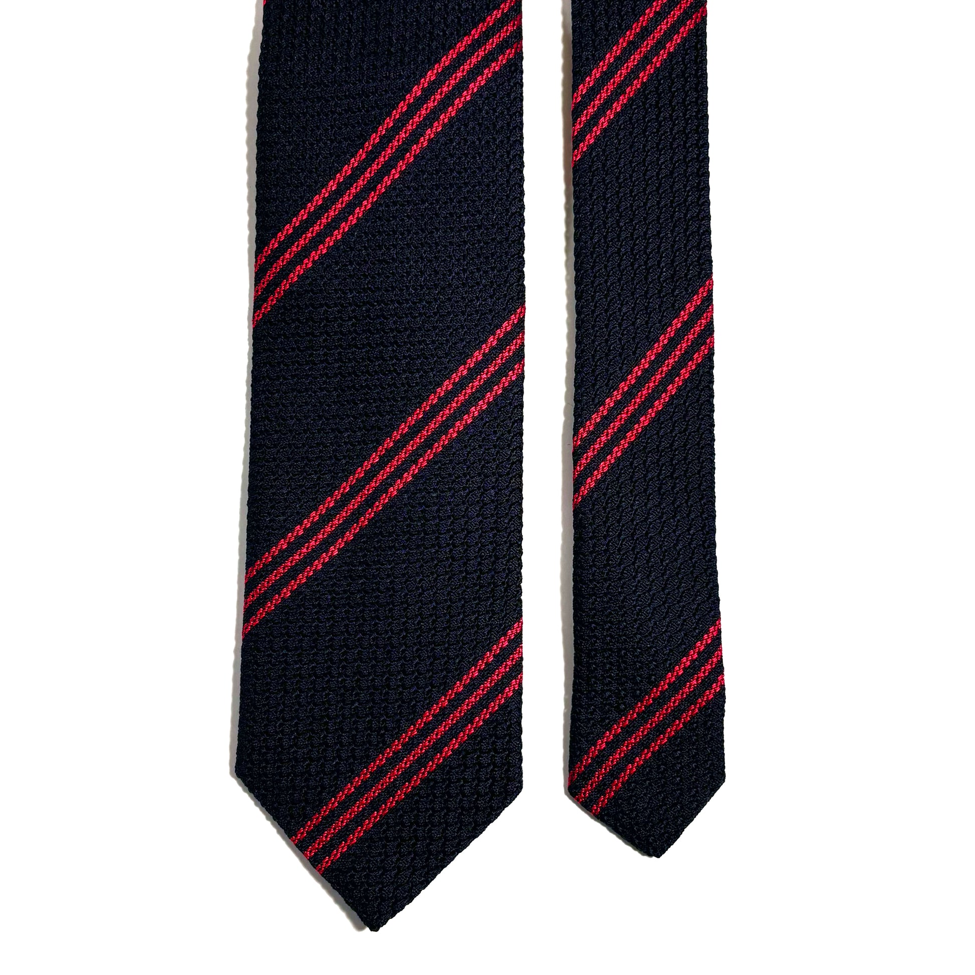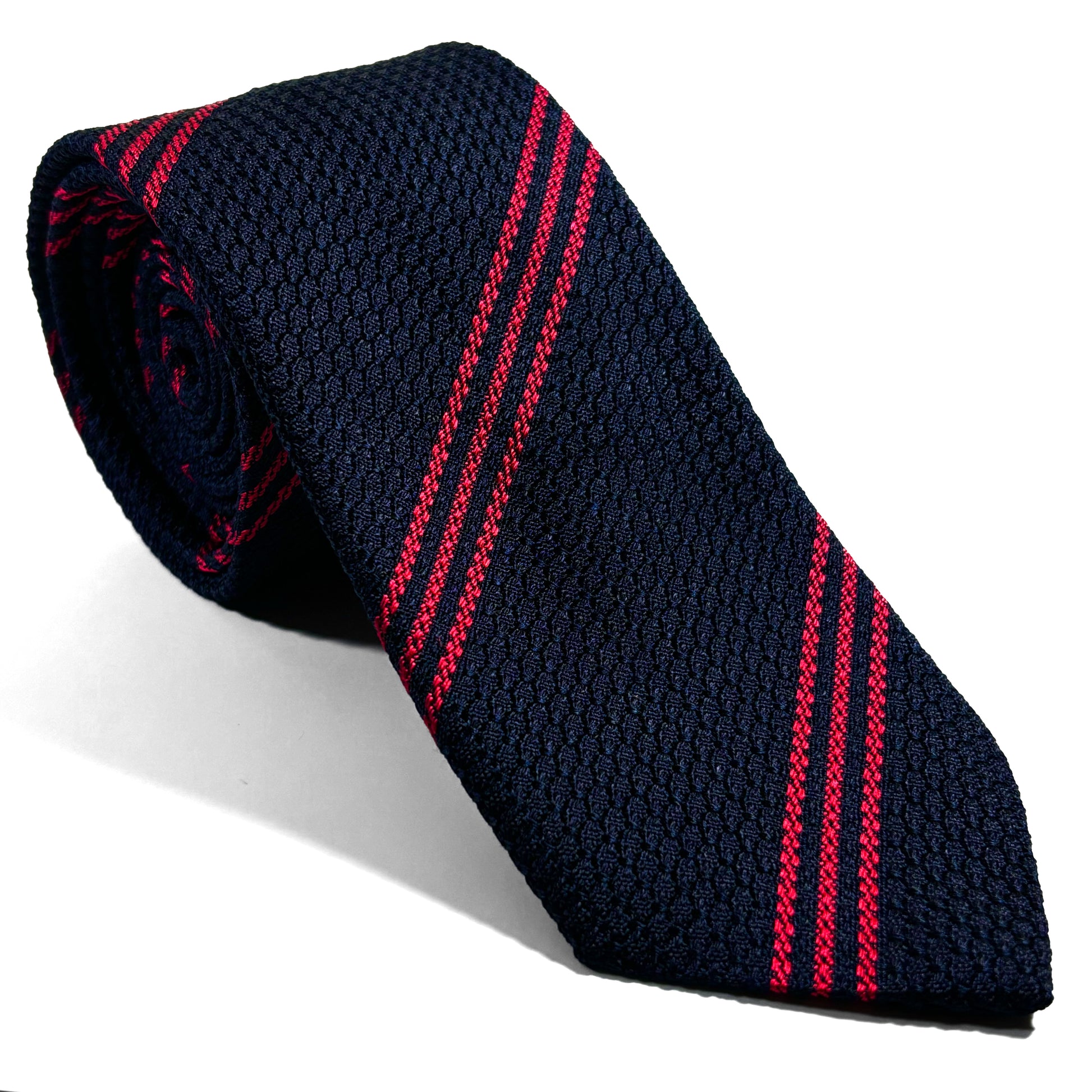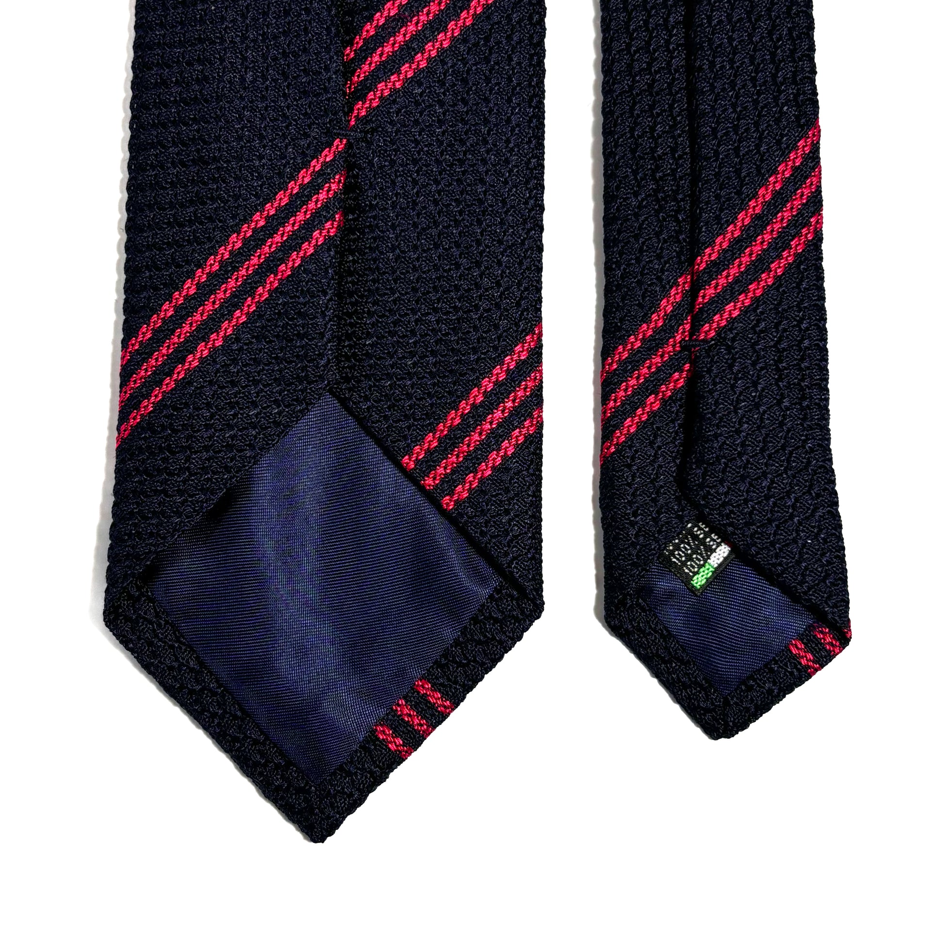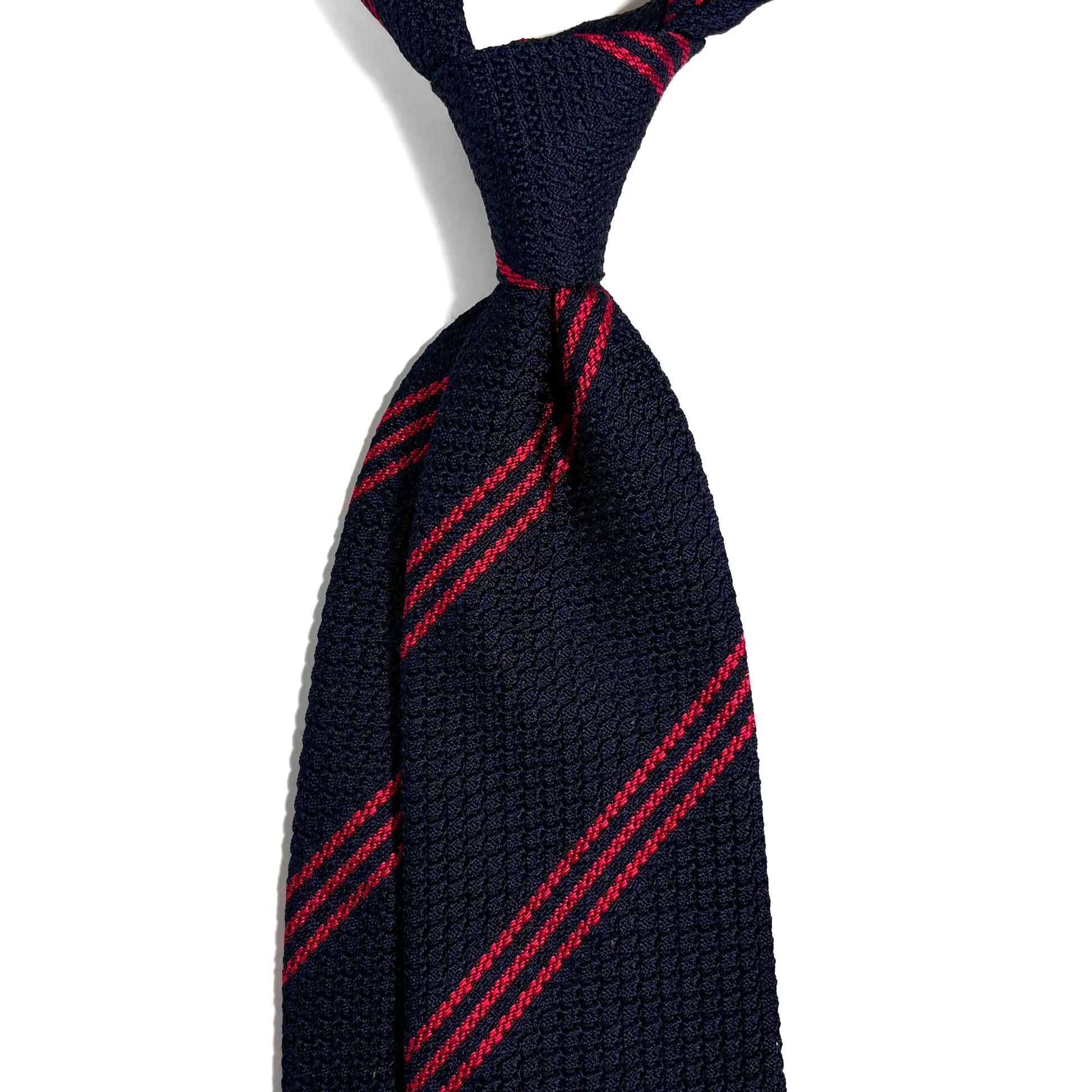 Navy Blue & Red Striped Silk Grenadine Tie (Garza Grossa)