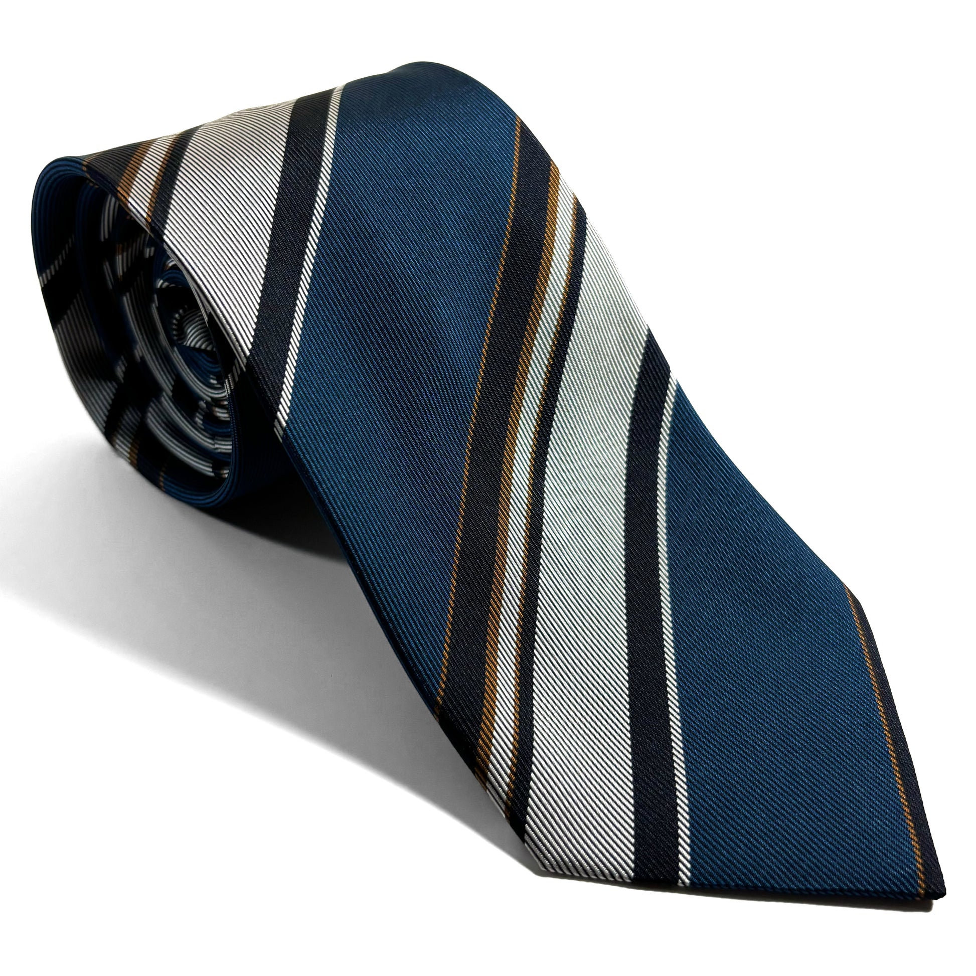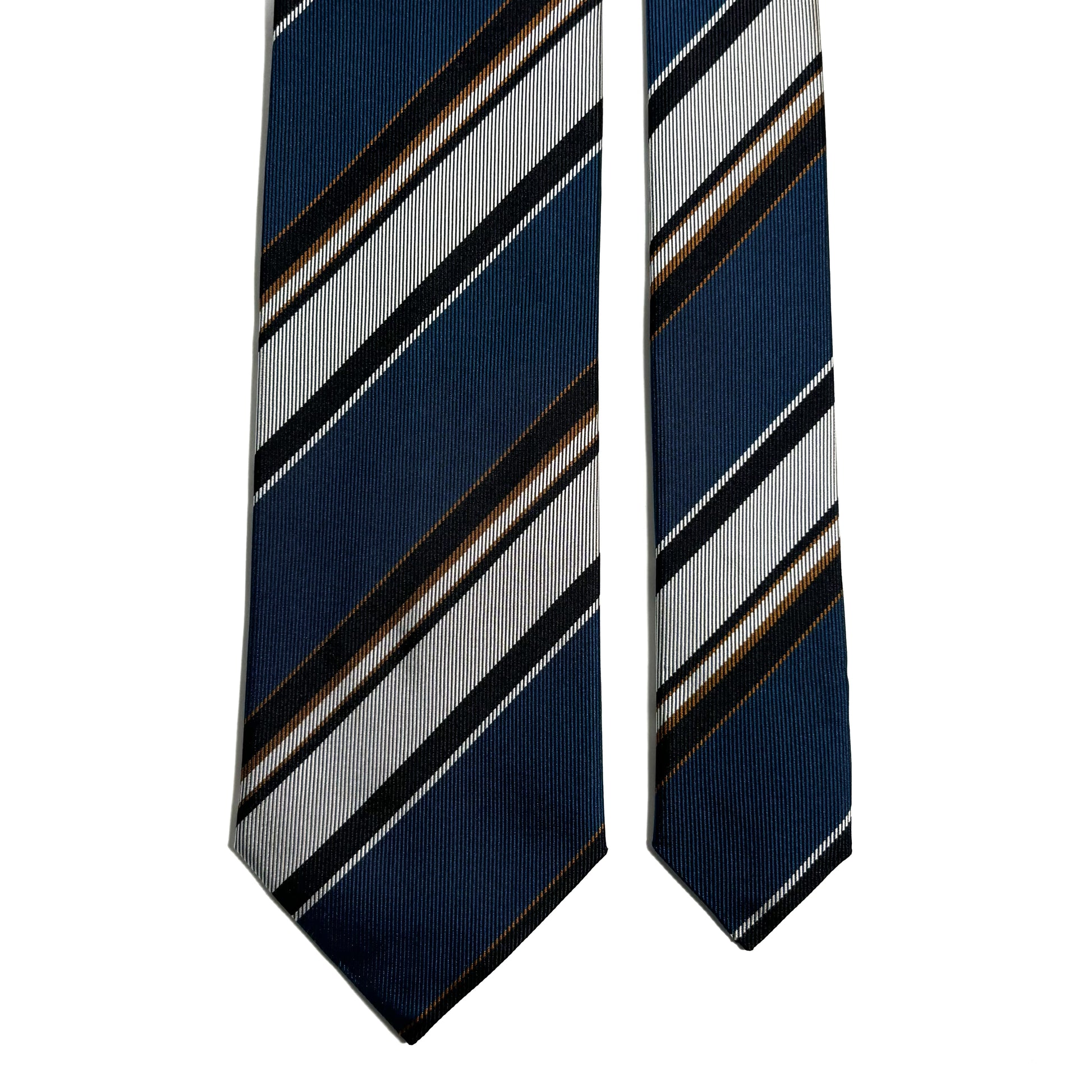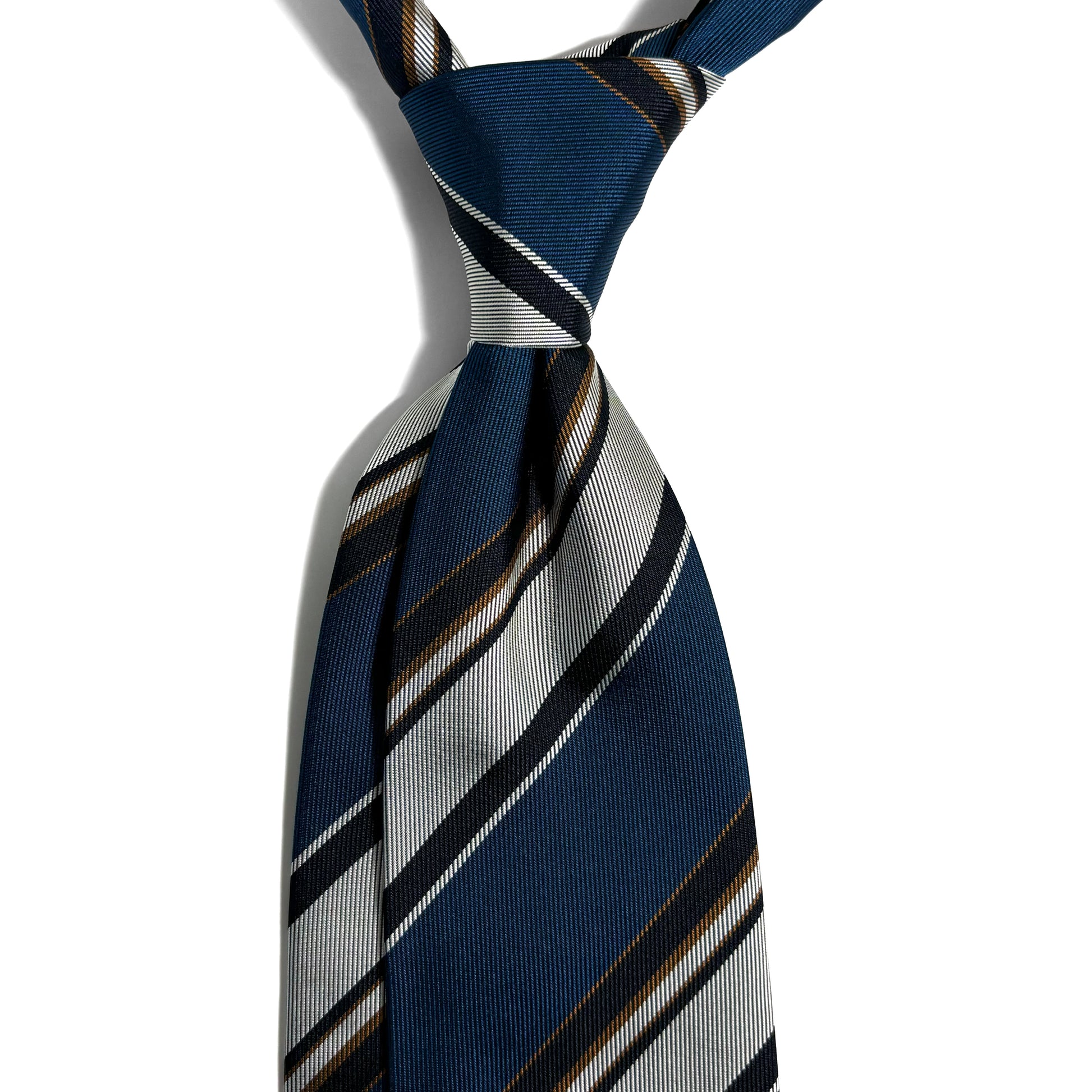 Discover the perfect blend of depth, texture, and timeless style with our Striped Silk Jacquard Tie. Handmade in Italy using the finest woven silk, this tie showcases a meticulously crafted jacquard weave that adds a rich, tactile dimension to its bold yet refined stripe pattern.
