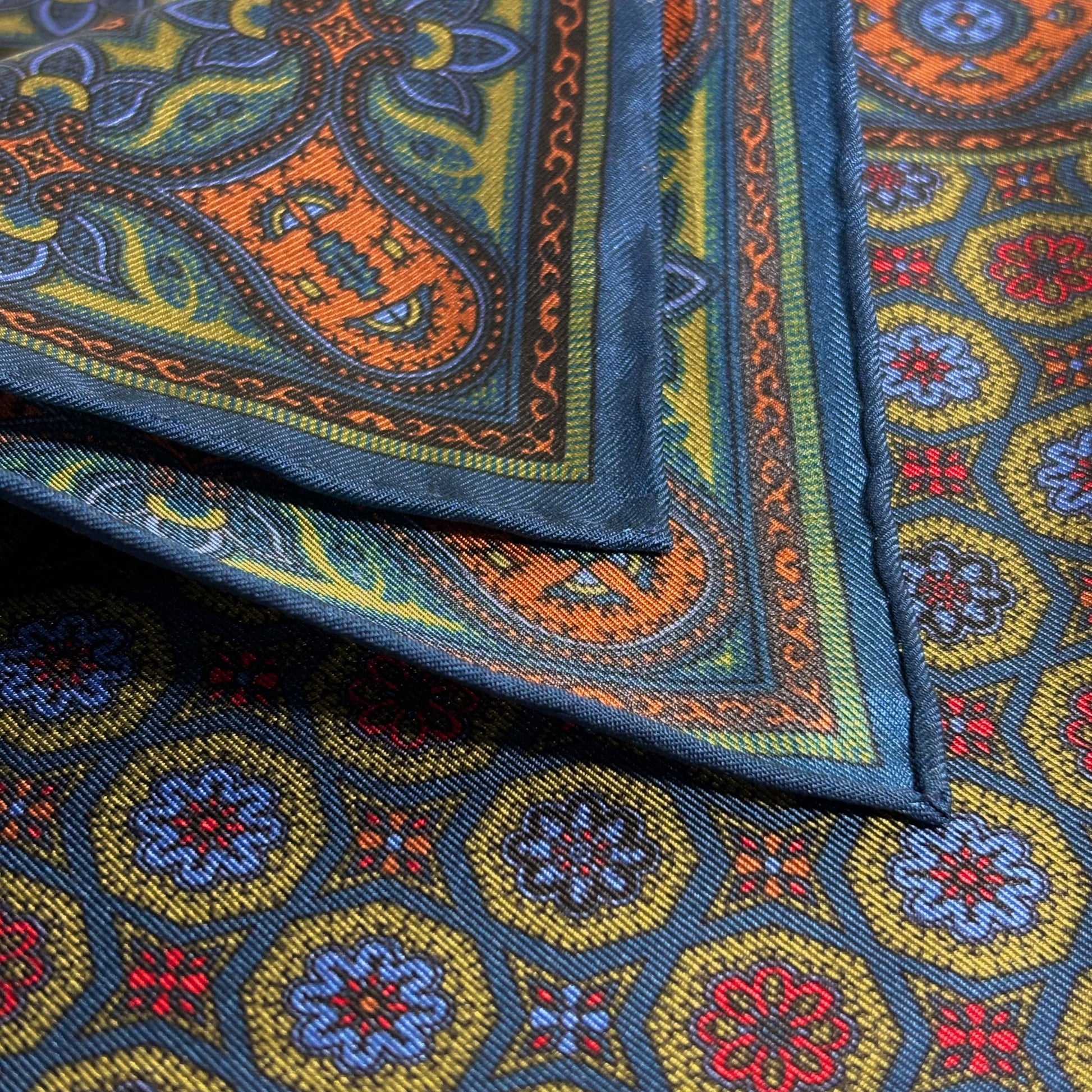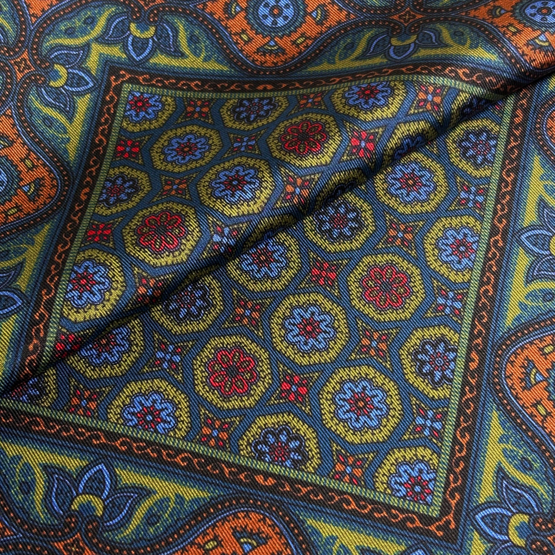 Madder dye is world-renowned due to its vibrant colors and chalky feel. These squares use a digitally printed madder to preserve the intense colors of the dye and retaining the silk's softness.