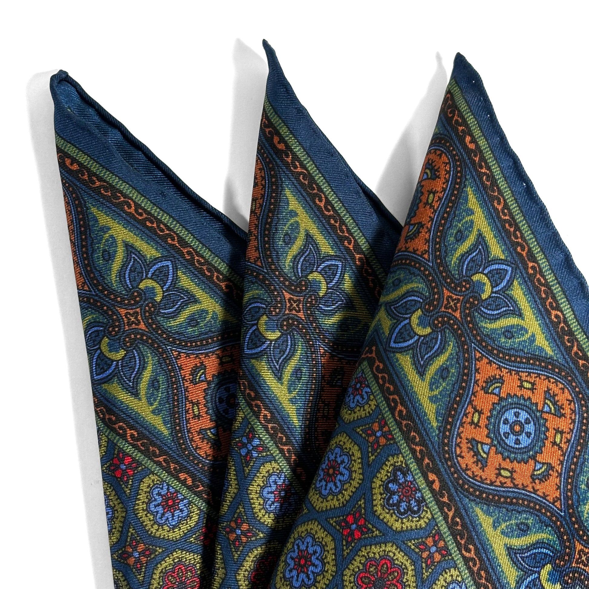 Silk twill remains the gold standard for pocket squares, prized for its lightweight feel, rich dye absorption, and elegant sheen. The fabric is printed using a modern, eco-conscious method that delivers vibrant, double-sided color while minimizing waste.