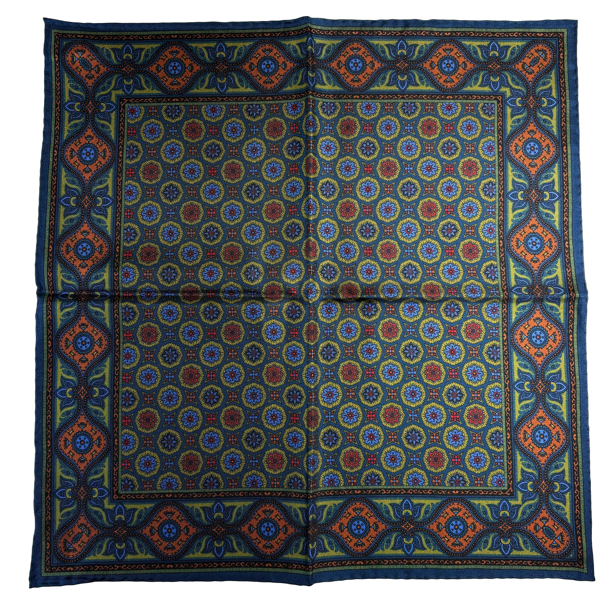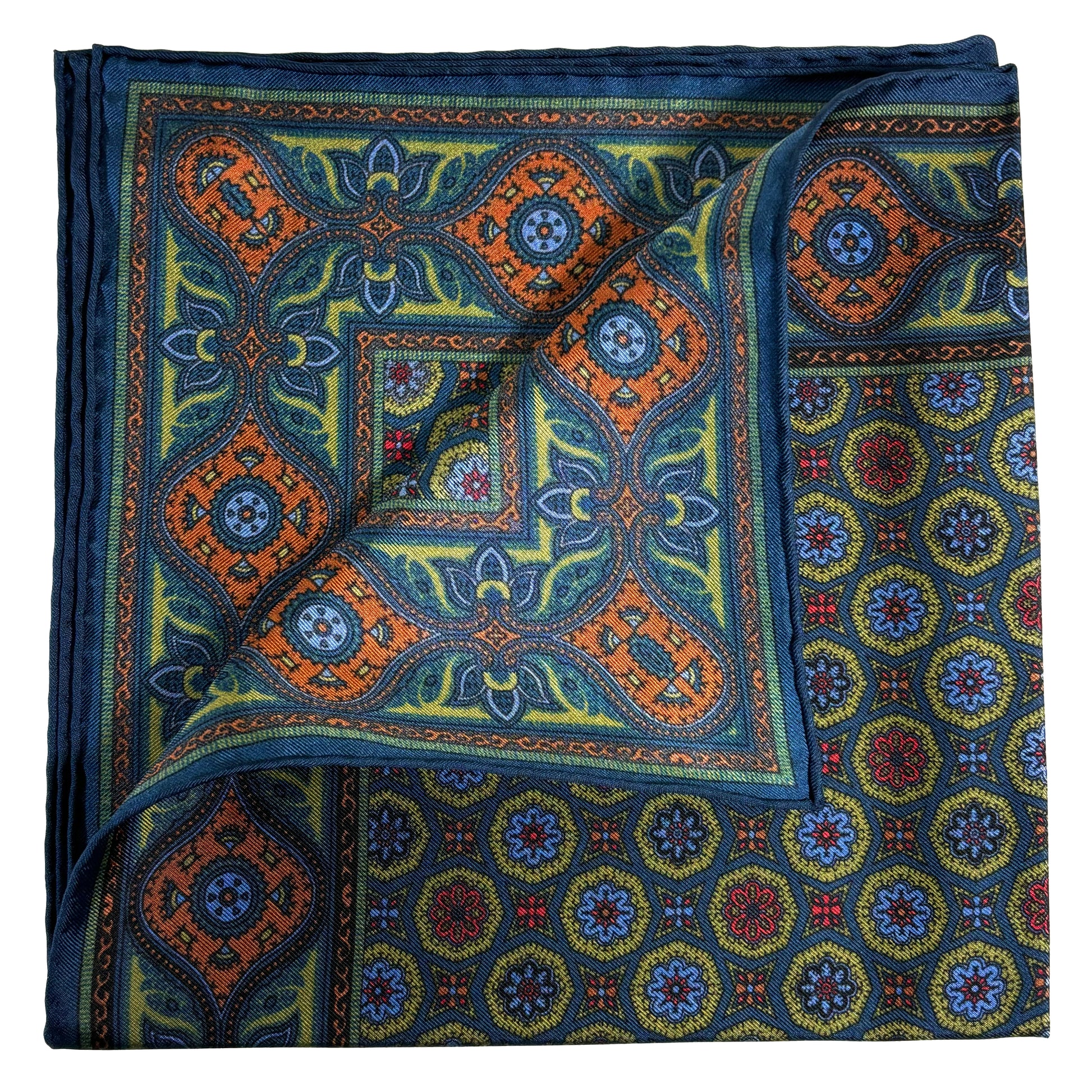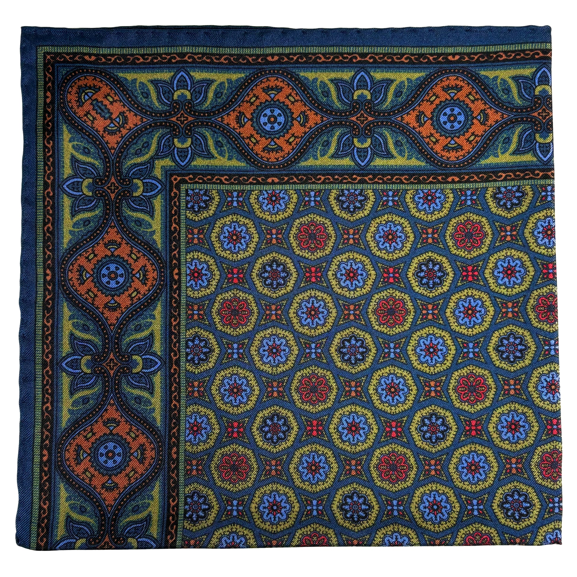 Olive Green & Navy Blue Geometric Ancient Madder Silk Pocket Square