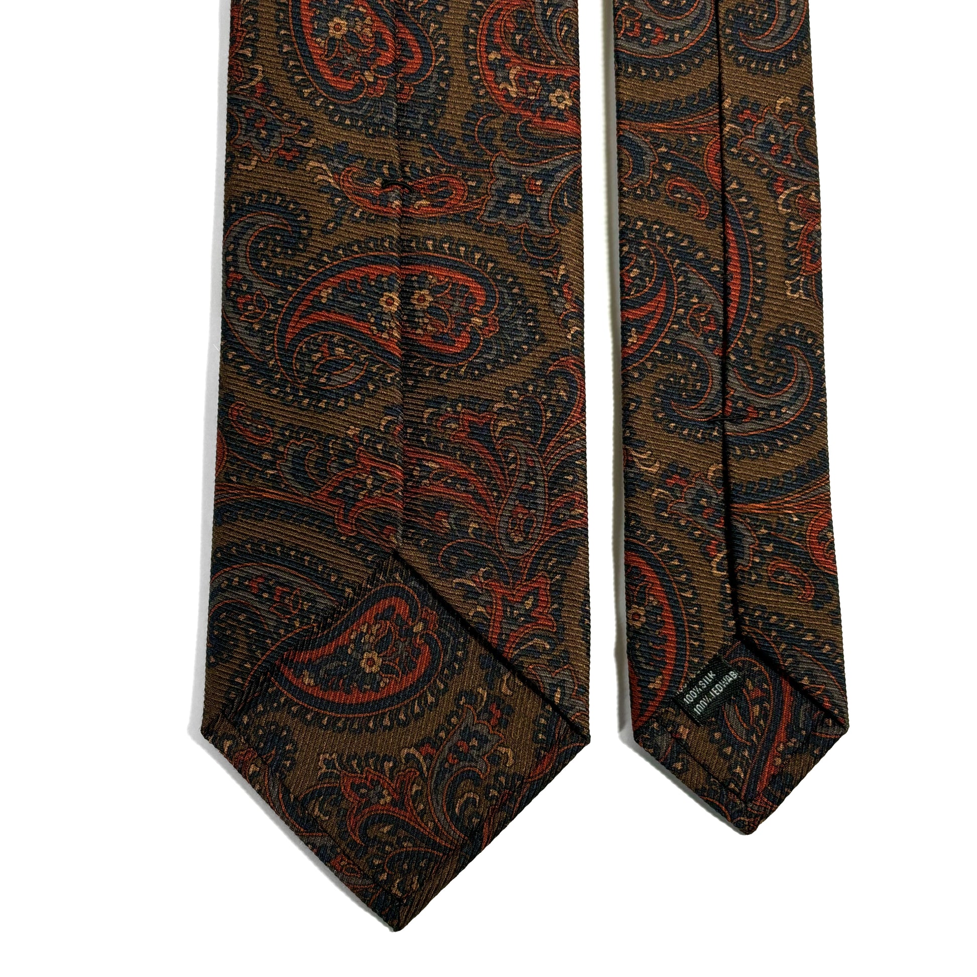 Olive Green & Orange Paisley Italian Madder Silk Tie