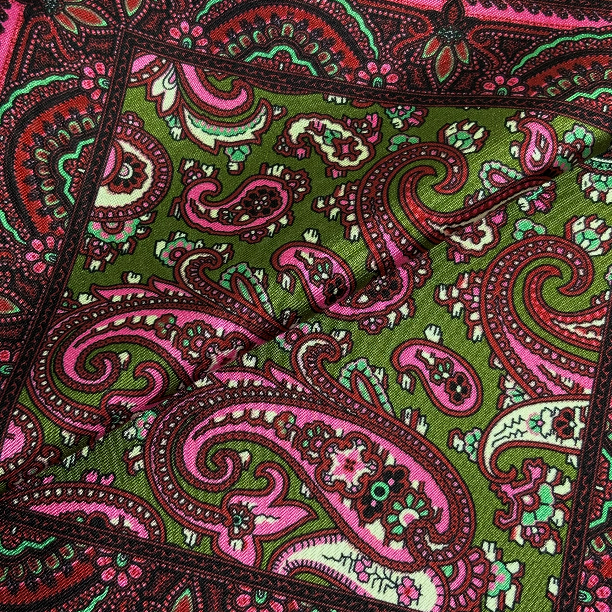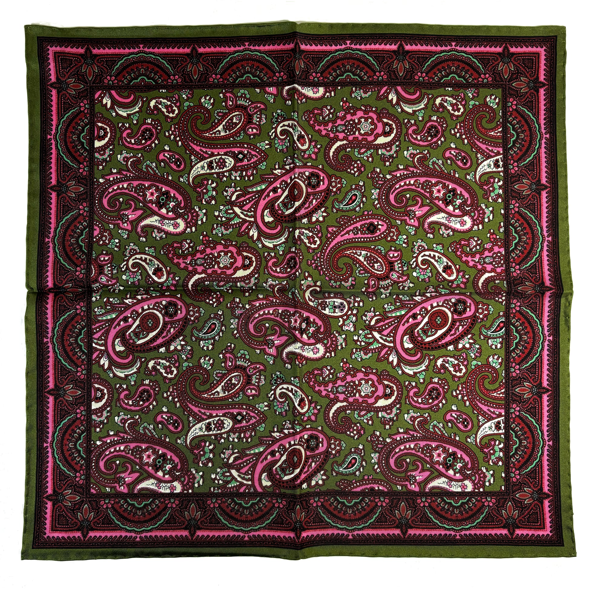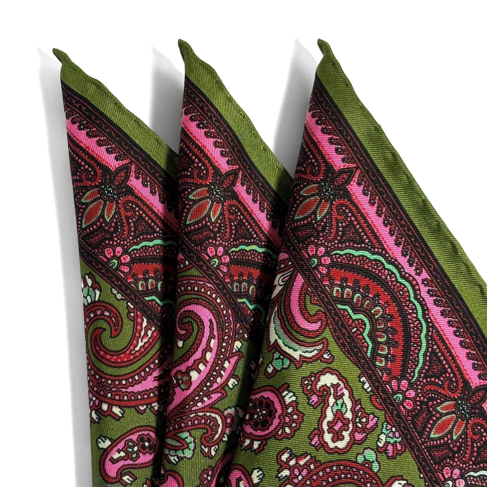 Olive Green & Pink Paisley Ancient Madder Silk Pocket Square