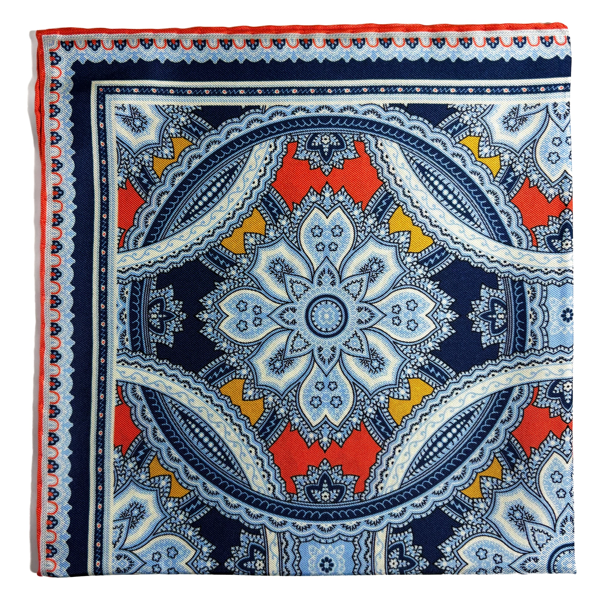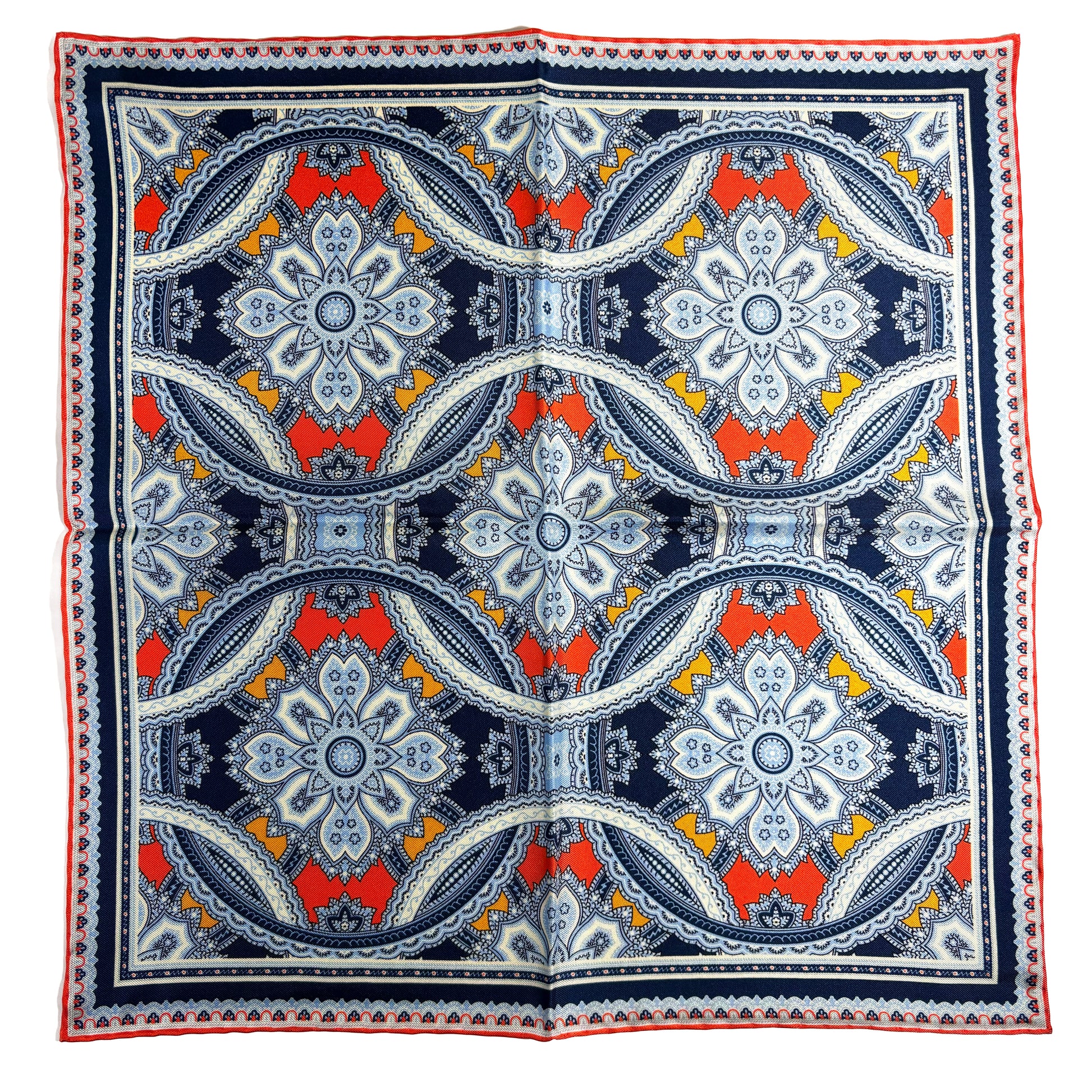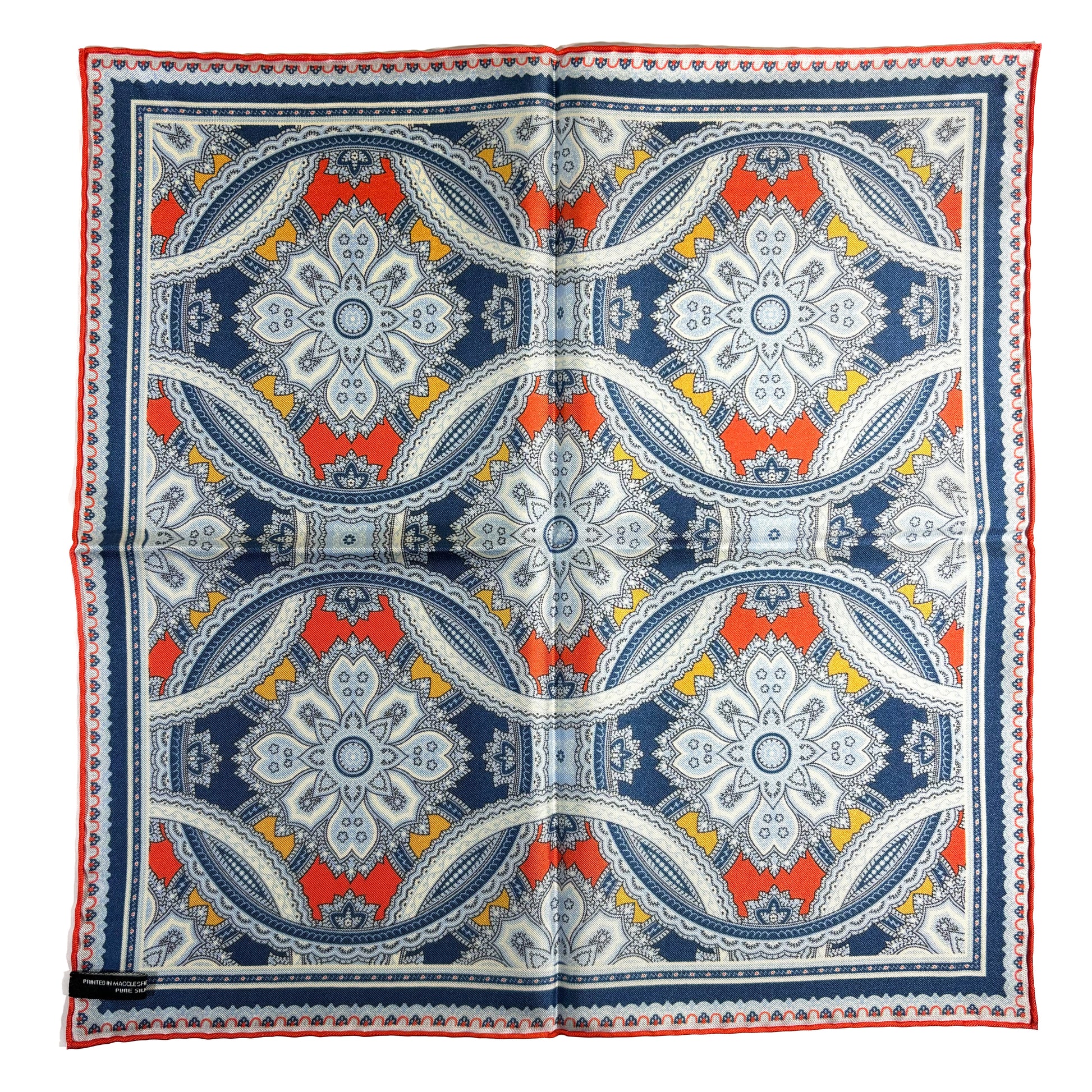 Orange & Light Blue Large Medallion Silk Pocket Square