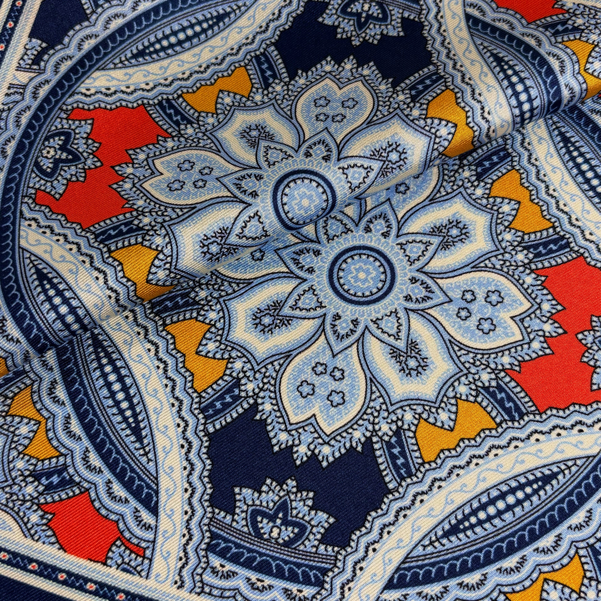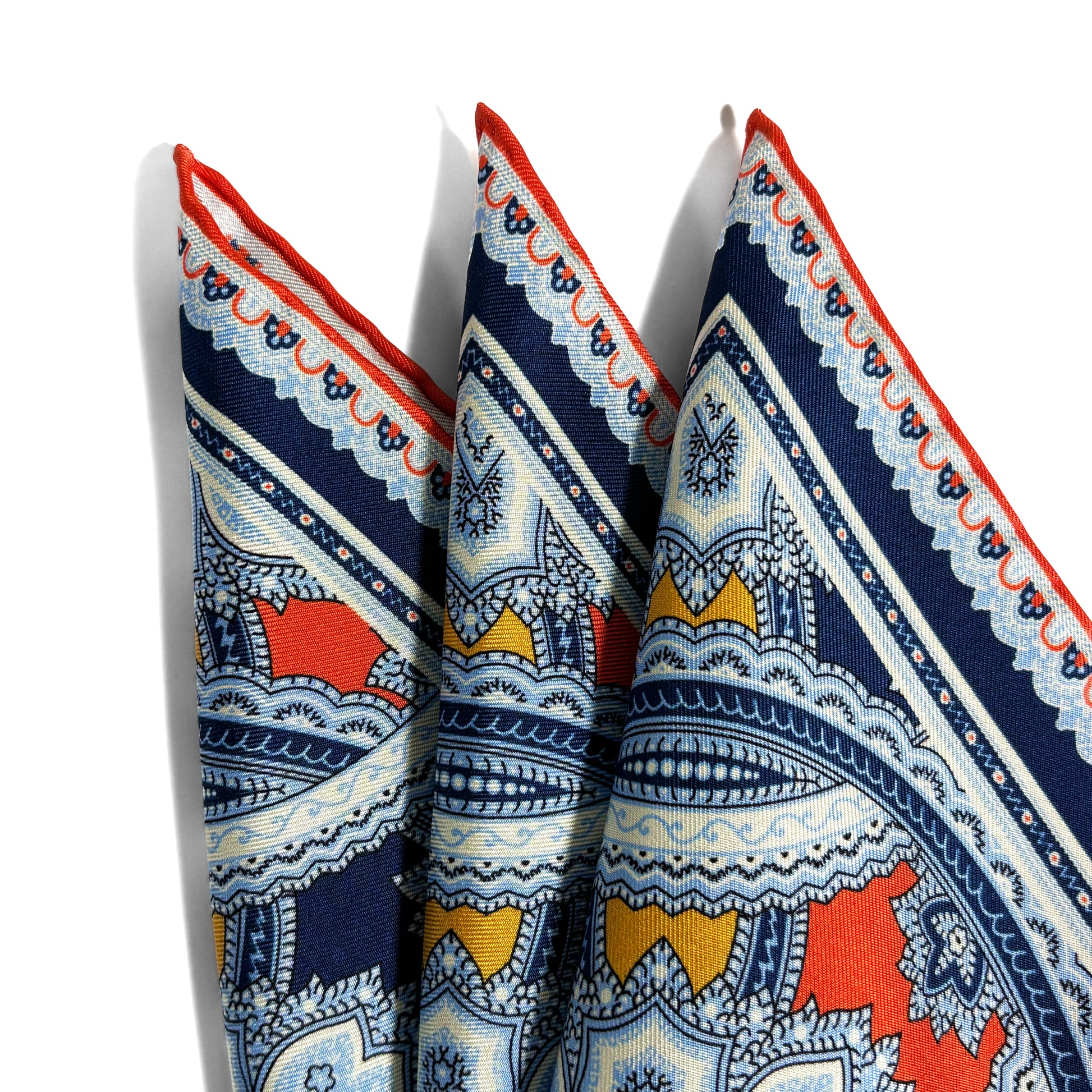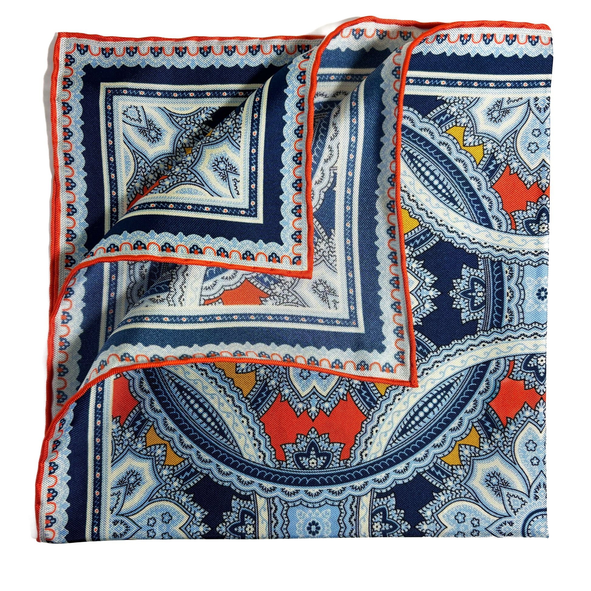 Orange & Light Blue Large Medallion Silk Pocket Square