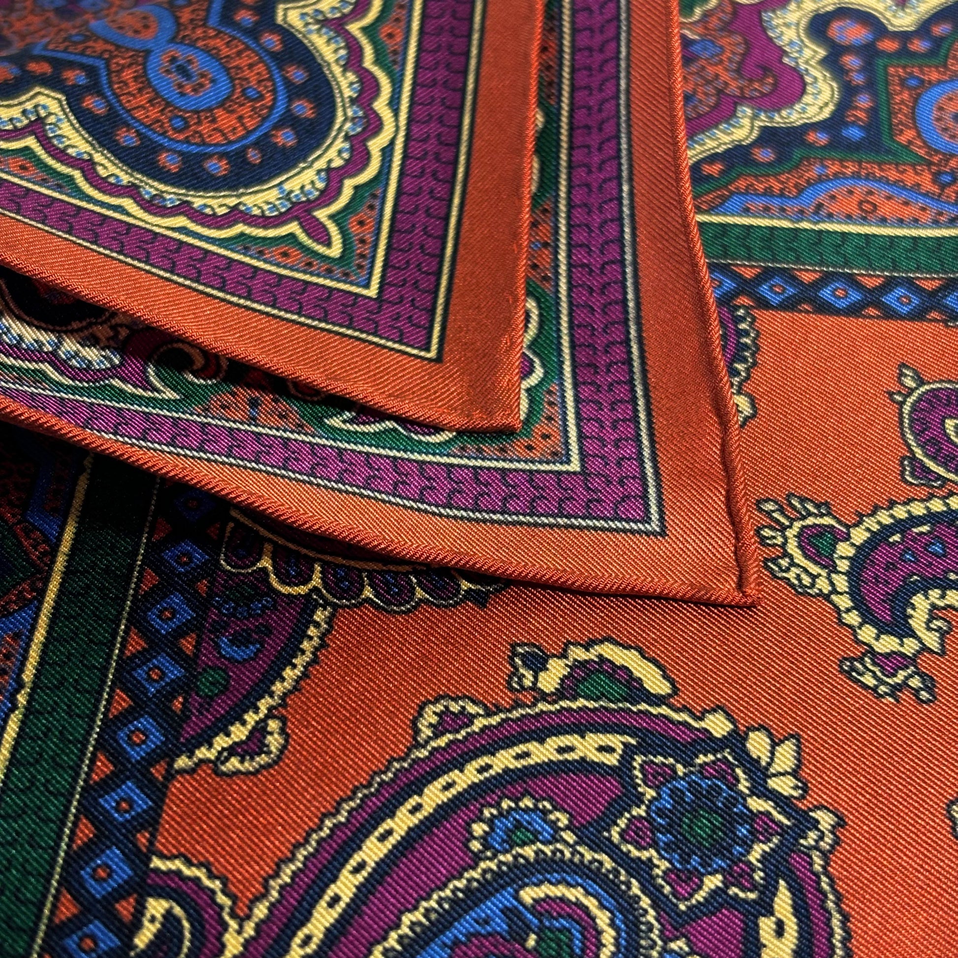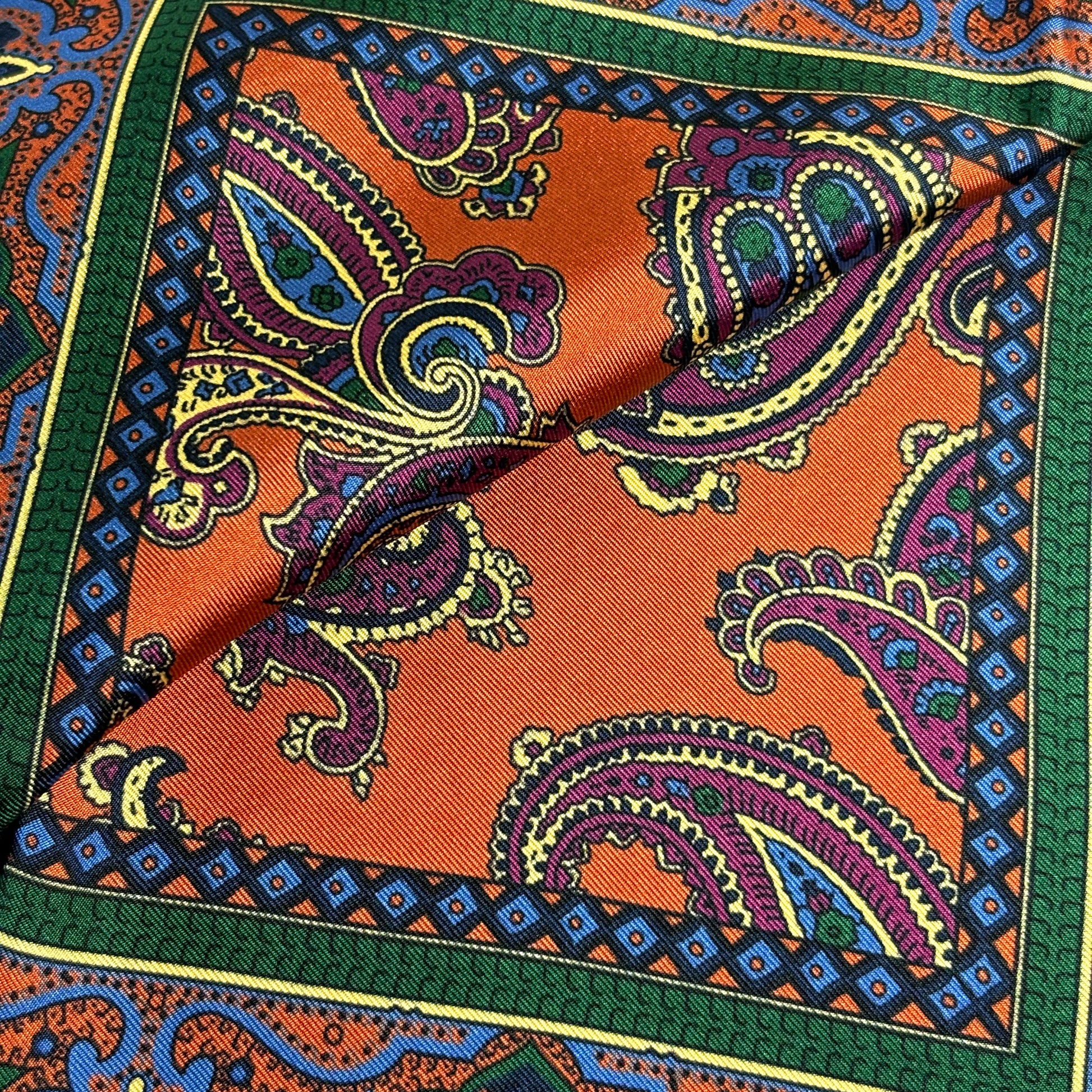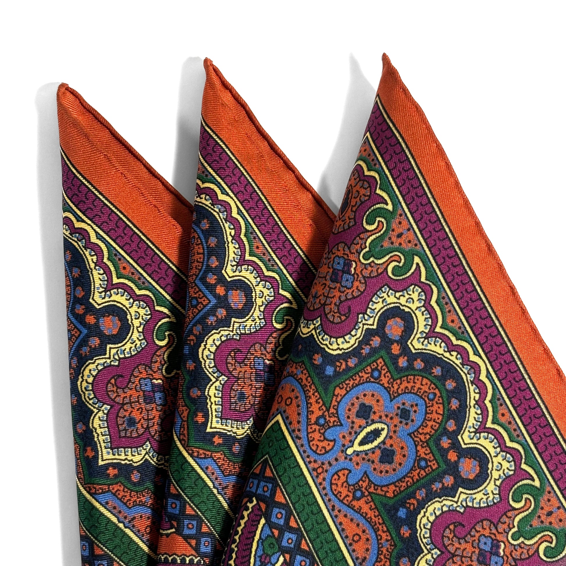 Madder dye is world-renowned due to its vibrant colors and chalky feel. These squares use a digitally printed madder to preserve the intense colors of the dye and retaining the silk's softness.