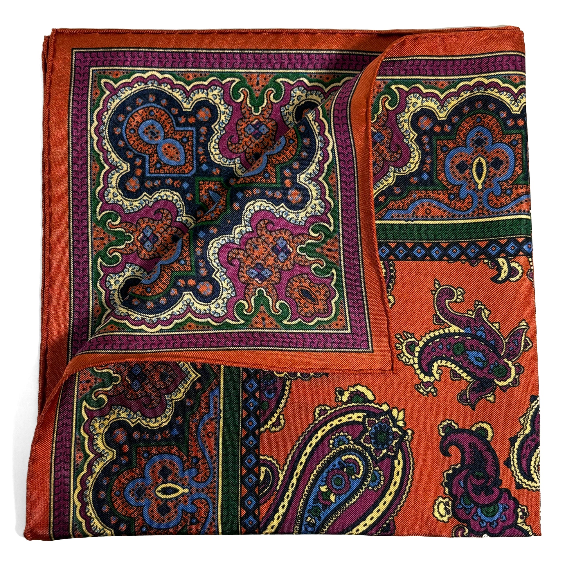 Crafted from madder-dyed 100% silk twill and handmade in England, this pocket square reflects the enduring legacy of British textile excellence. Produced in the historic town of Macclesfield—renowned for centuries of silk craftsmanship—each piece is hand-sewn with hand-rolled edges, offering refined structure and depth in every fold.