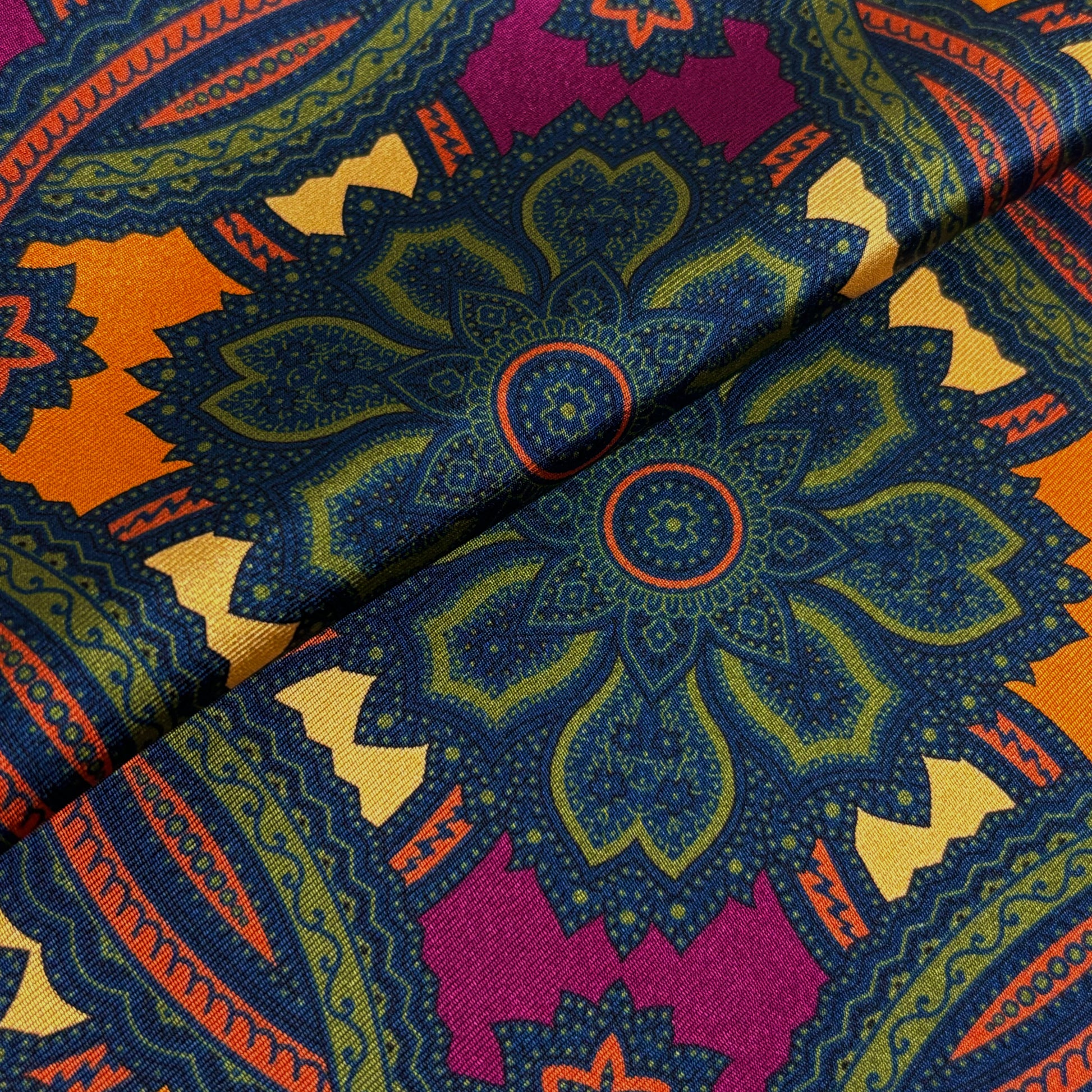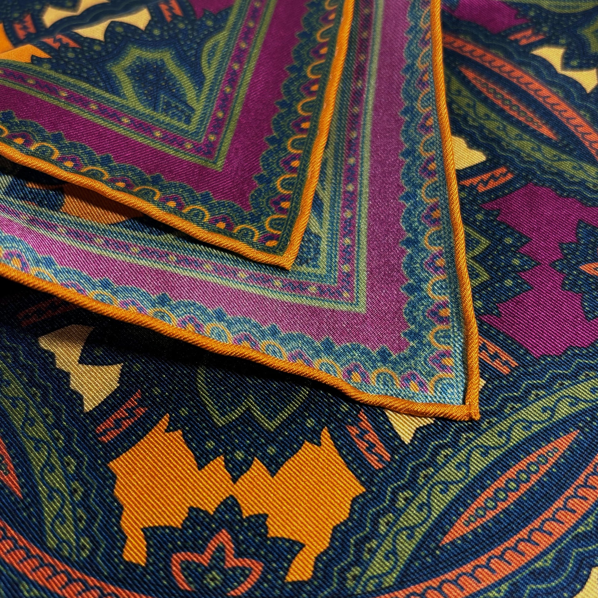 Crafted from 100% silk twill and handmade in England, this pocket square reflects the enduring legacy of British textile excellence. Produced in the historic town of Macclesfield—renowned for centuries of silk craftsmanship—each piece is hand-sewn with hand-rolled edges, offering refined structure and depth in every fold. Silk twill remains the gold standard for pocket squares, prized for its lightweight feel, rich dye absorption, and elegant sheen. The fabric is printed using a modern, eco-conscious method that delivers vibrant, double-sided color while minimizing waste. Measuring 16 inches across, this square is carefully sized to stay in place throughout the day, no matter how it's folded. An understated staple of timeless menswear, made with precision and purpose. |
