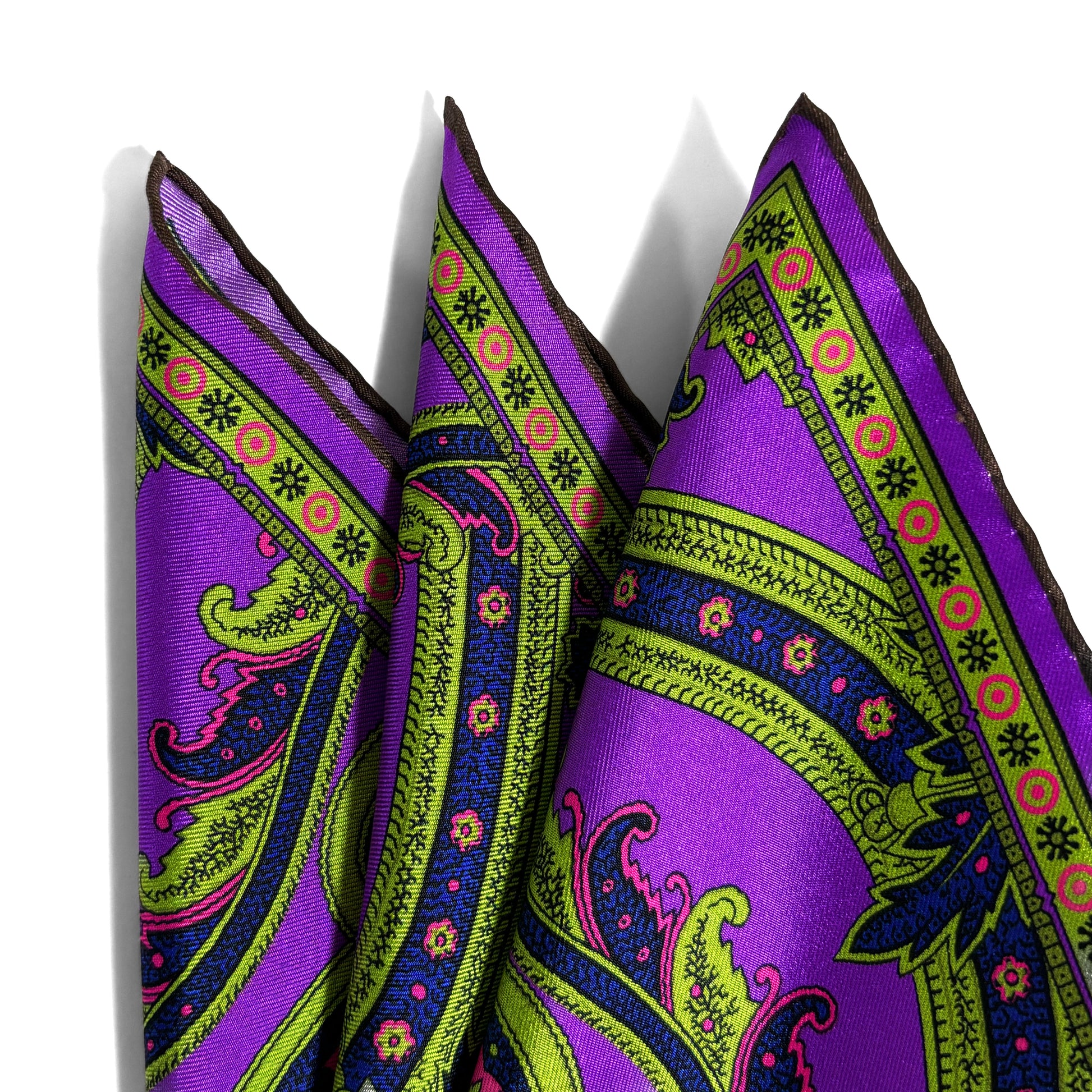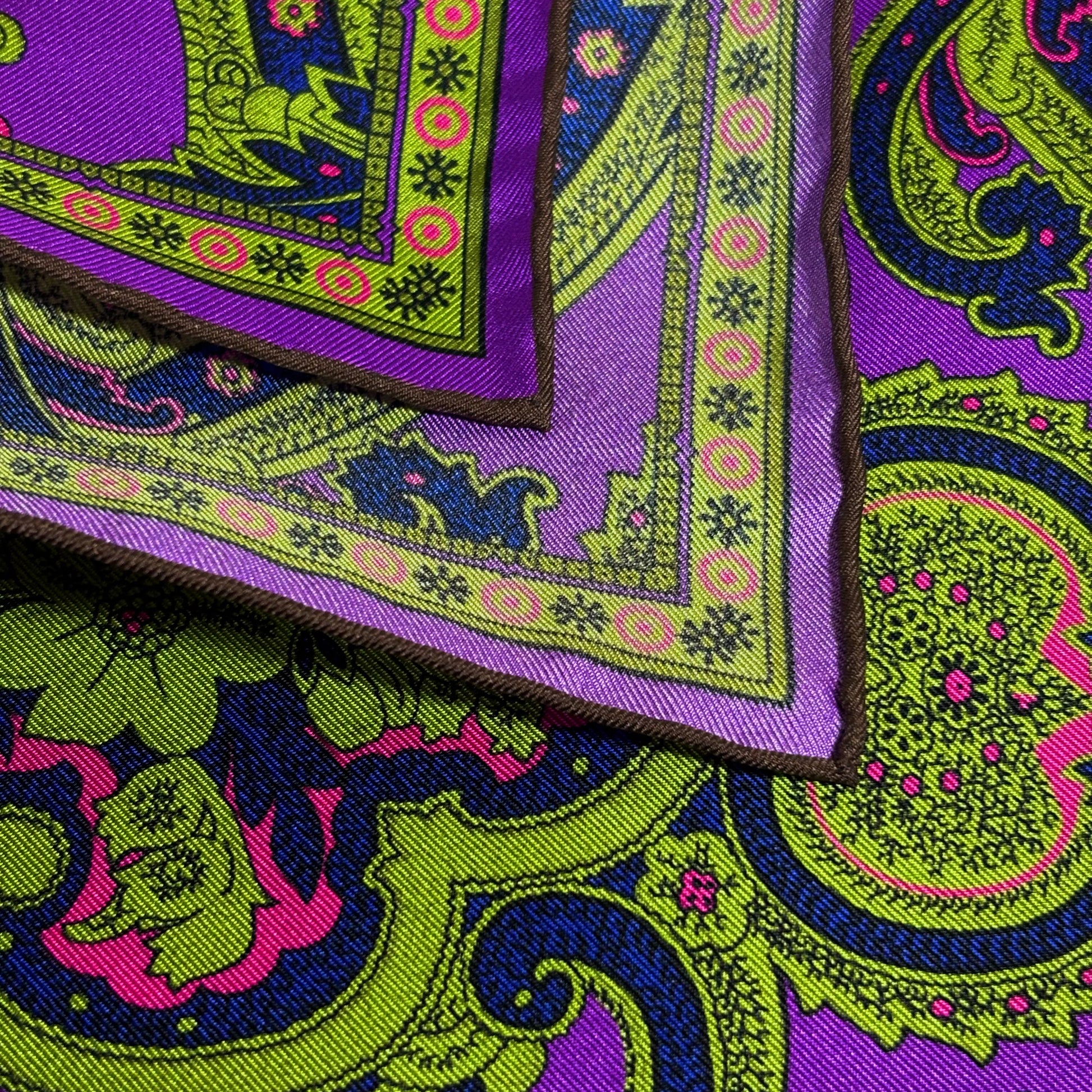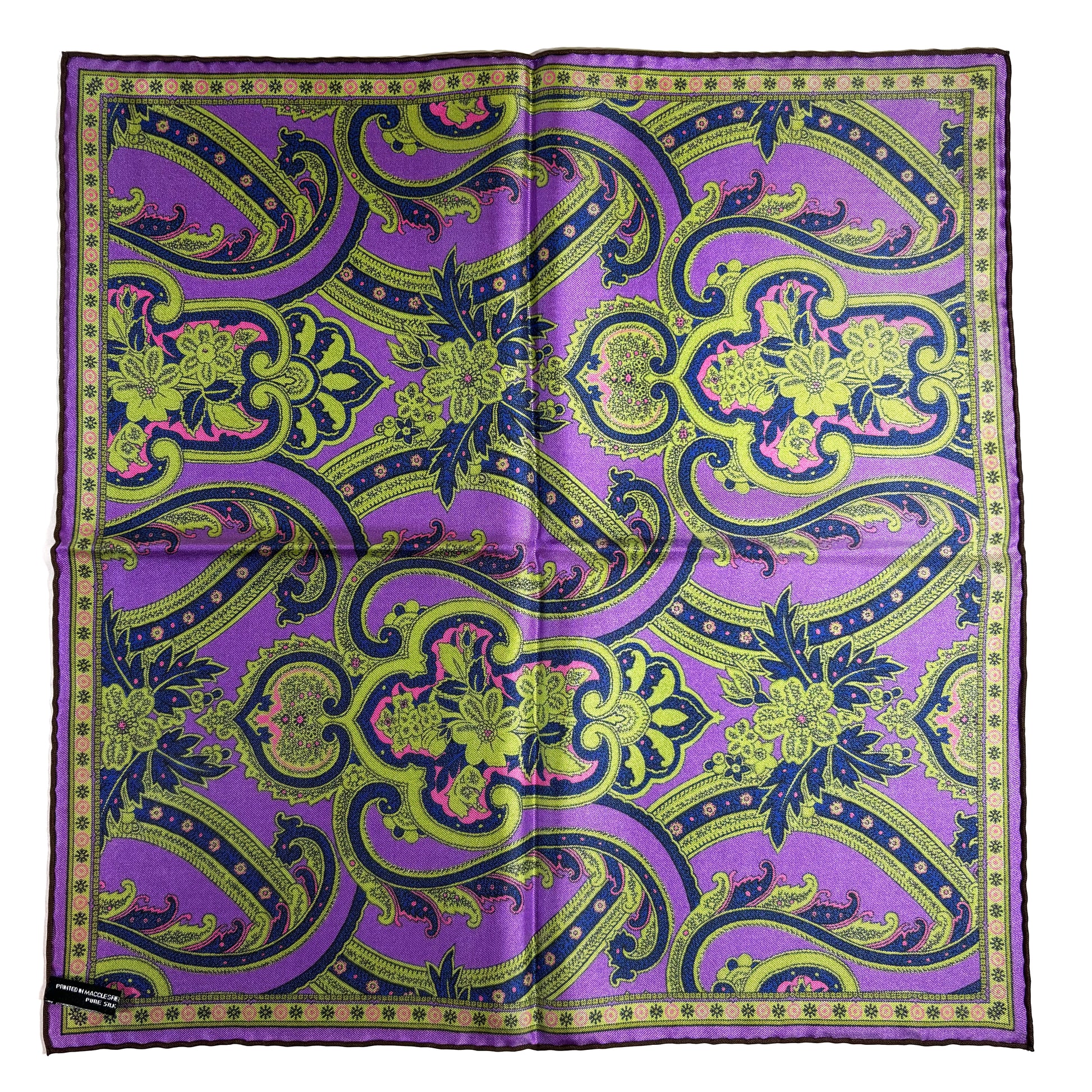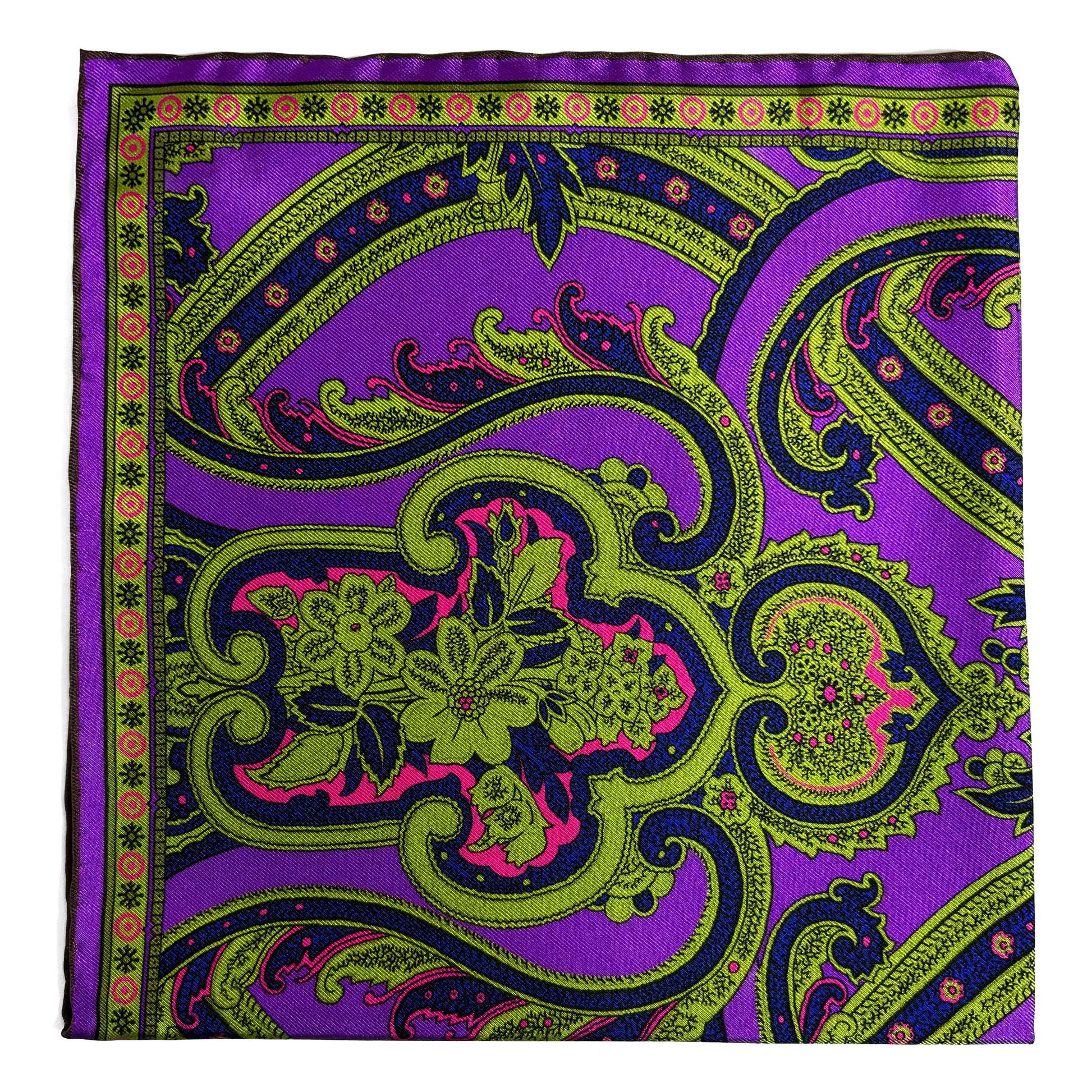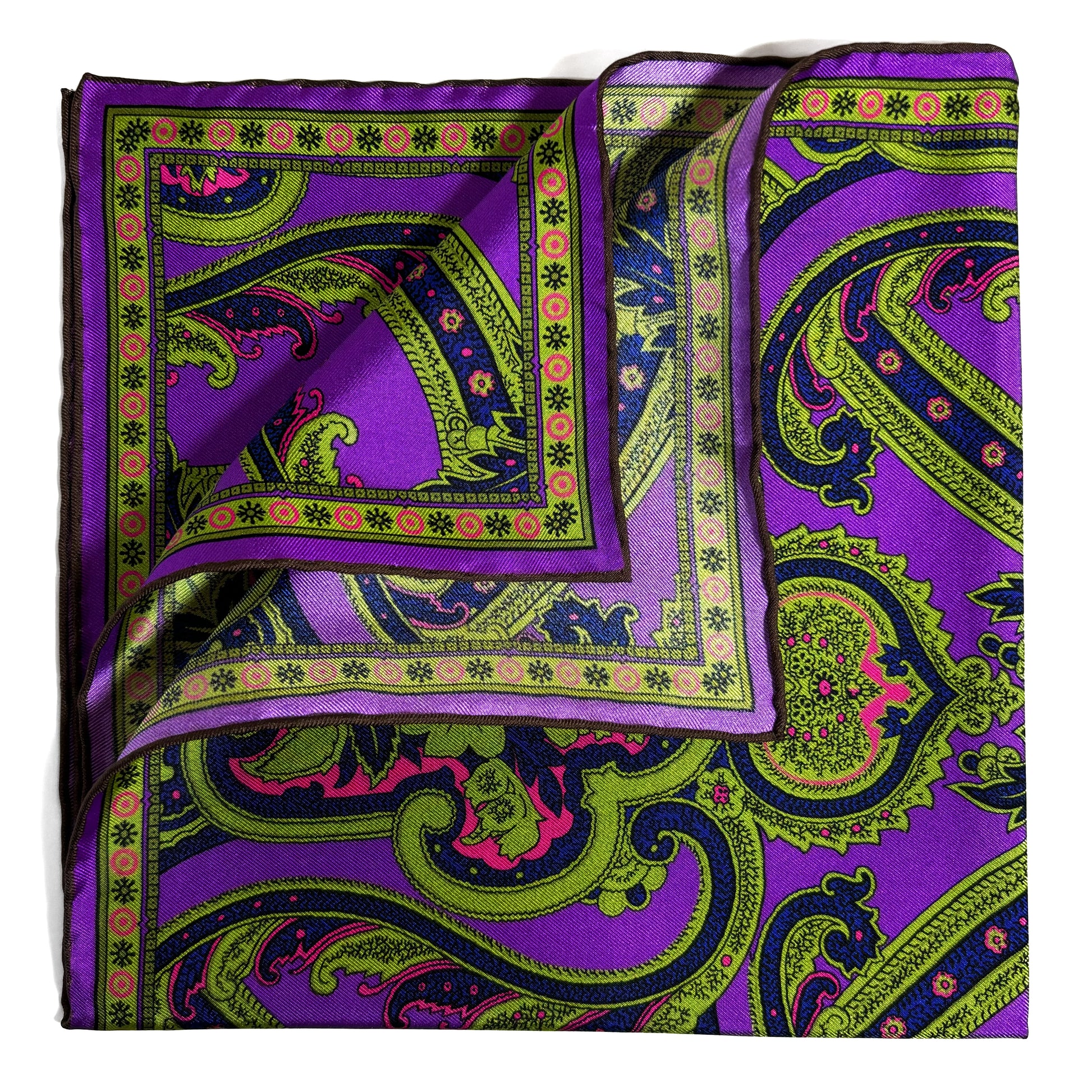 Crafted from 100% silk twill and handmade in England, this pocket square reflects the enduring legacy of British textile excellence. Produced in the historic town of Macclesfield—renowned for centuries of silk craftsmanship—each piece is hand-sewn with hand-rolled edges, offering refined structure and depth in every fold. Silk twill remains the gold standard for pocket squares, prized for its lightweight feel, rich dye absorption, and elegant sheen. The fabric is printed using a modern, eco-conscious method that delivers vibrant, double-sided color while minimizing waste. Measuring 16 inches across, this square is carefully sized to stay in place throughout the day, no matter how it's folded. An understated staple of timeless menswear, made with precision and purpose. |