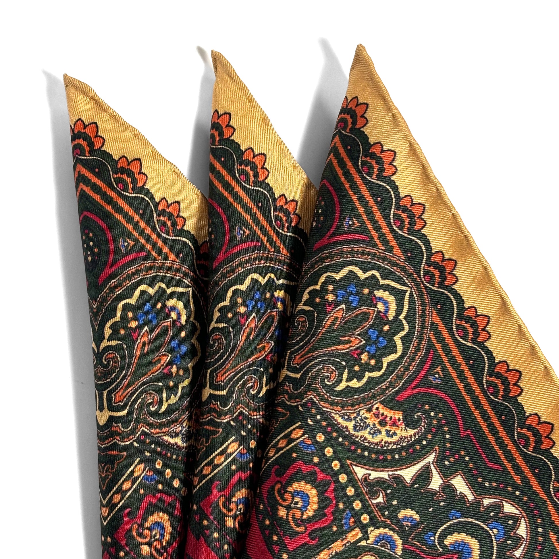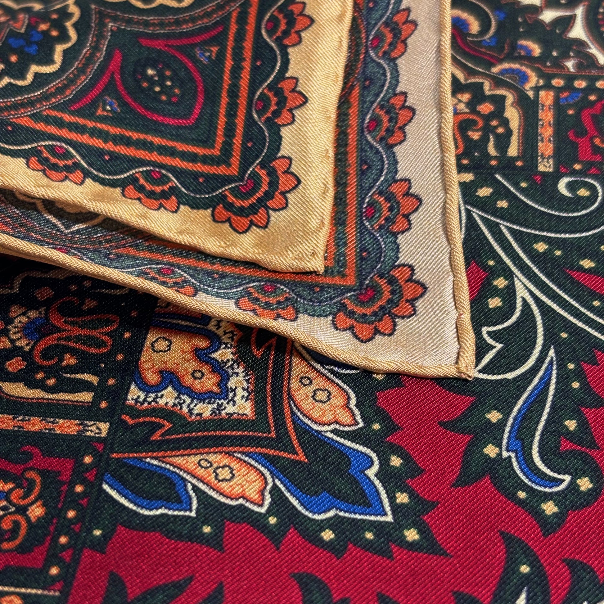 Madder dye is world-renowned due to its vibrant colors and chalky feel. These squares use a digitally printed madder to preserve the intense colors of the dye and retaining the silk's softness.