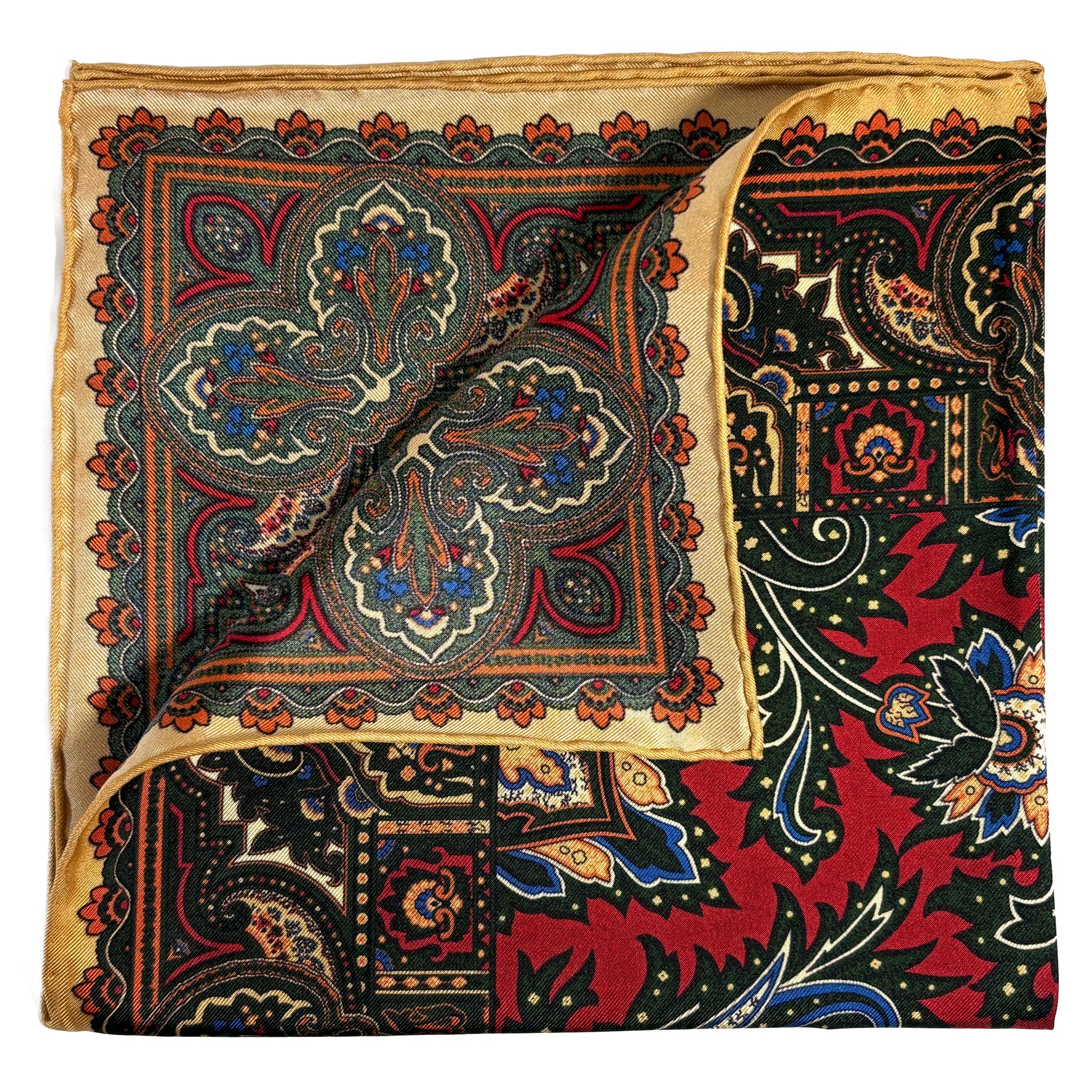 Red & Cream Floral Motif Ancient Madder Silk Pocket Square